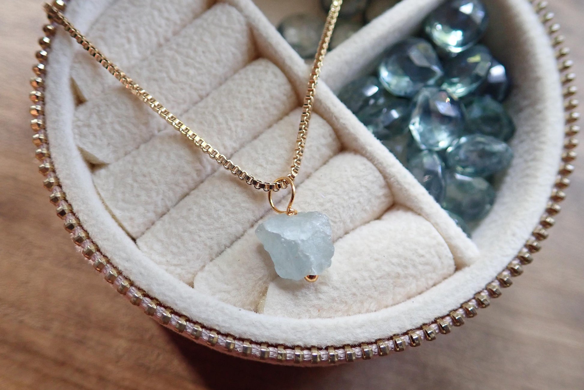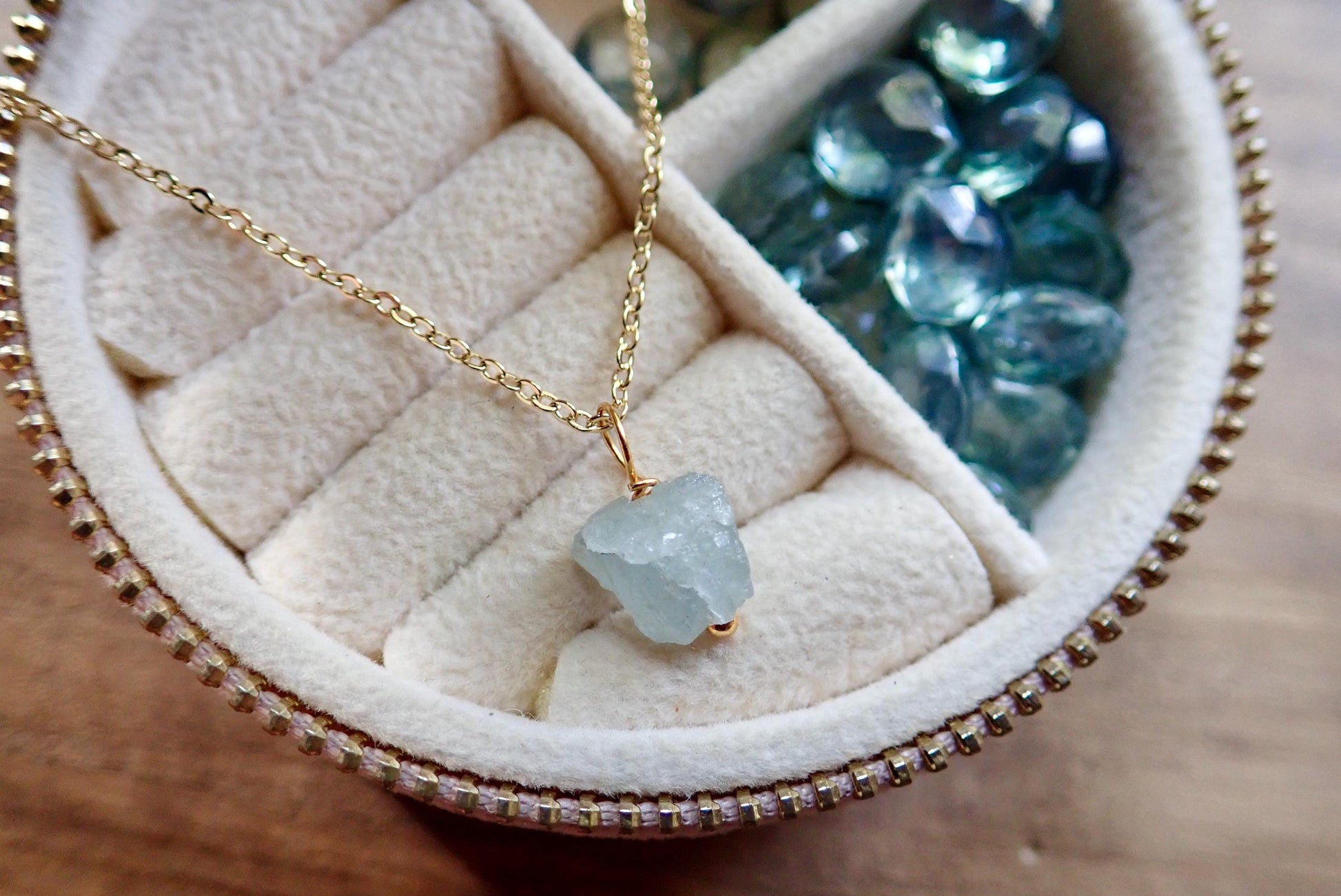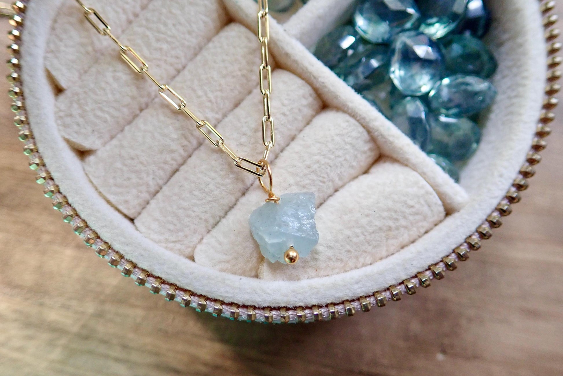 Raw Aquamarine Necklace | Dainty Crystal Necklace, Gemstone Layering Necklace