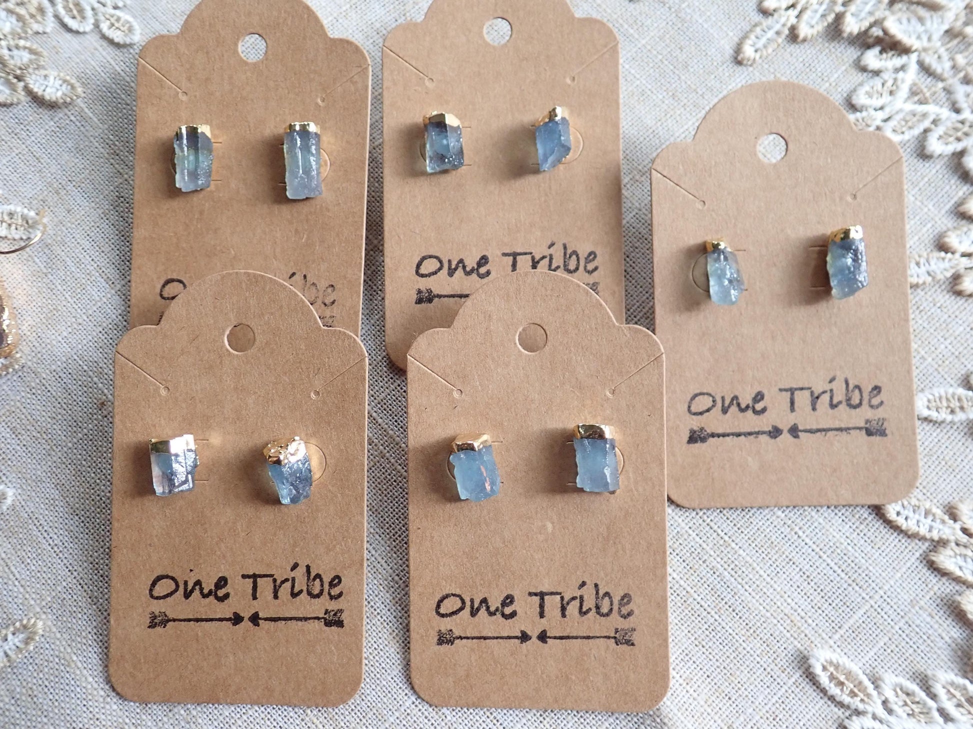 Each of the stones we use to create these special earrings were formed by nature over millions of years. Each one is unique and beautiful just like nature itself. They will vary one to another, just like Mother Nature intended. We don't treat our stones in any way and accept their rough and "imperfect" beauty and try to highlight their uniqueness in our plating process. We don't polish away "flaws" in the stones but rather leave them in their natural state. The pair you receive will be what nature intended that stone to be and may be lighter or darker, clear or more opaque, smooth or rough, rounded or angular. Just like people, each stone has special characteristics unique to itself and in that lies the beauty.