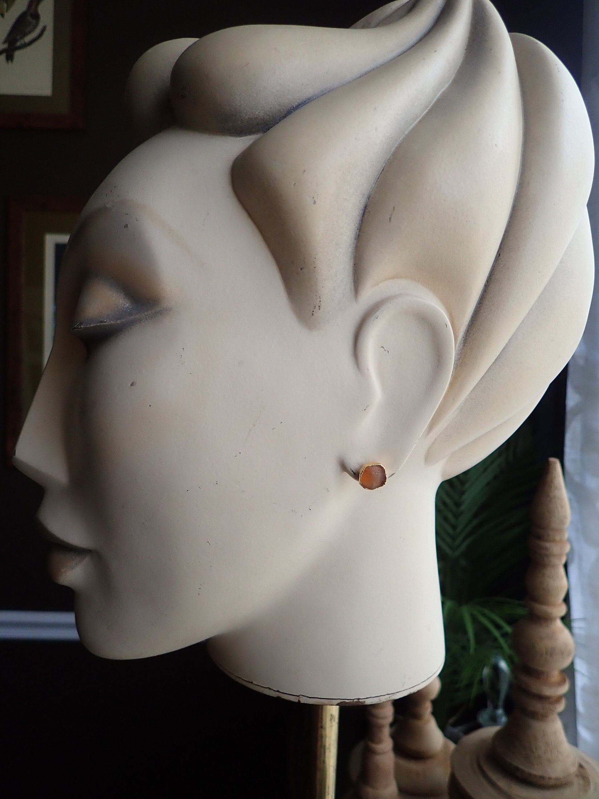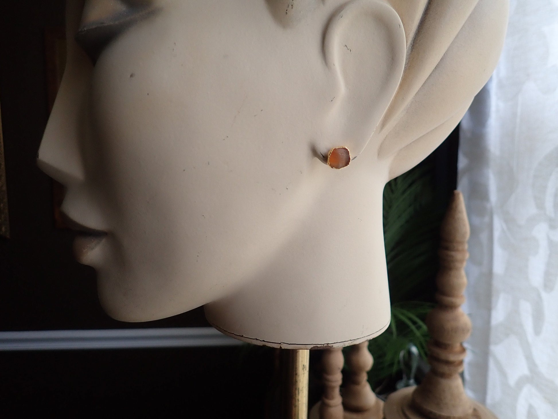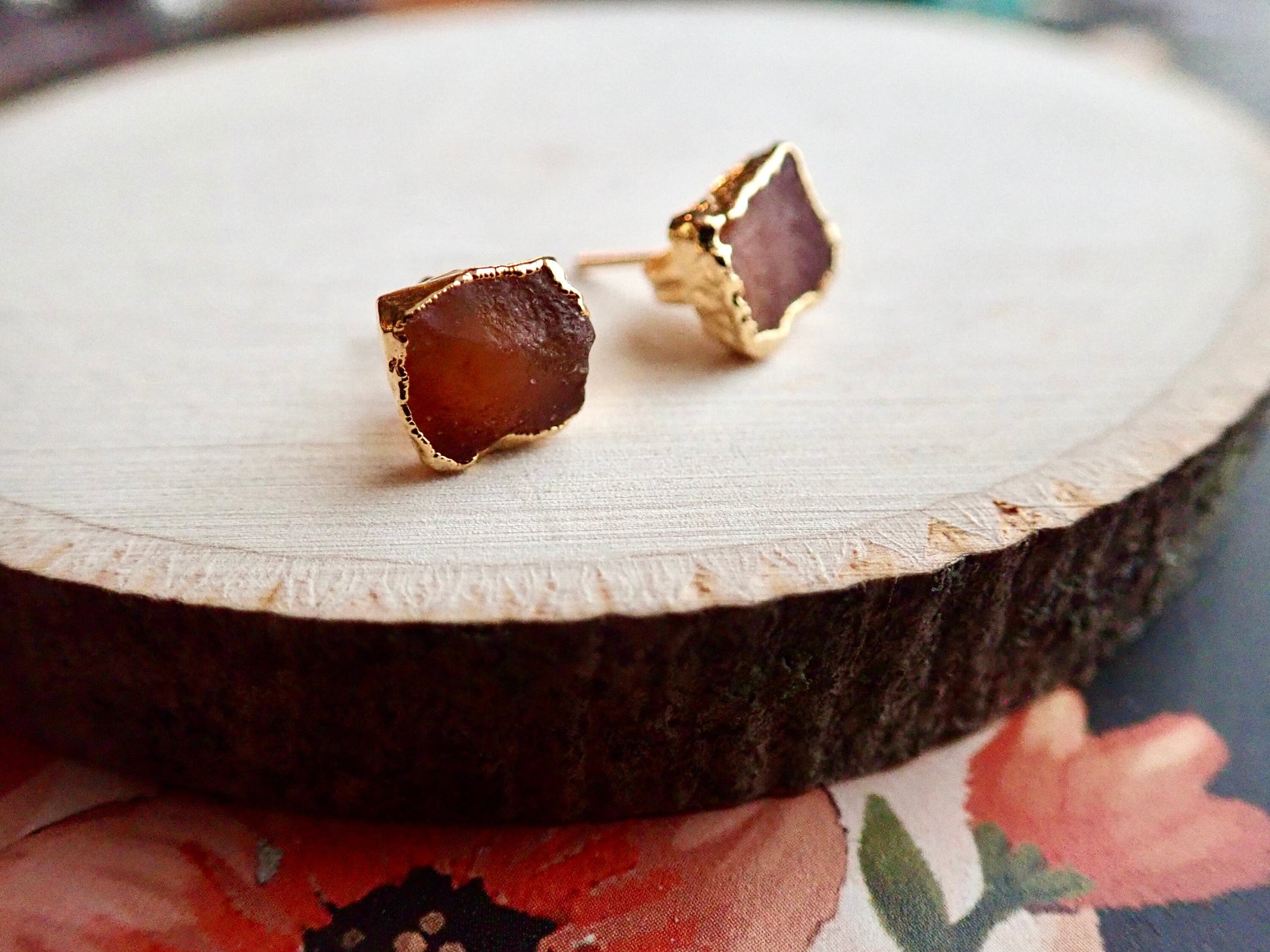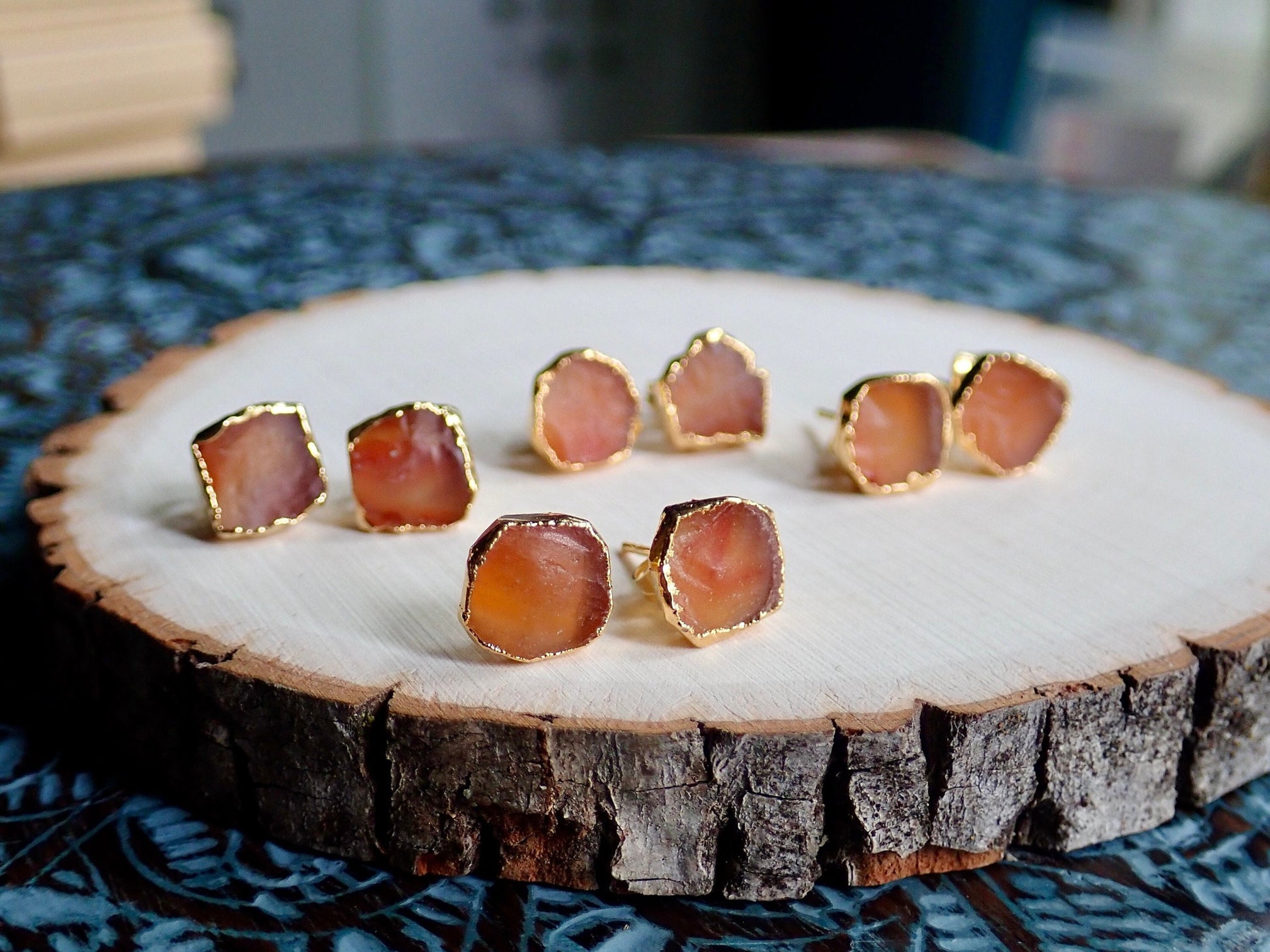Gorgeous little raw carnelian crystal stud earrings electroplated in 14k gold.