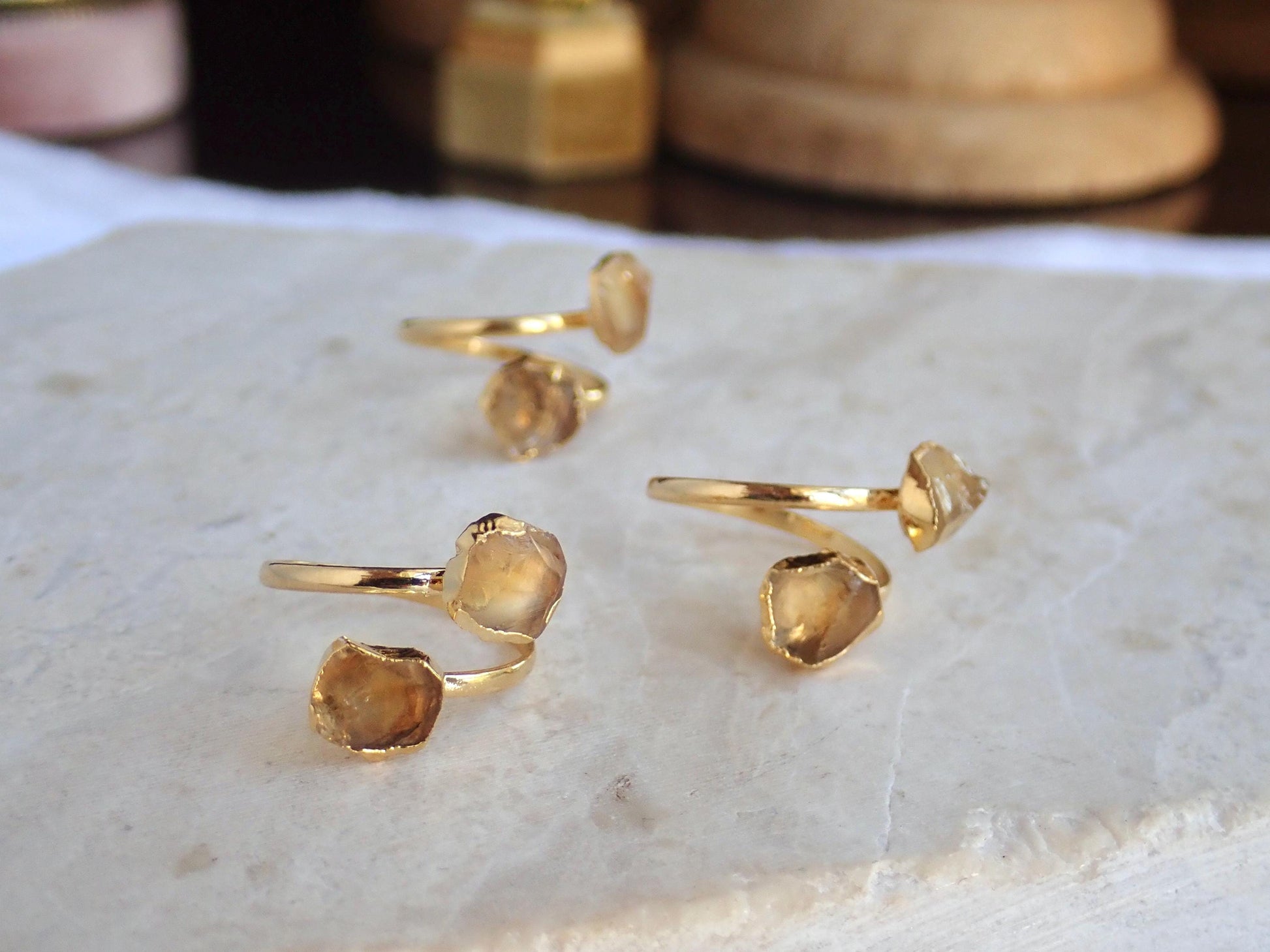 Raw Citrine Adjustable Ring – 14k Gold Open Wrap Ring with Two Natural Yellow Gemstones –November Birthstone Jewelry, Citrine Ring Gift