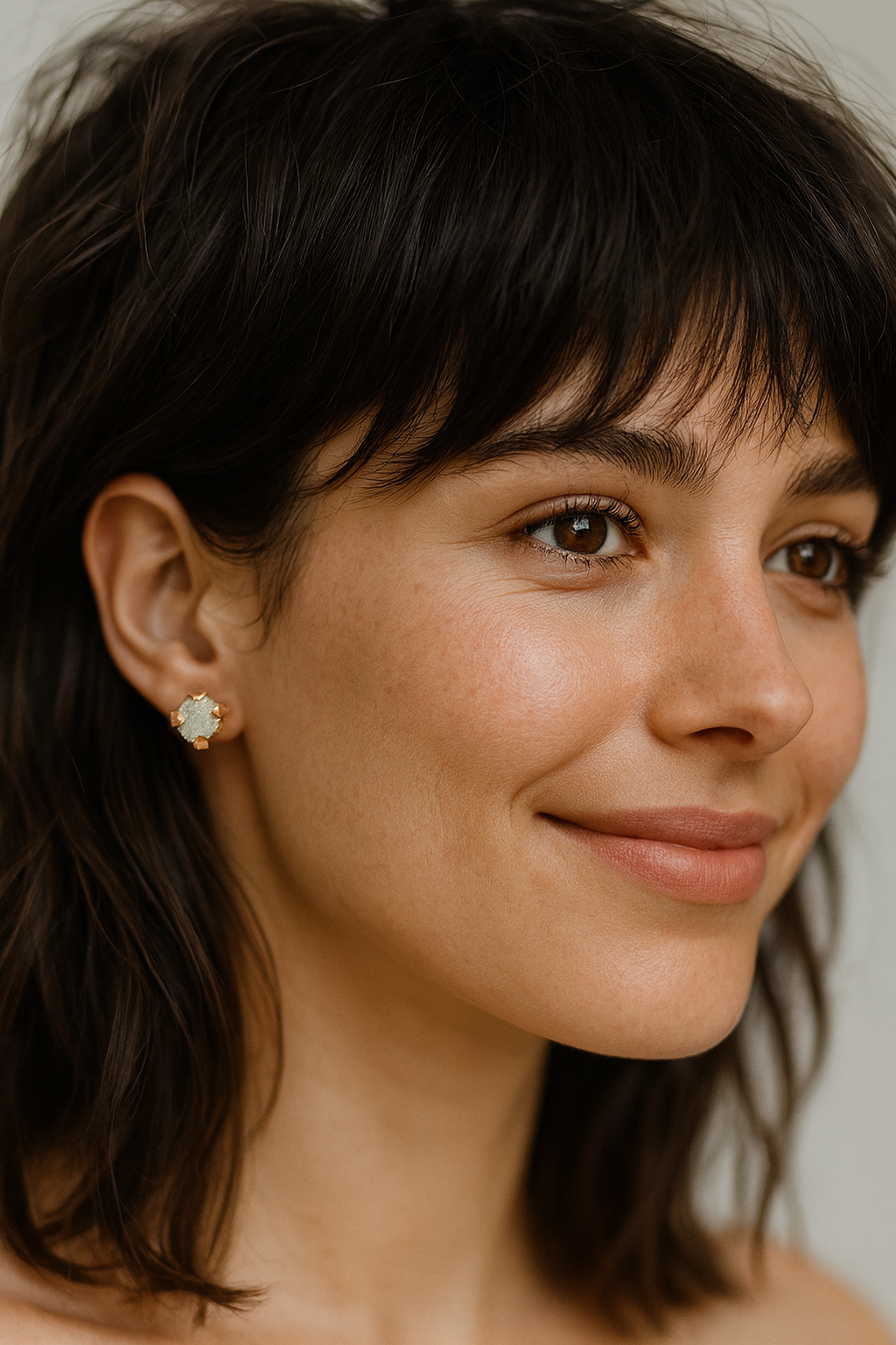 Each of the stones we use to create these special earrings were formed by nature over millions of years. Each one is unique and beautiful just like nature itself. They will vary one to another, just like Mother Nature intended. We don't treat our stones in any way and accept their rough and "imperfect" beauty and try to highlight their uniqueness in our plating process. We don't polish away "flaws" in the stones but rather leave them in their natural state. The pair you receive will be what nature intended that stone to be and may be lighter or darker, clear or more opaque, smooth or rough, rounded or angular. Just like people, each stone has special characteristics unique to itself and in that lies the beauty.
