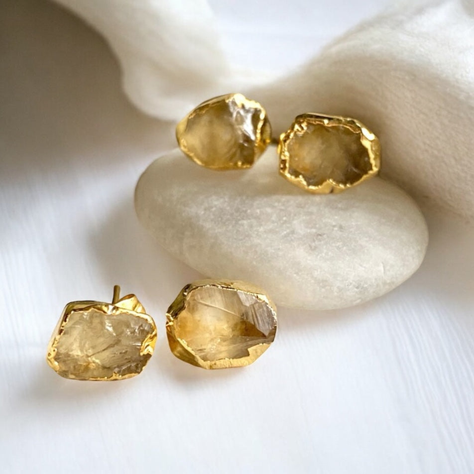 Super sweet everyday gold stud earrings in genuine raw citrine. These rough crystal earrings are perfect for everyday wear and make wonderful gifts for all those lucky Scorpios out there. This November Birthstone is like a ray of sunshine with it's warm golden hue.