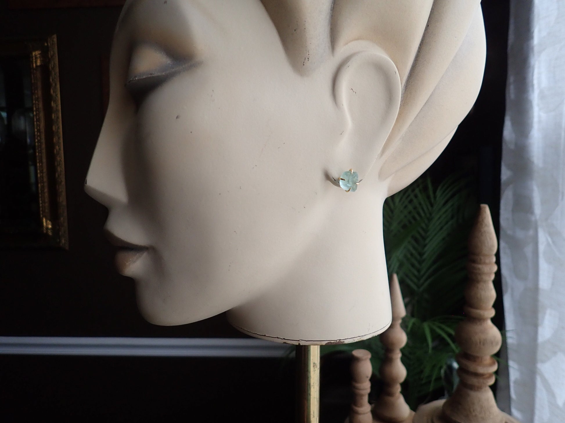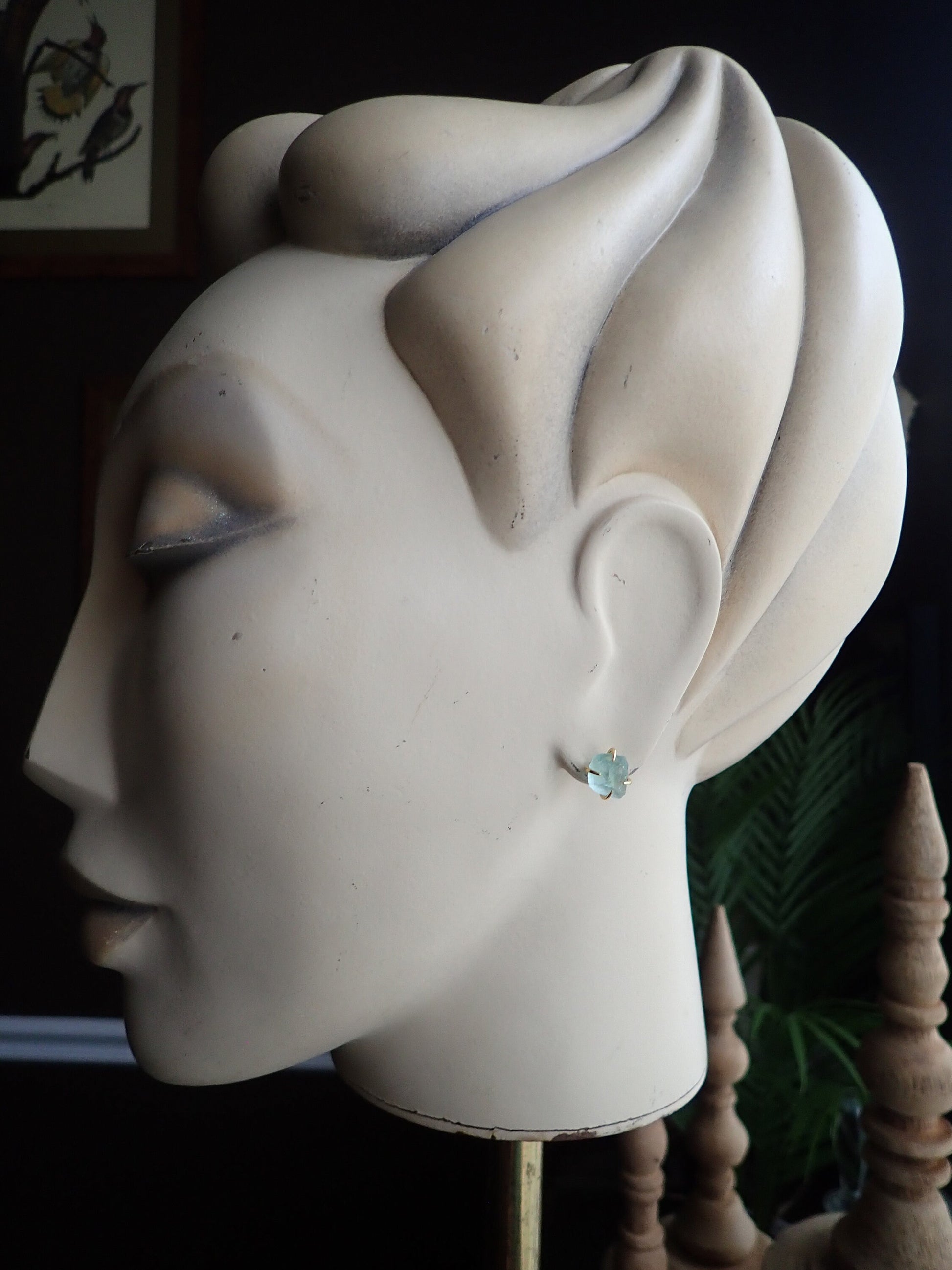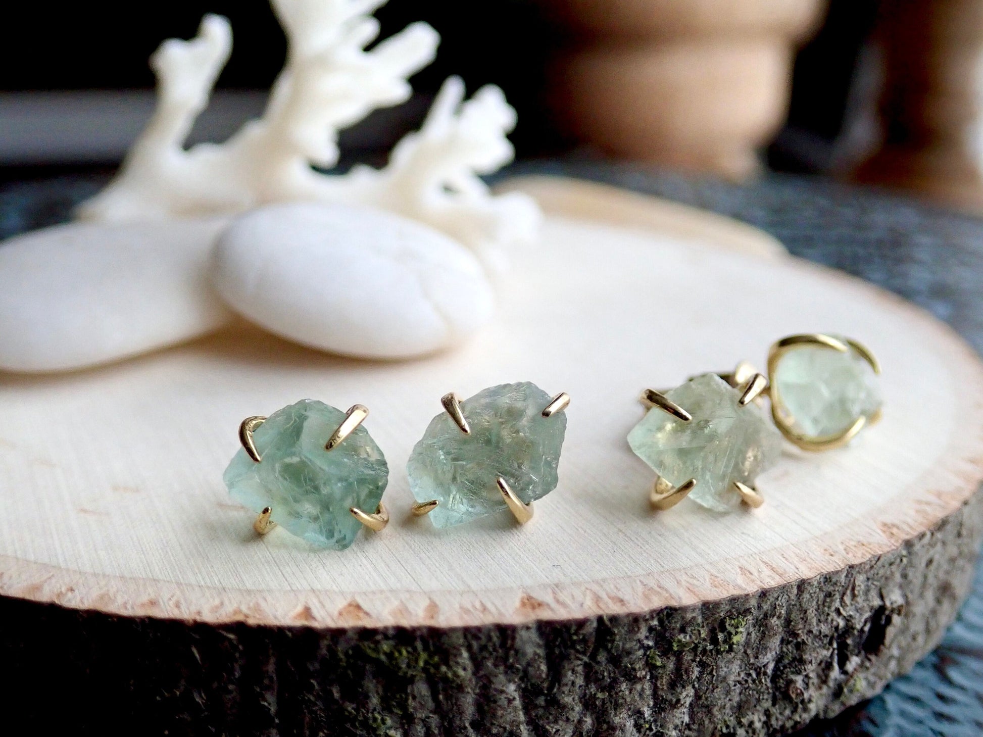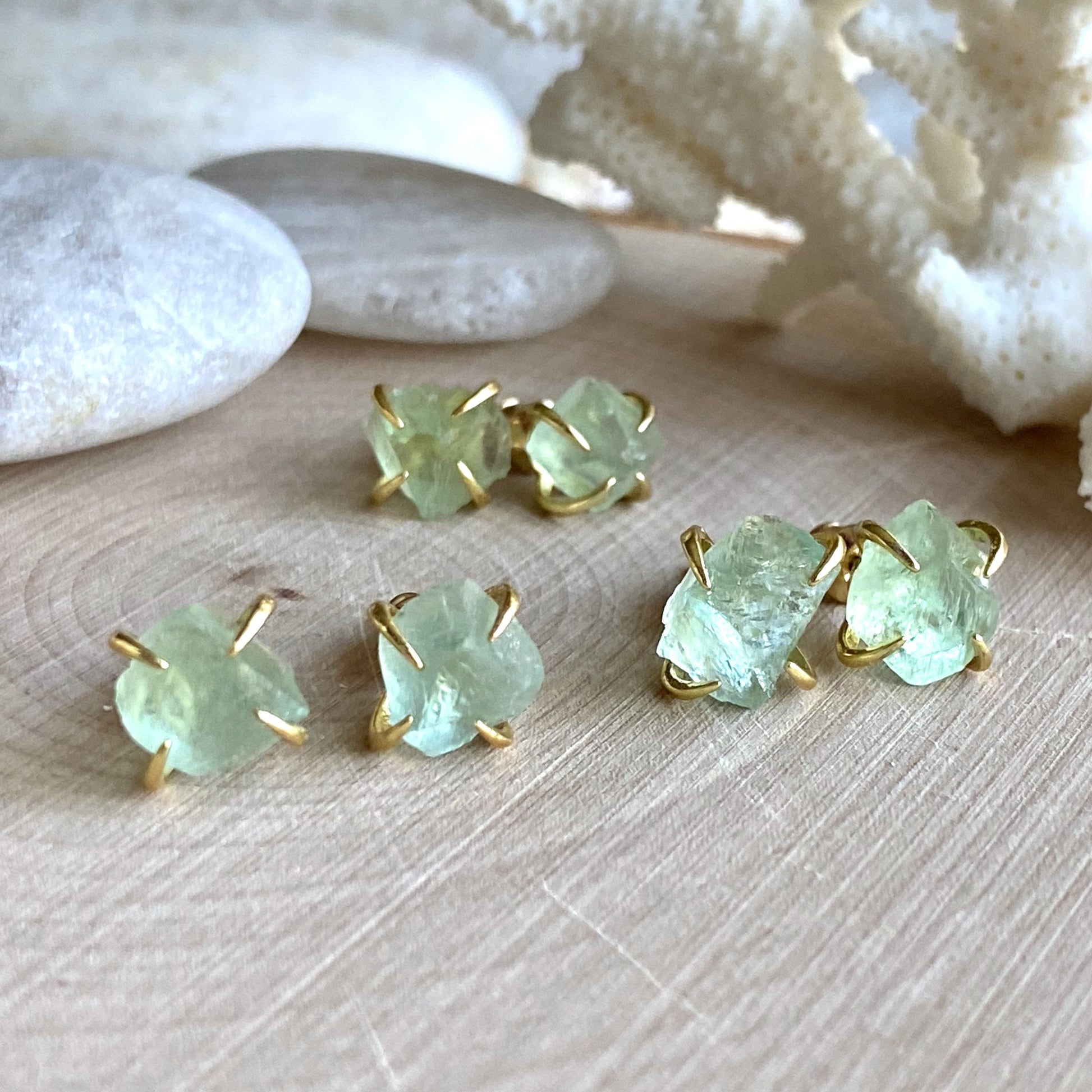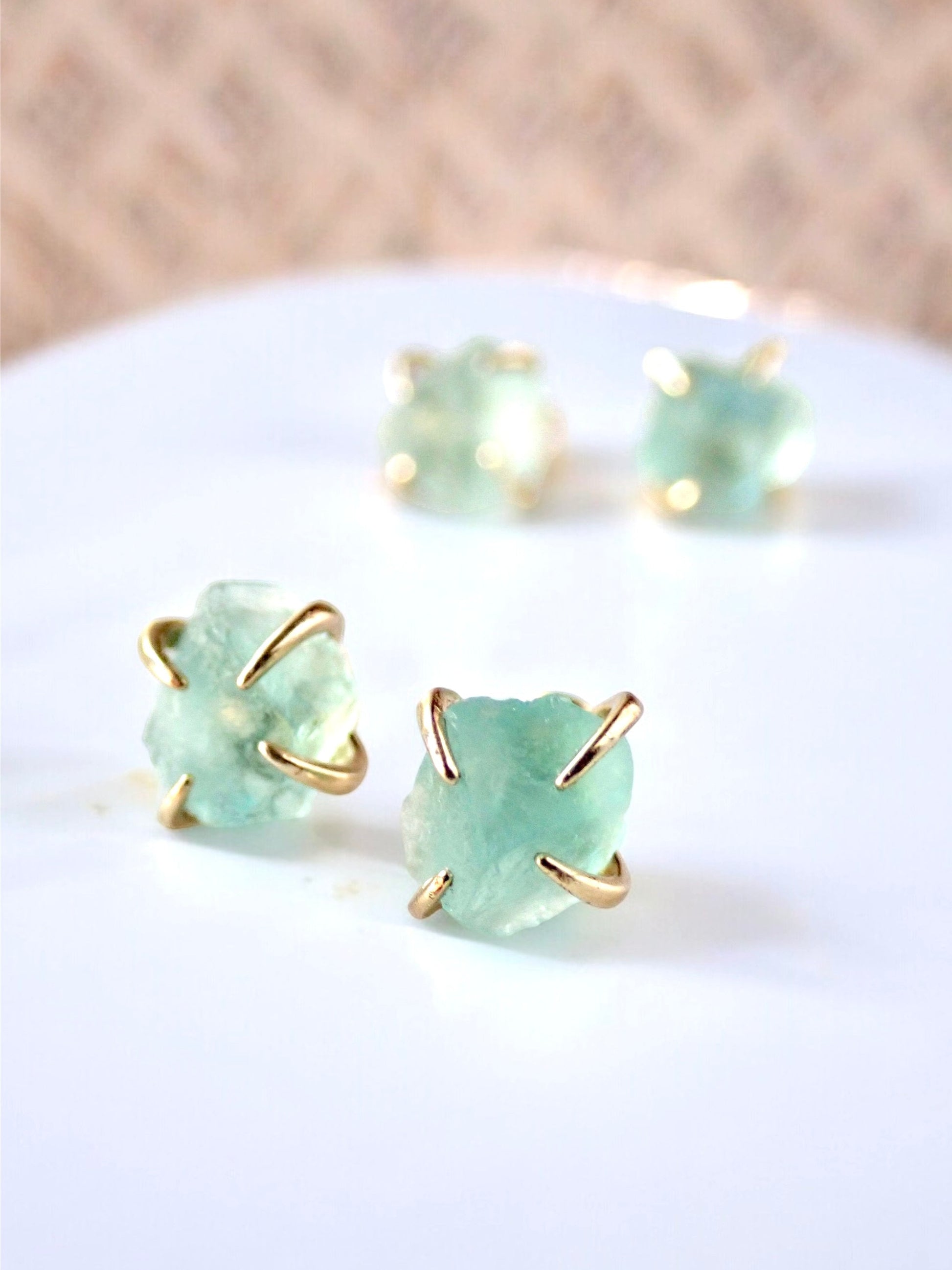 Raw Fluorite Stud Earrings – 14k Gold Plated Prong Set | Natural Crystal Earrings for Women