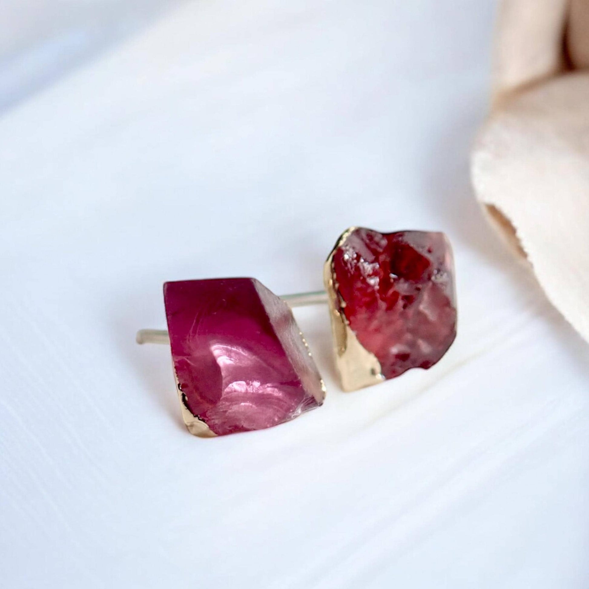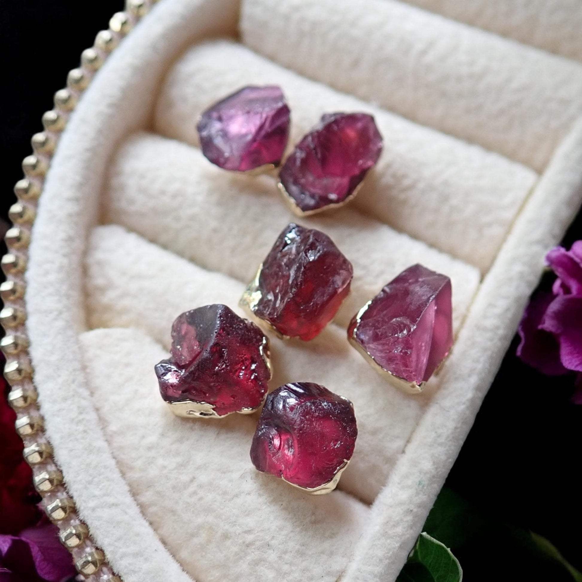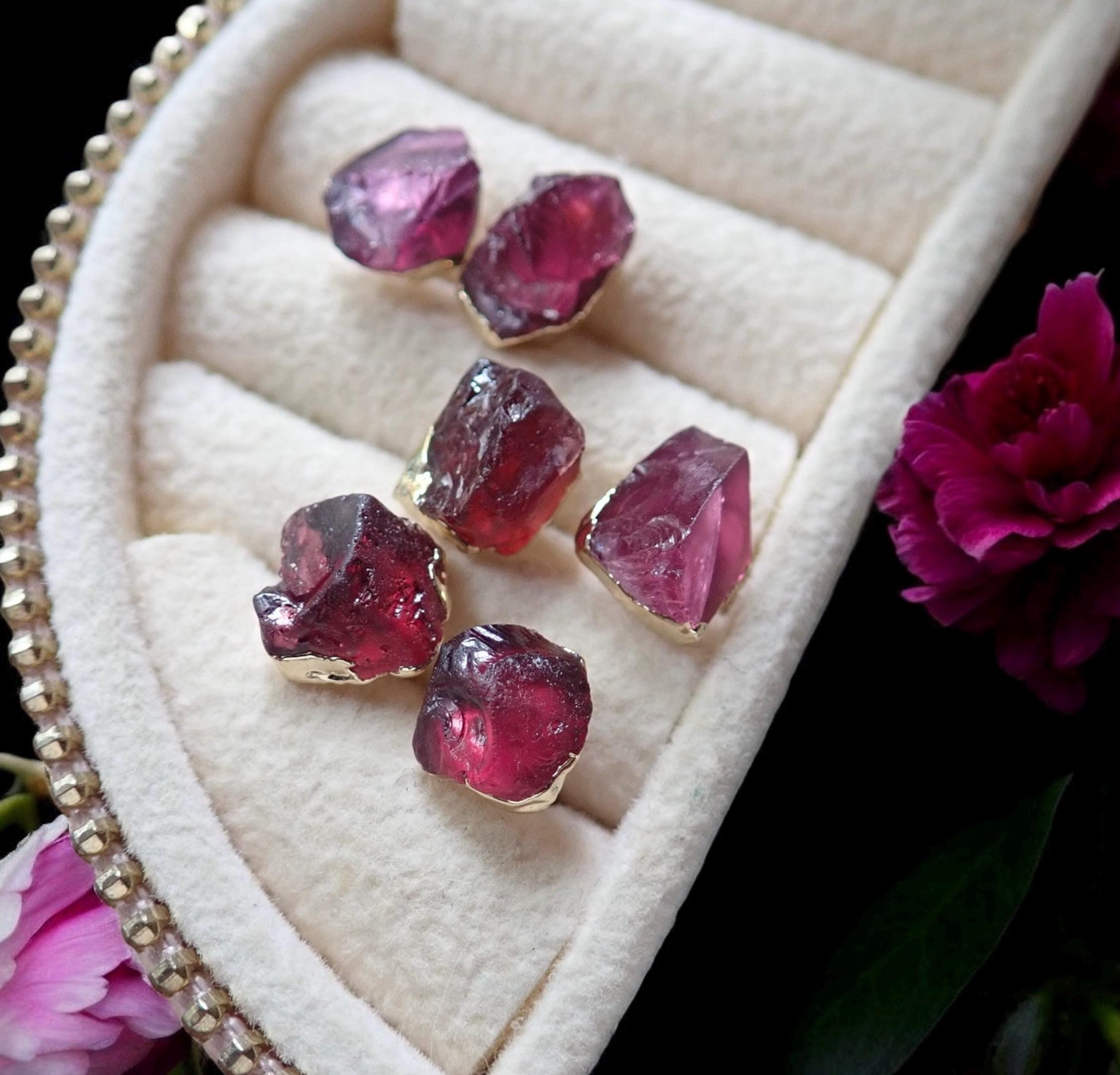 Raw Garnet Stud Earrings, January Birthstone Jewelry, Dainty Red Gemstone Earrings,Small Minimalist Crystal Posts Sterling Silver, Wife Gift
