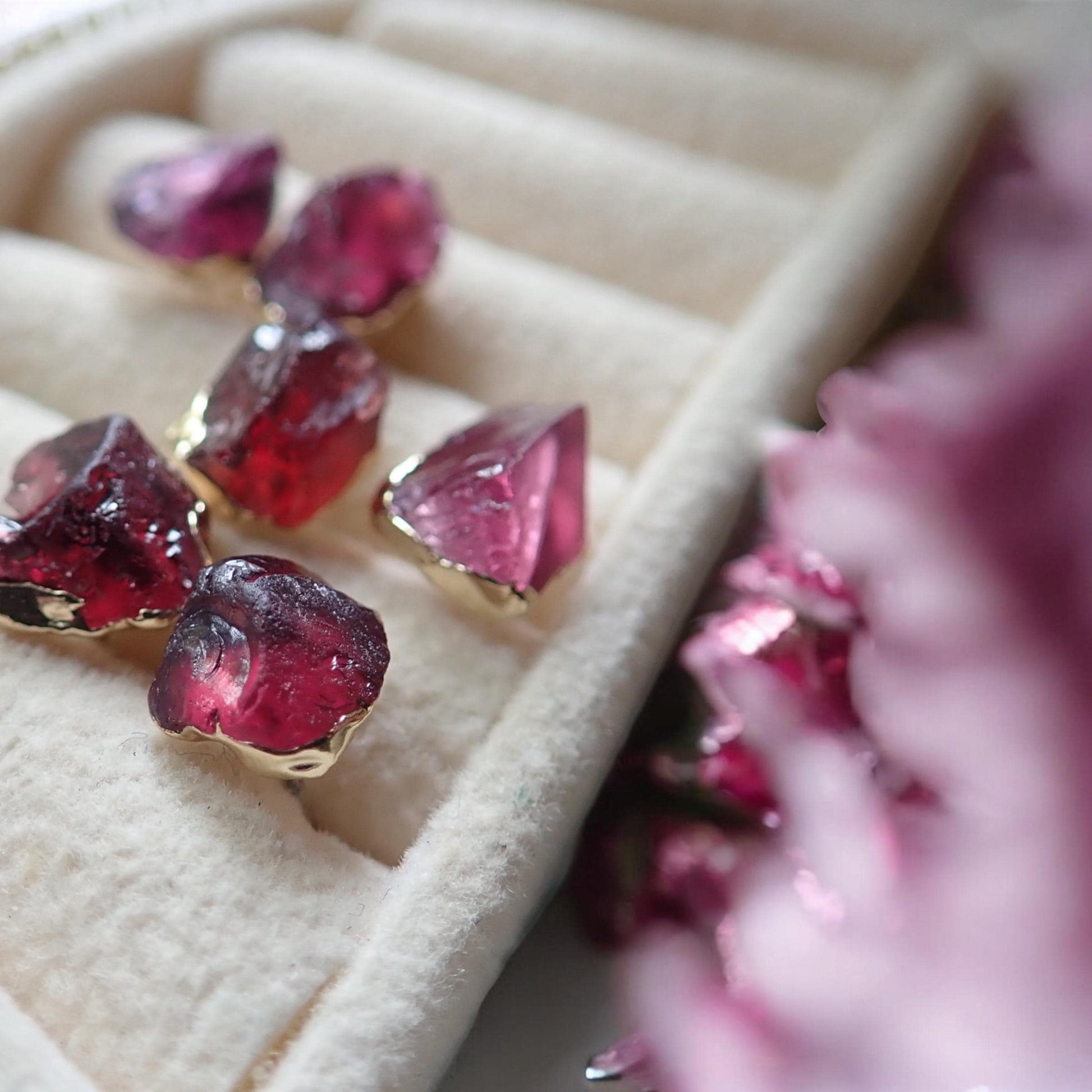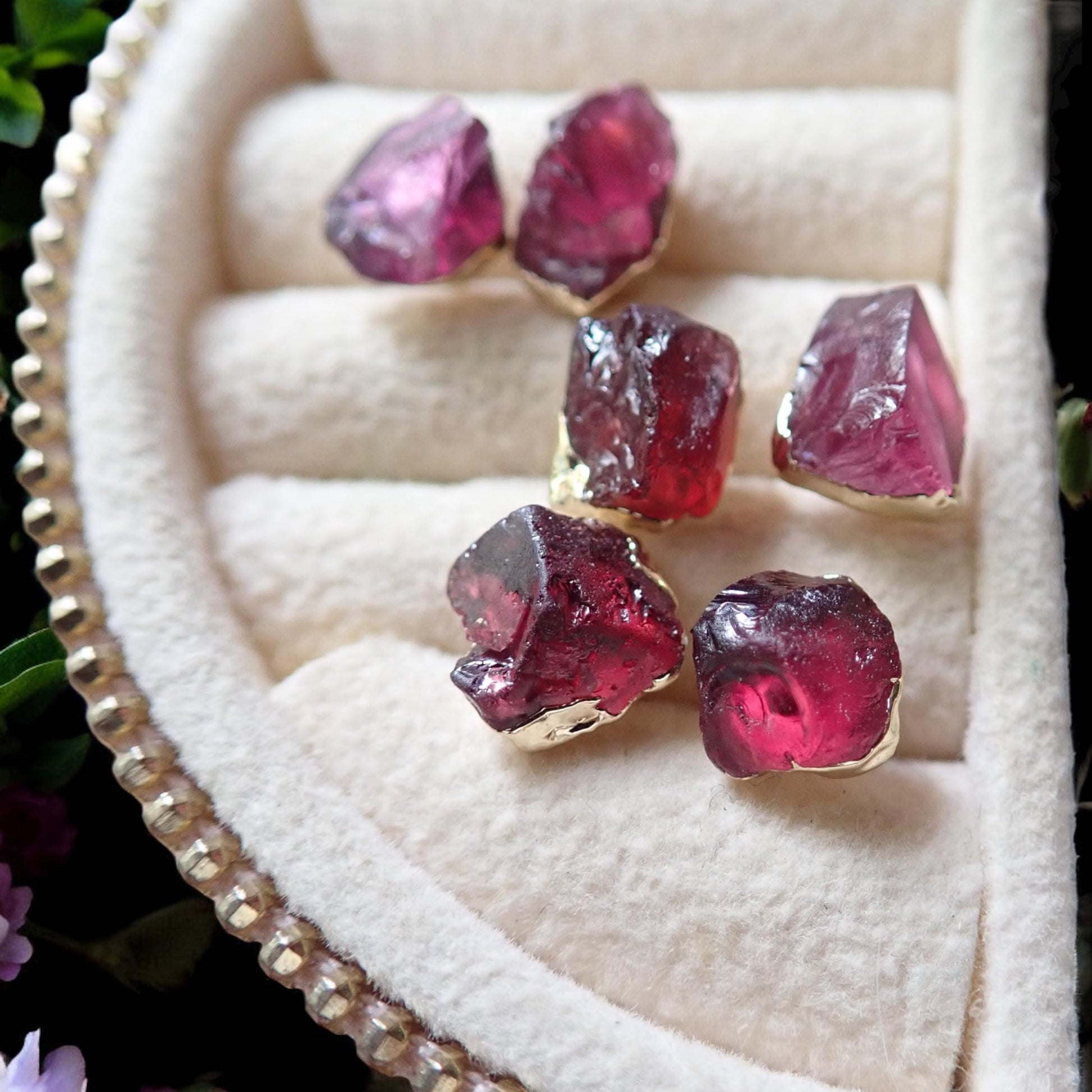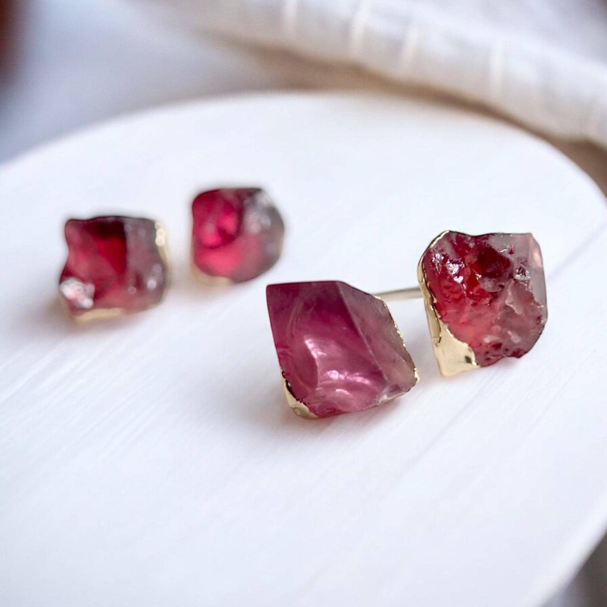 Raw Garnet Stud Earrings, January Birthstone Jewelry, Dainty Red Gemstone Earrings,Small Minimalist Crystal Posts Sterling Silver, Wife Gift