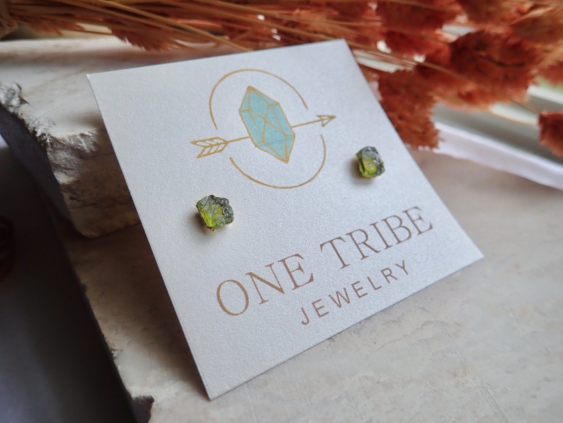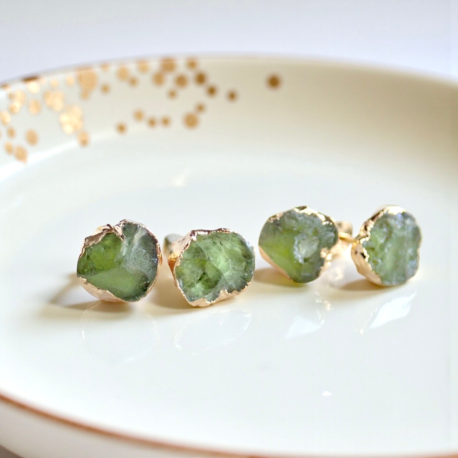 Raw Peridot Stud Earrings - Natural Green Crystal Gemstone - August Birthday Gift