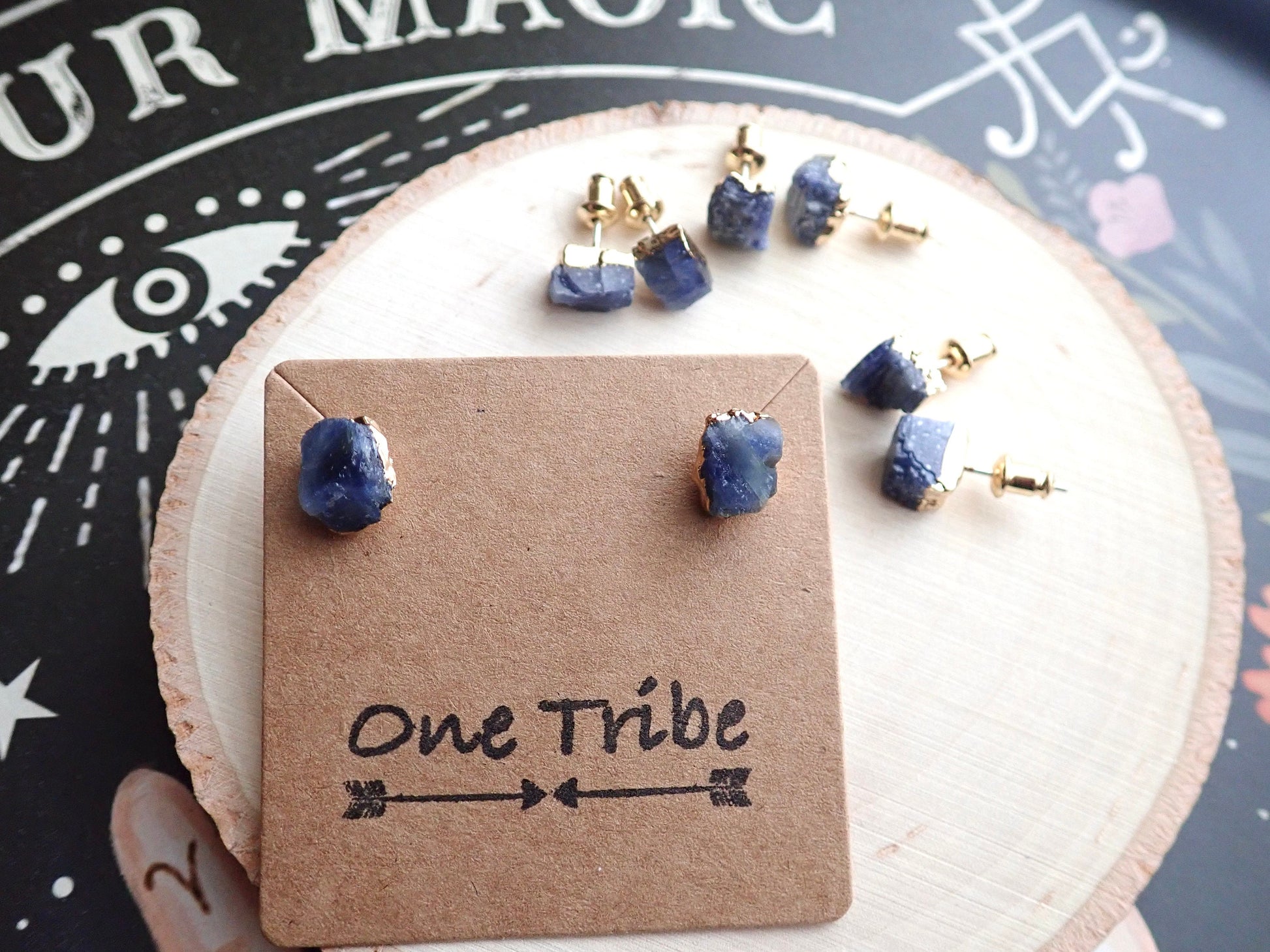 *About our gems* Each of the stones we use to create these special earrings were formed by nature over millions of years. Each one is unique and beautiful just like nature itself. They will vary one to another, just like Mother Nature intended. We don't treat our stones in any way and accept their rough and "imperfect" beauty and try to highlight their uniqueness in our plating process. We don't polish away "flaws" in the stones but rather leave them in their natural state. The pair you receive will be what nature intended that stone to be and may be lighter or darker, clear or more opaque, smooth or rough, rounded or angular. Just like people, each stone has special characteristics unique to itself and in that lies the beauty.
