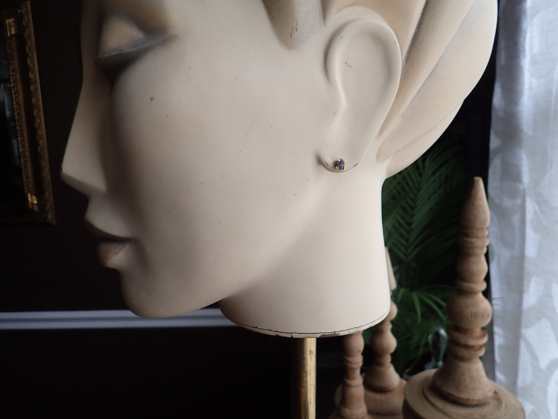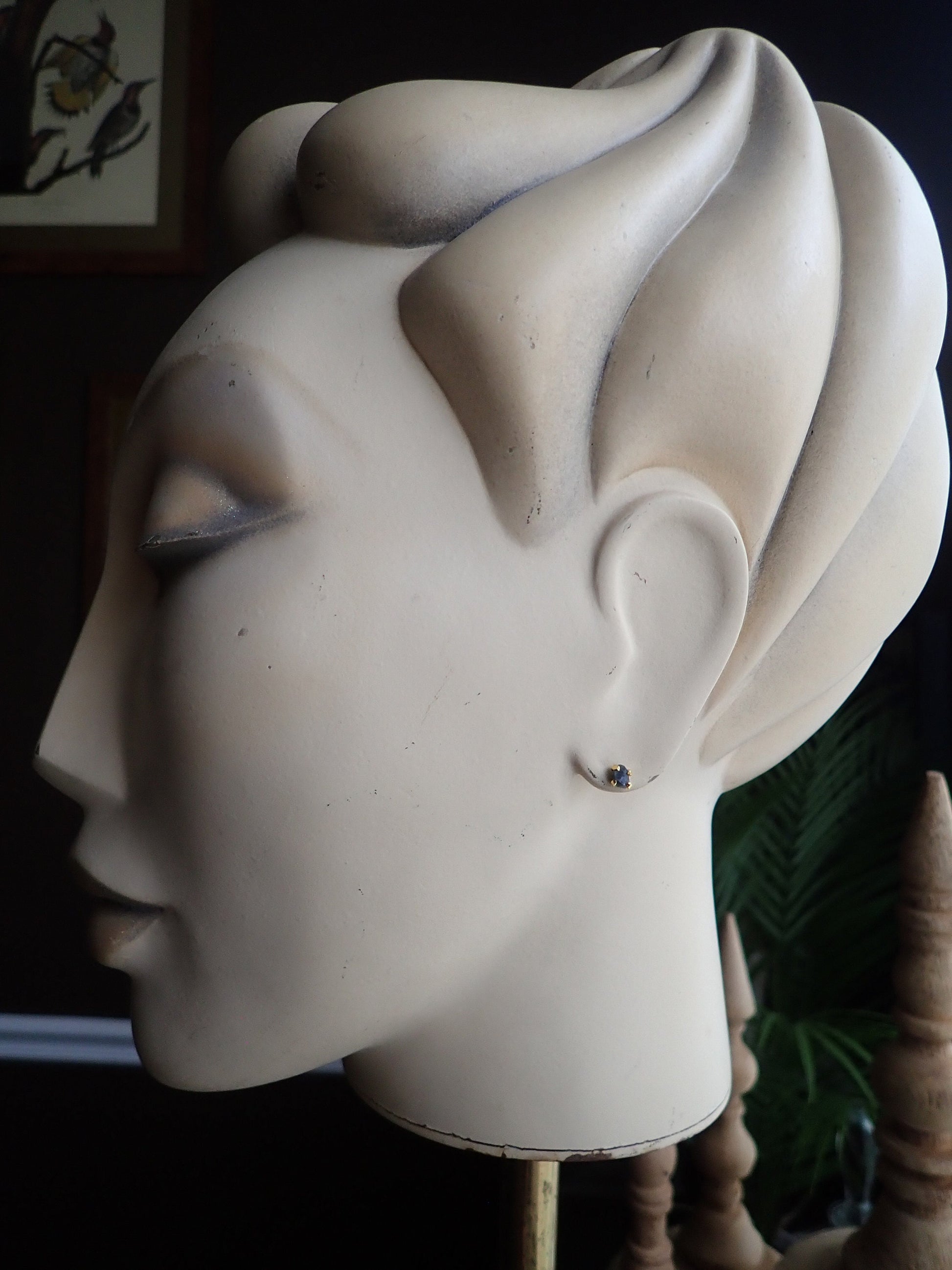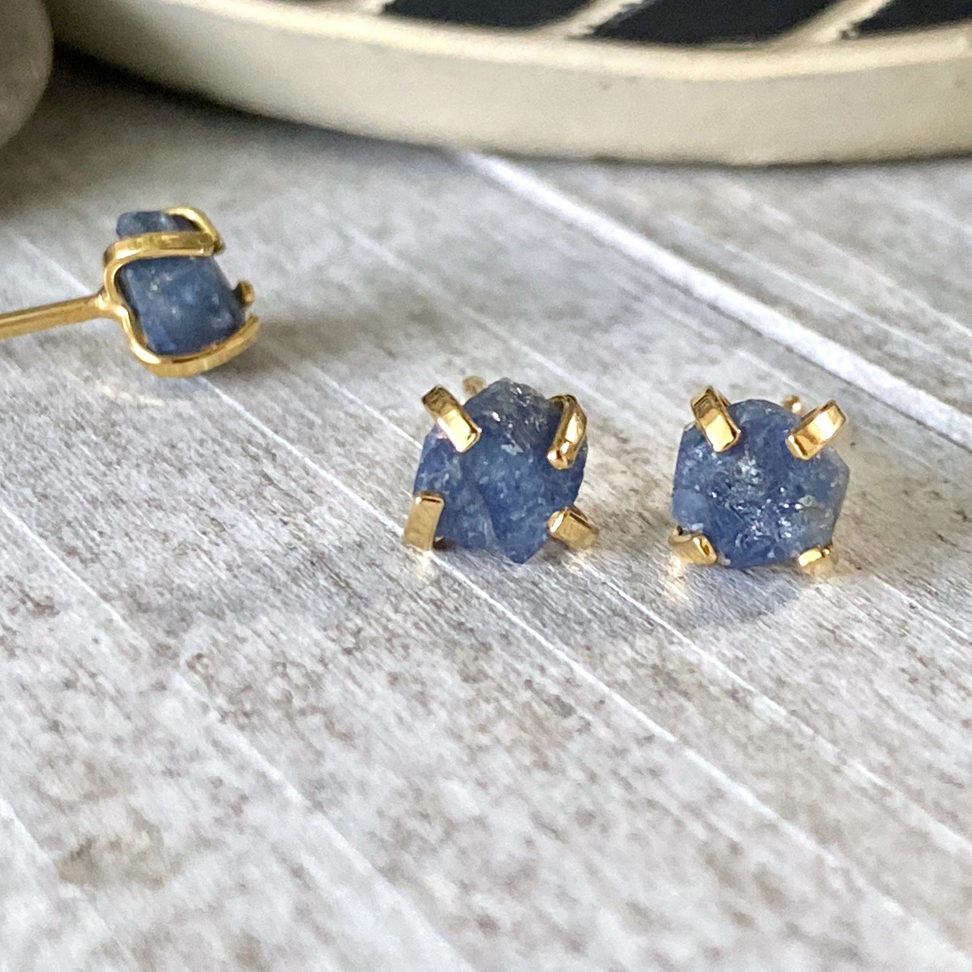 Raw Sapphire Earrings, Tiny Sapphire Studs, Birthstone Earrings,Raw Crystal Studs,September Birthstone,Dainty Stone Studs, Handmade Gift