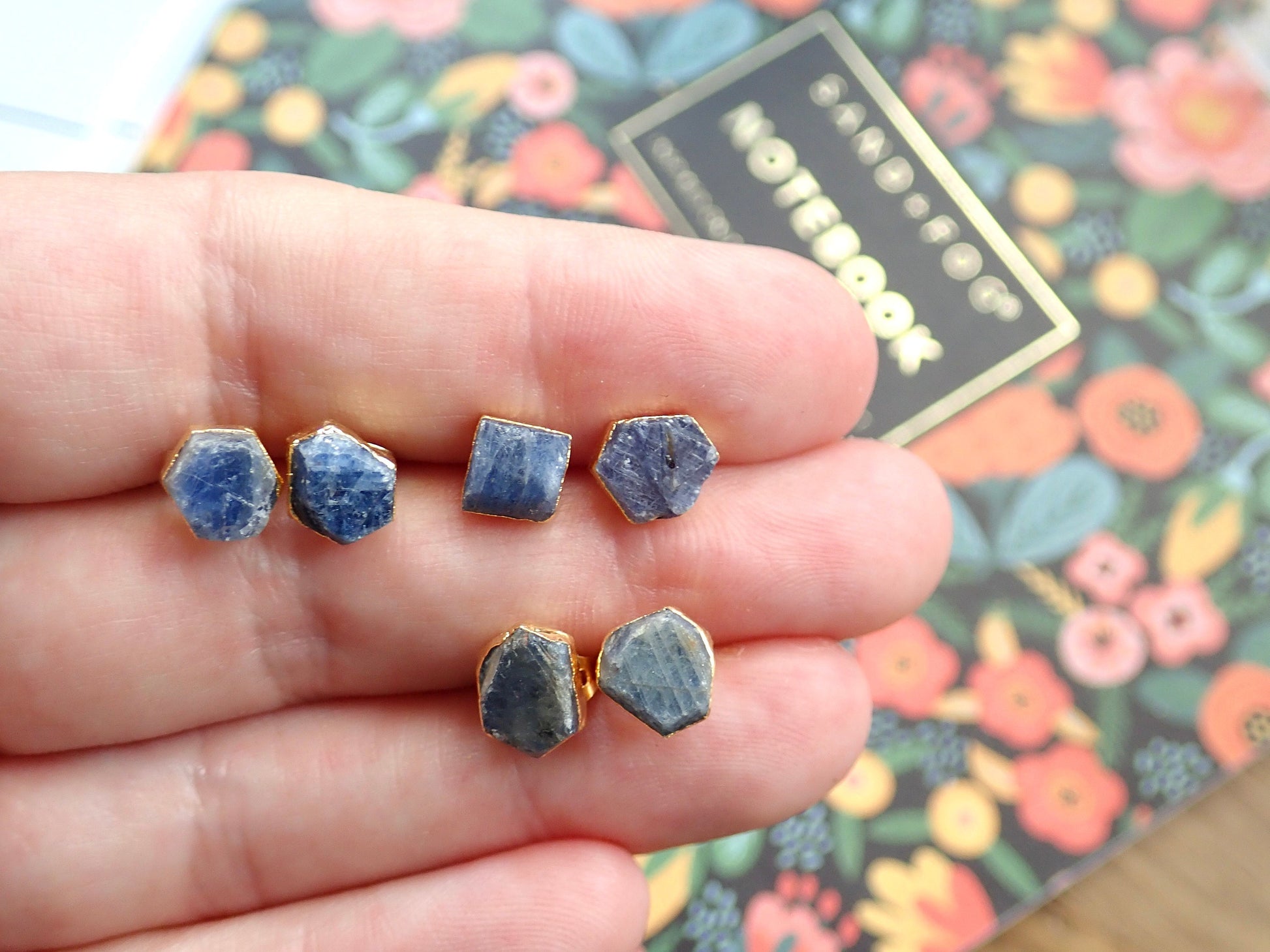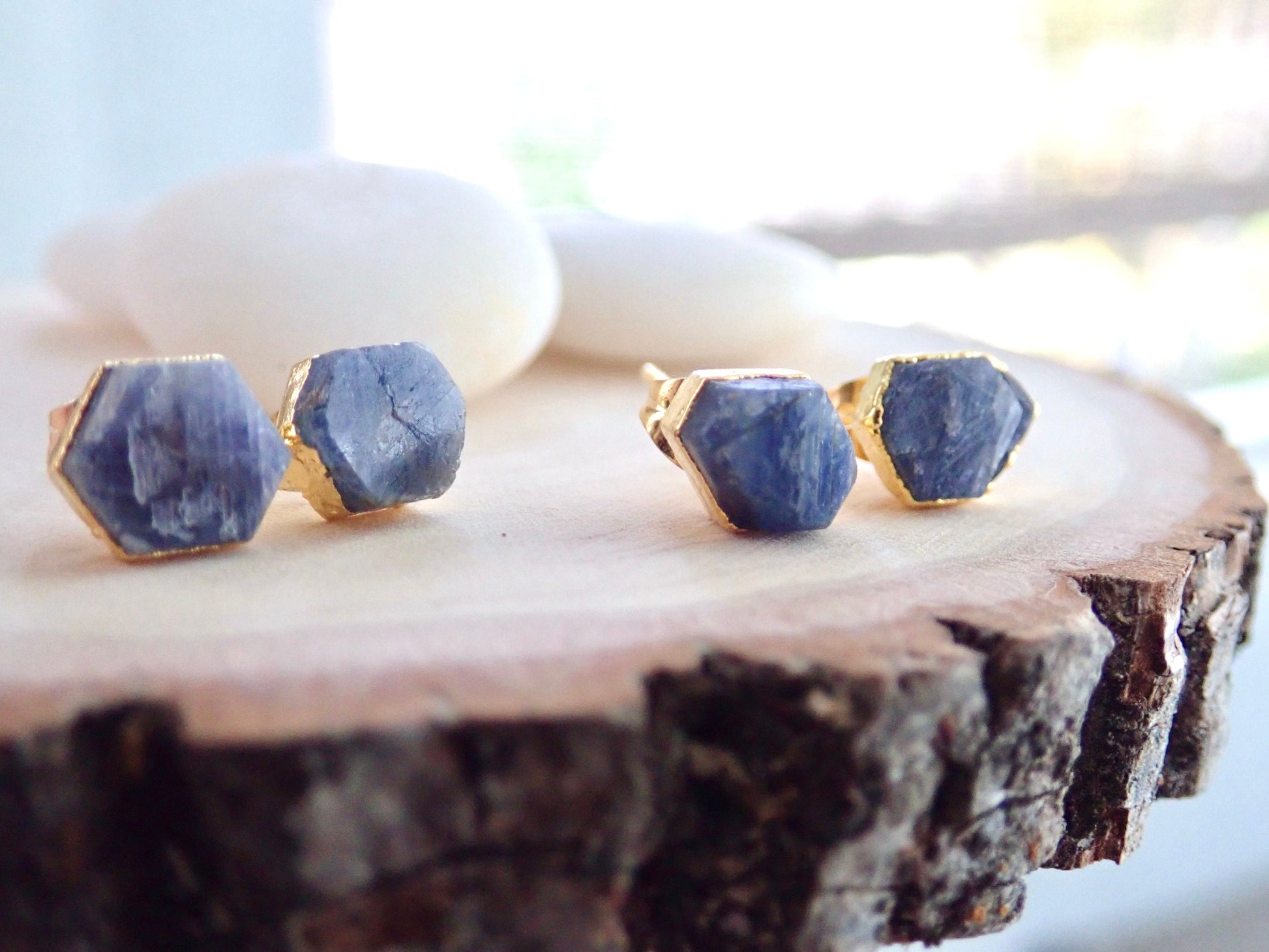Raw Sapphire Studs Earrings, Natural Gemstone Post Earrings, Sapphire Jewelry, Birthstone Stud Earrings,Sapphire Earrings,Birthstone Jewelry