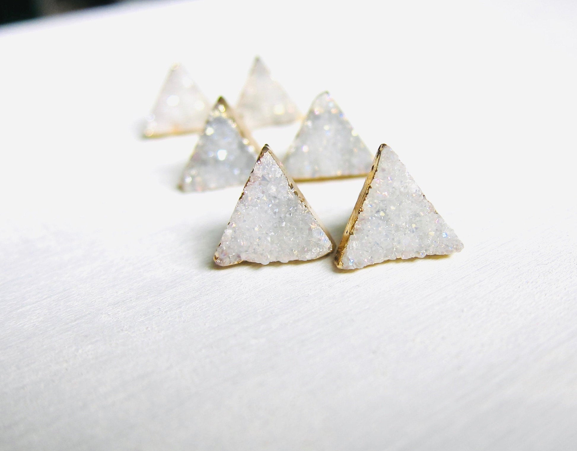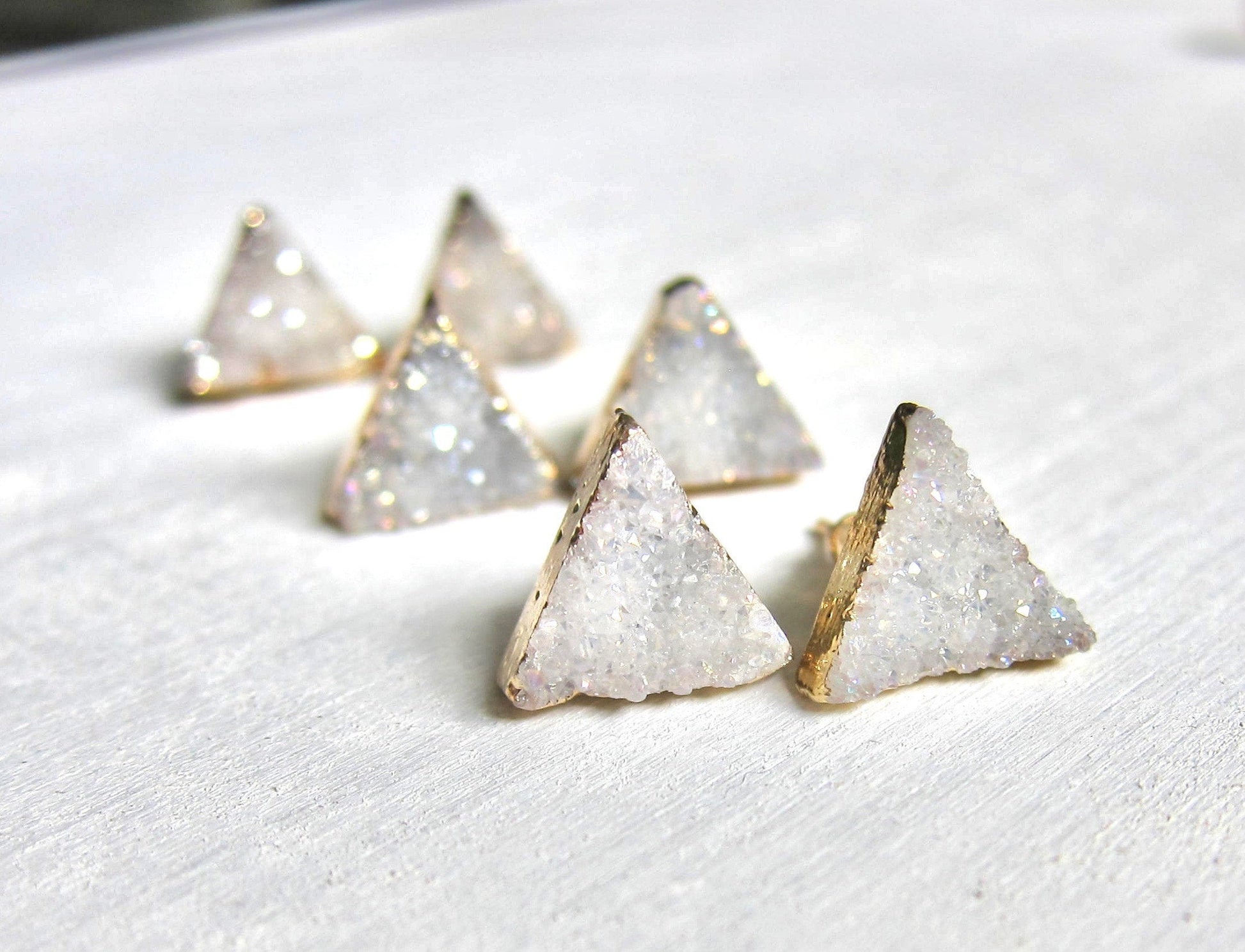 Everyday earrings that pack a punch. Who doesn't love a little sparkle? With these dainty little beauties you can wear that unmistakable druzy shimmer every day of the week. The druzy stones dazzle in white and are electroplated in 14k gold.