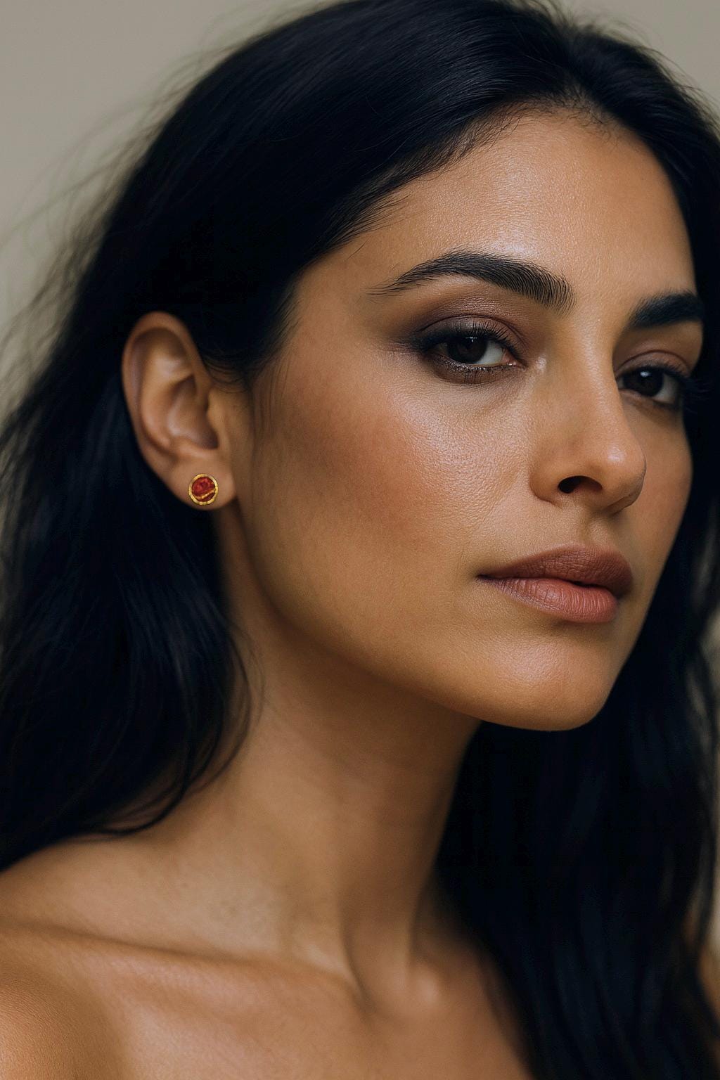 Ruby Red Mojave Stud Earrings – Round Gemstone Studs| Boho Minimalist Jewelry, January Birthstone Gift for Her, Kintsugi Post Earrings
