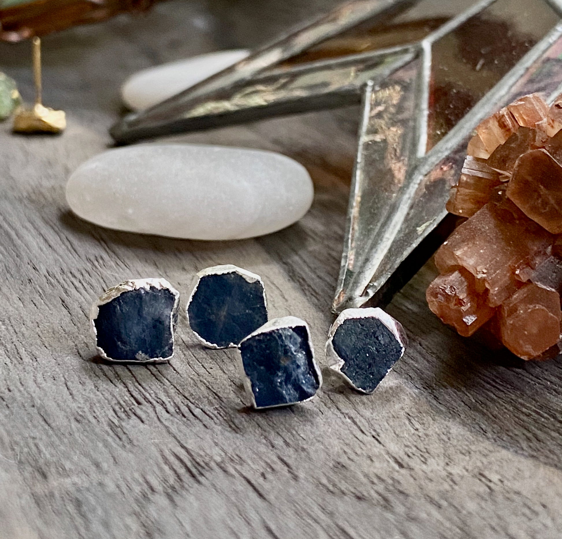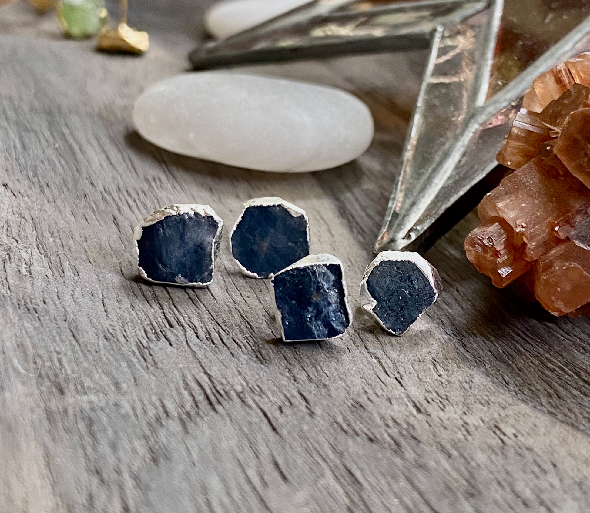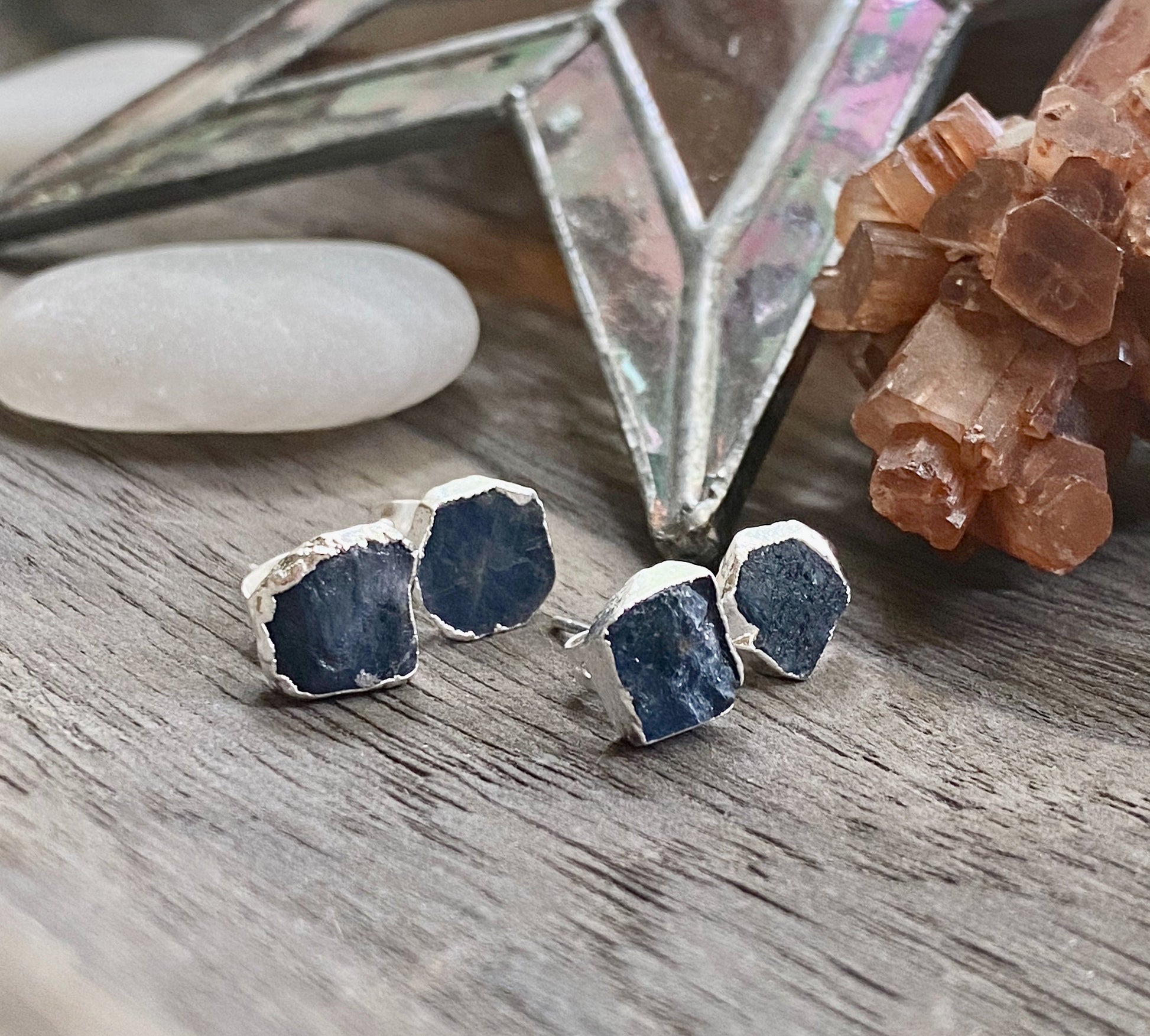 *Stone-Rough Sapphire- each set is unique and ranges in color as seen in photos.