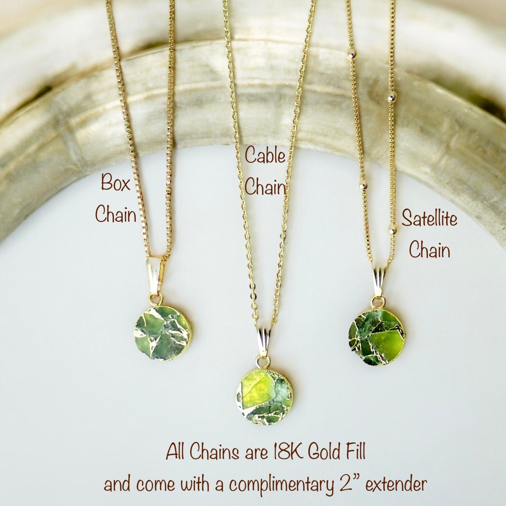 Chain: Choose your style from the drop down menu. All chains are 16" with an additional 2" extender for a total of 18"