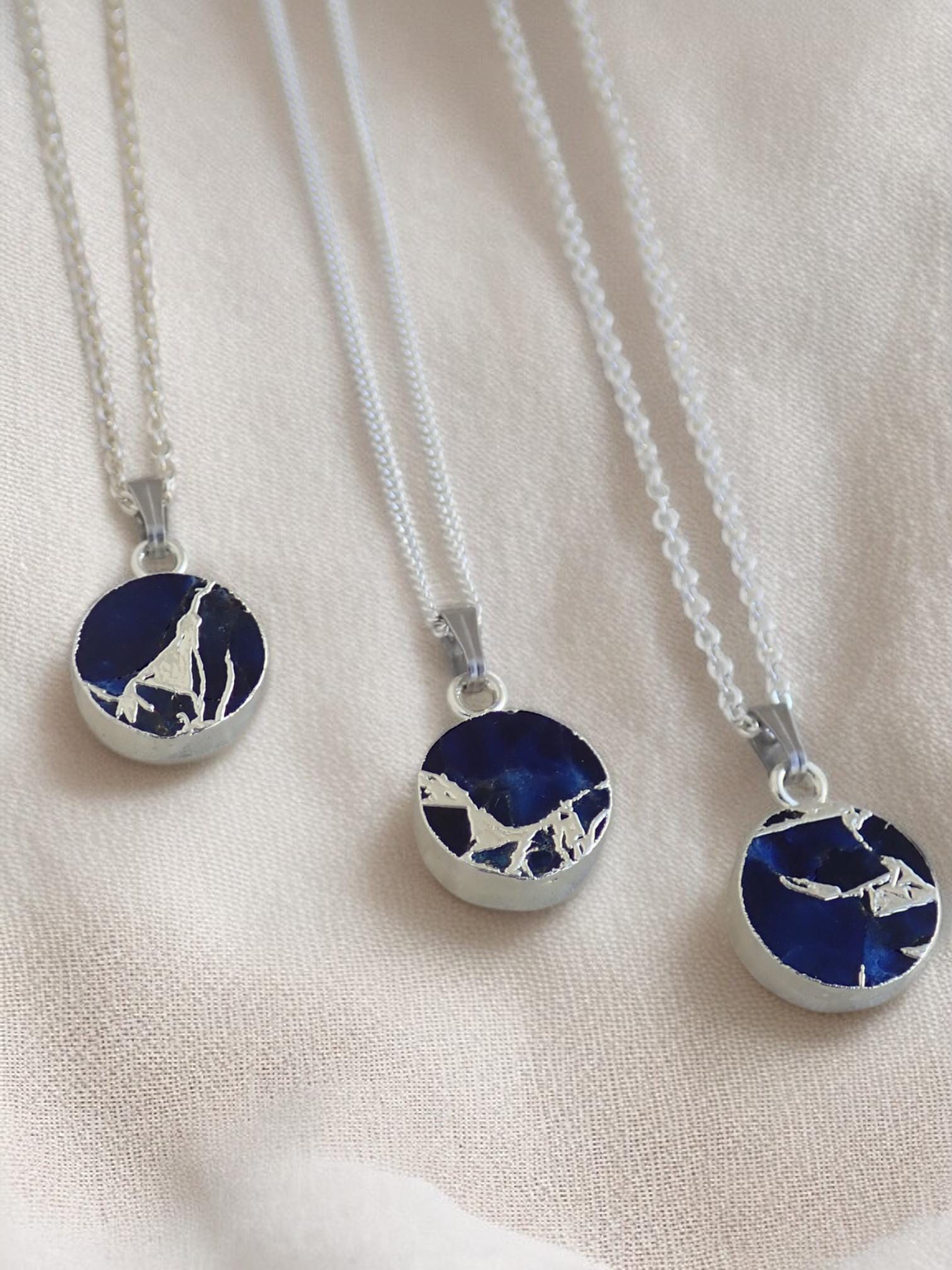Sapphire Mojave Necklace Silver, Blue Gemstone Coin Necklace, May Birthstone Gift for Her, Kintsugi Inspired