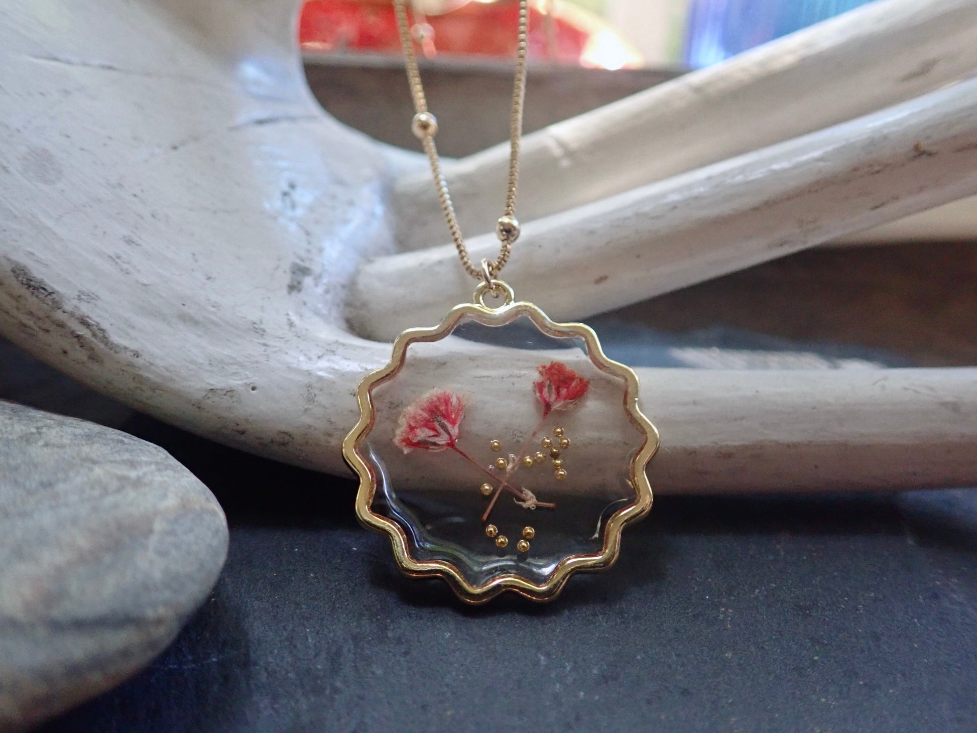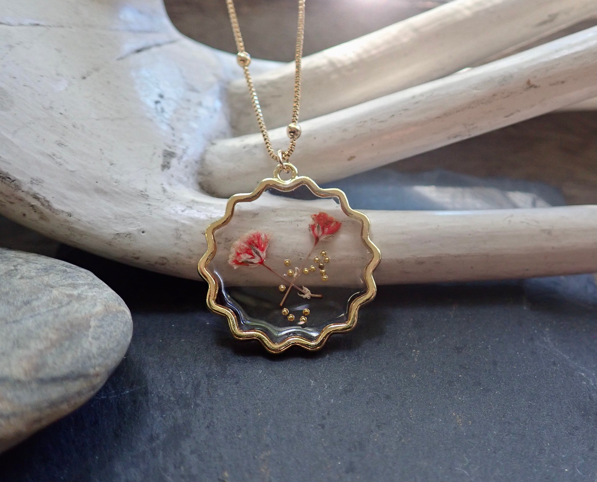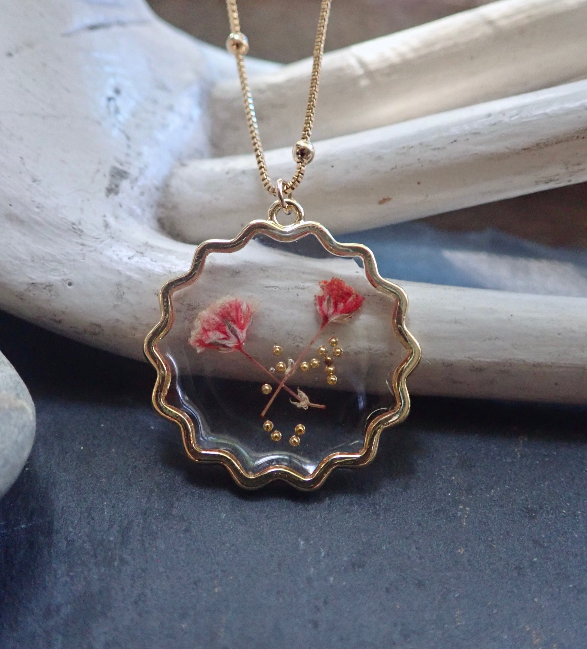 * Each pendant is unique as these are genuine flowers. Please expect minor variations.
