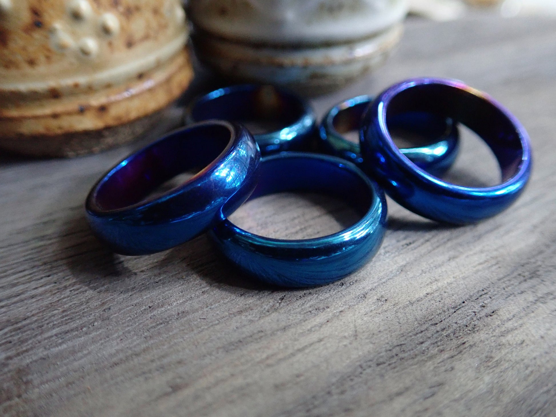 6MM domed Blue ElectroplatedHematite Bands, cut from one solid piece of hematite, polished smooth, and plated to achieve the lustrous dark blue color.