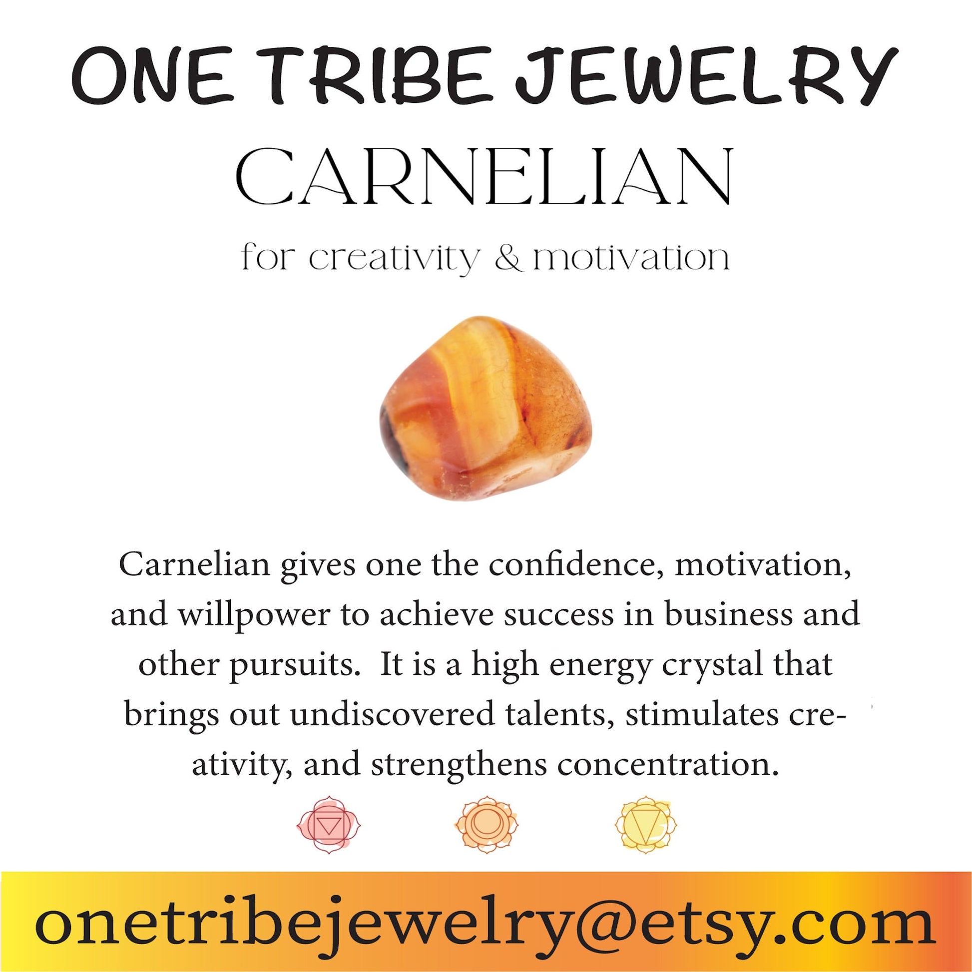 *A stabilising stone, Carnelian restores vitality and motivation, and stimulates creativity. It gives courage, promotes positive life choices, dispels apathy and motivates for success.