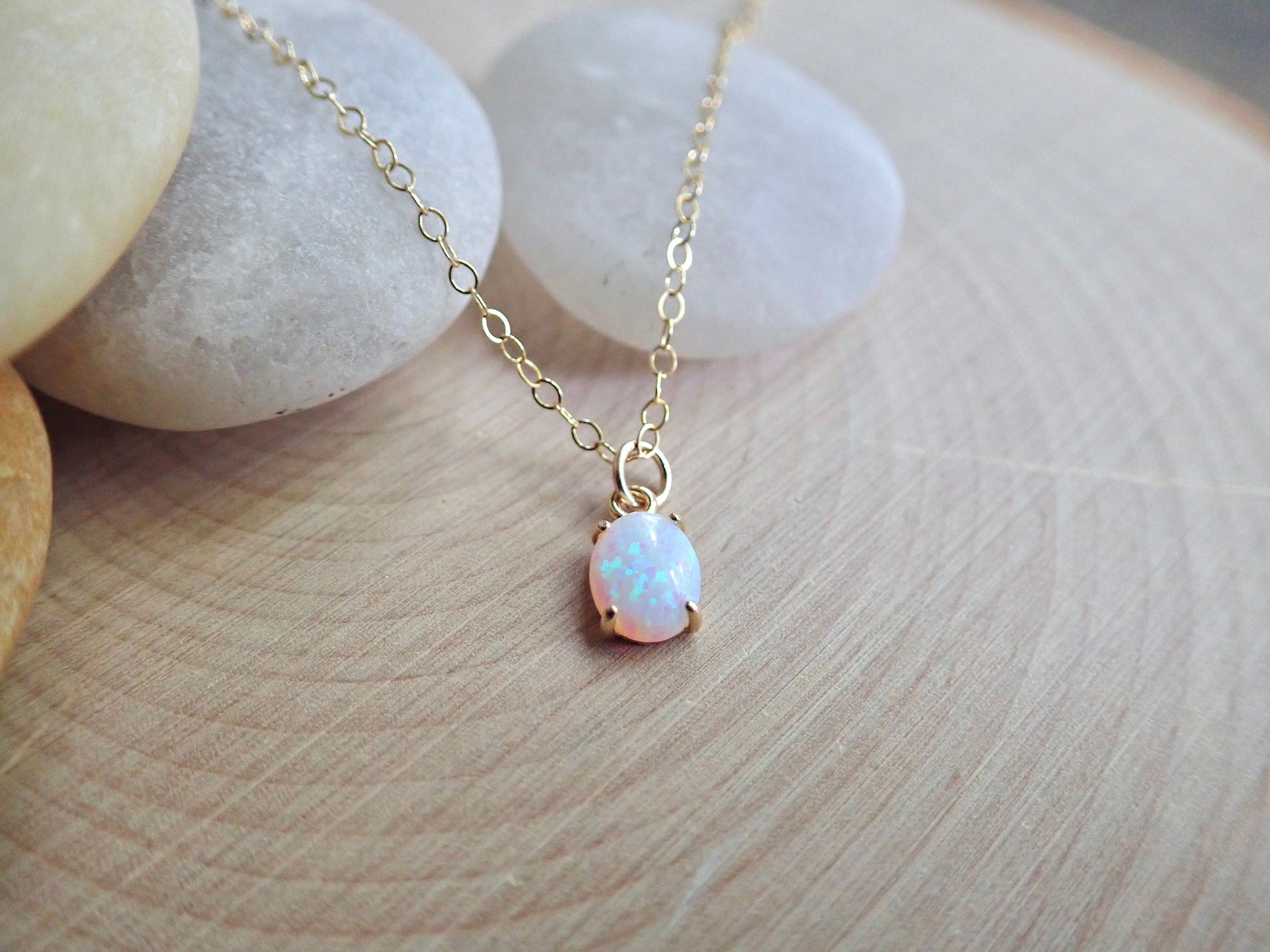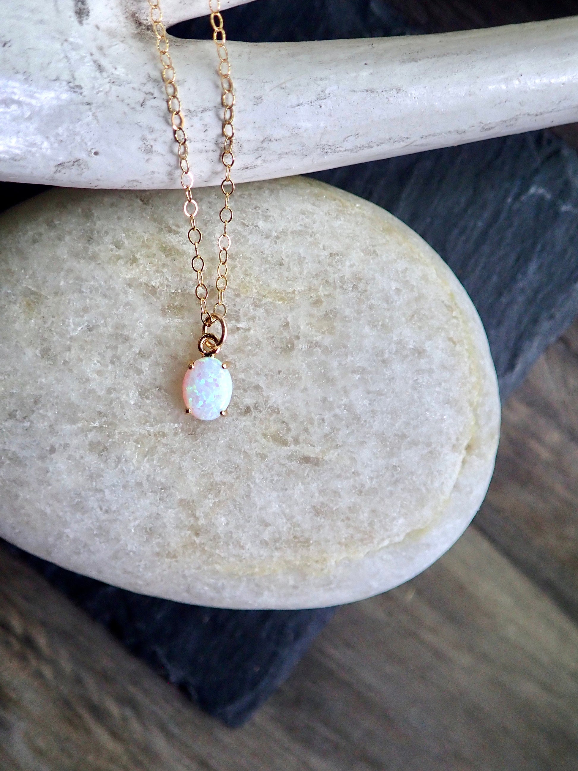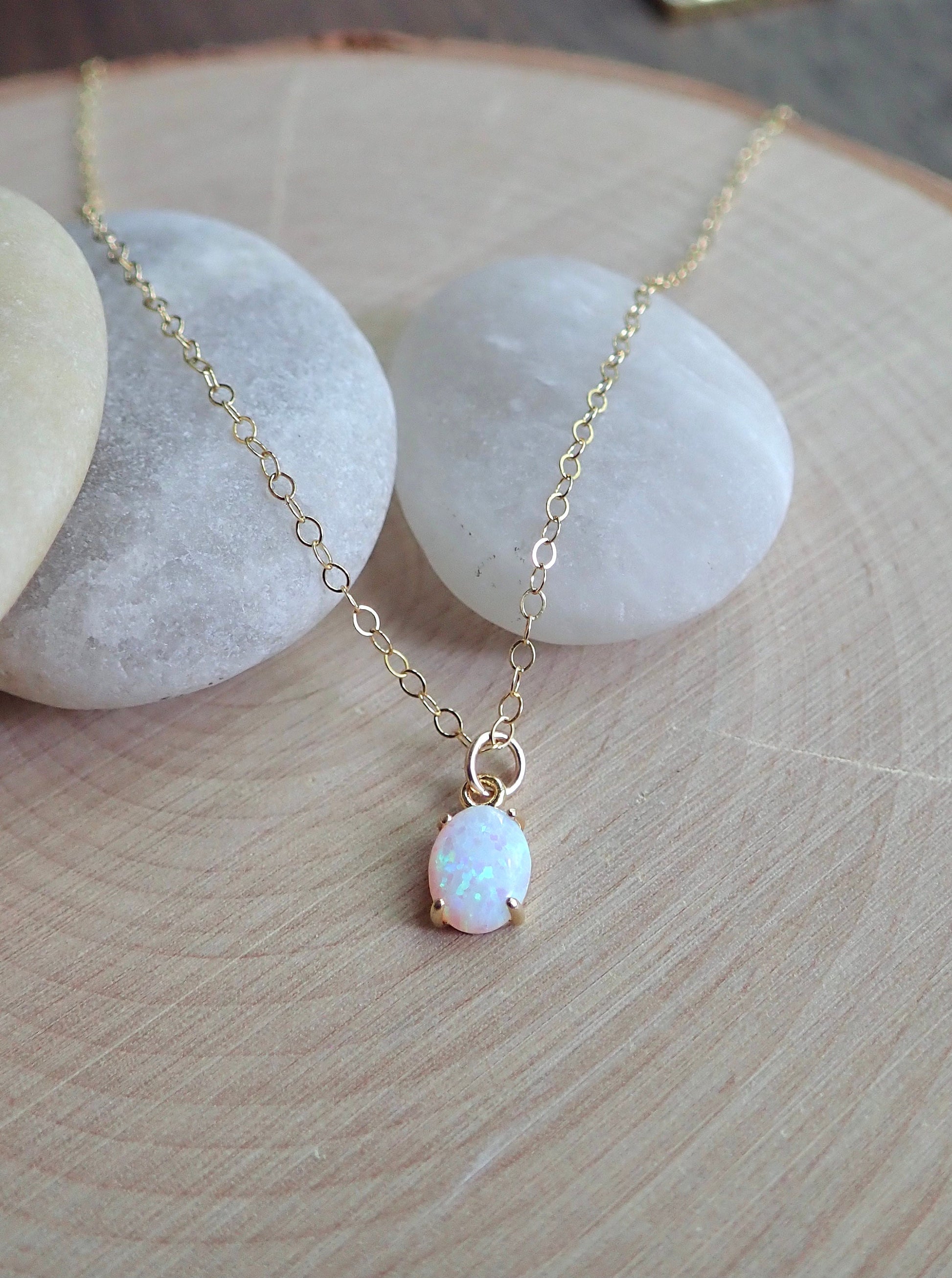 So simple and so sweet. Perfect for layering or for a wearing alone, beautiful genuine opals are set in a 14k gold plated prong setting. Each pendant is made from genuine opals and are set by hand so no two are exactly alike. Soulful, earthy, and oh so cool.