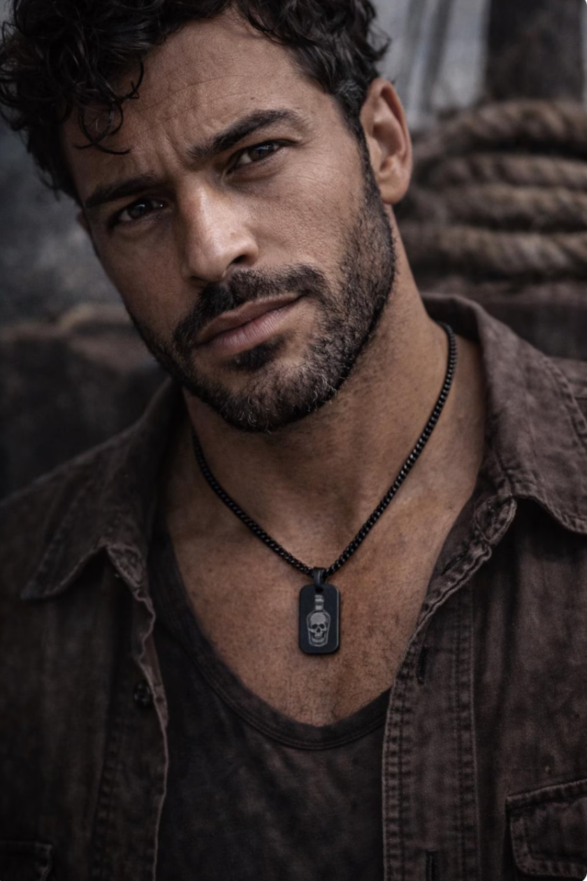 Set sail with a bold and mysterious nod to the high seas! This black stainless steel dog tag necklace features a laser-engraved image of a skull inside a rum bottle—a symbol of untamed adventures, clandestine treasures, and the pirate’s life. Perfect for anyone who feels the call of the ocean and the thrill of rebellion.