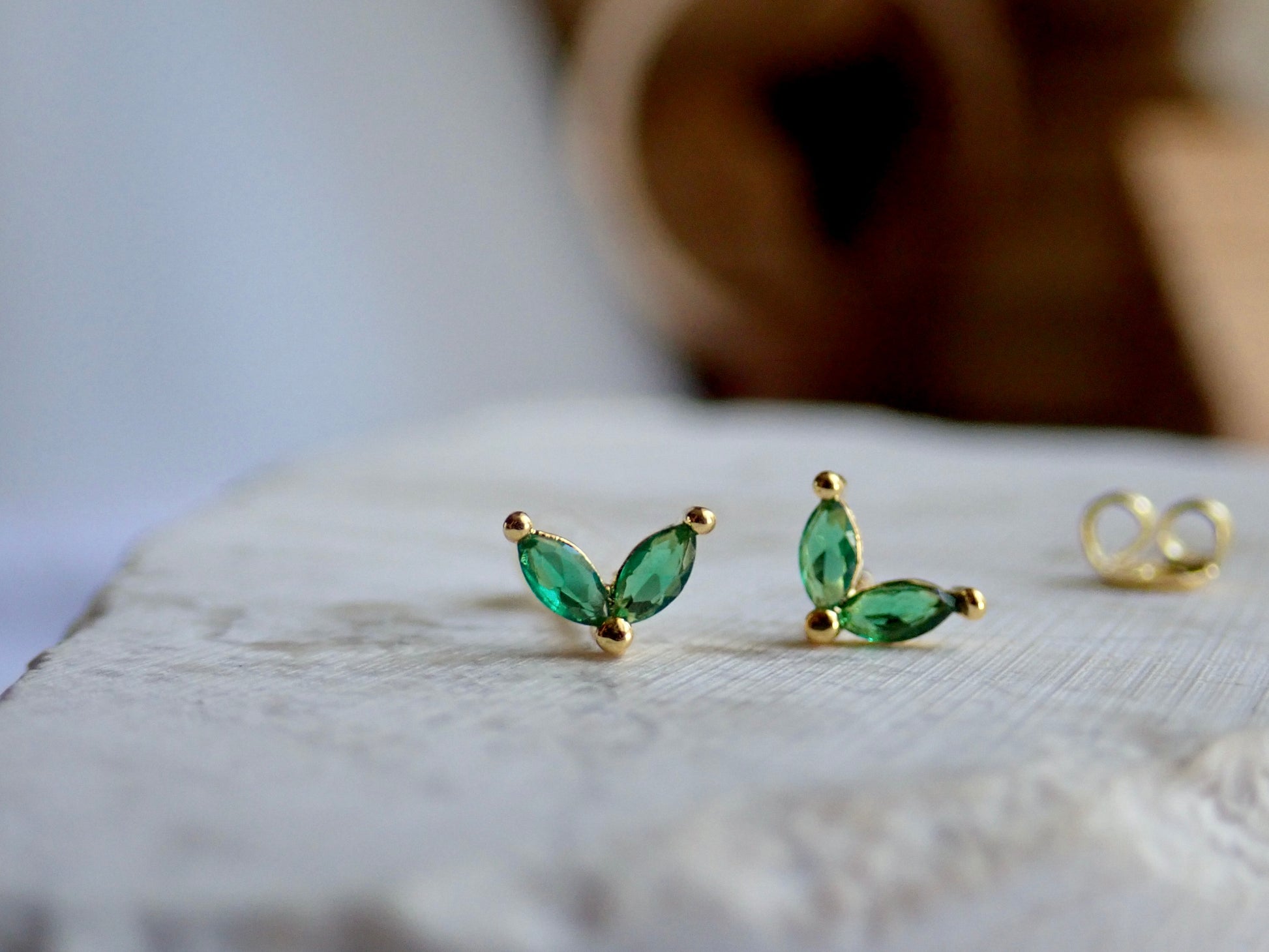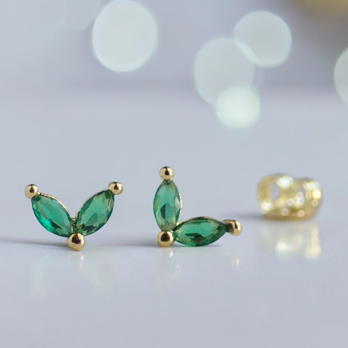 These gold vermeil tiny emerald green CZ stud earrings are perfect for everyday wear and ideal for with sensitive ears. They're crafted from 925 Sterling Silver and plated with a thick layer of 14k gold making them both beautiful and hypoallergenic. Very dainty, perfect for second piercings or for those who love minimalist, understated style. SOLD AS A PAIR