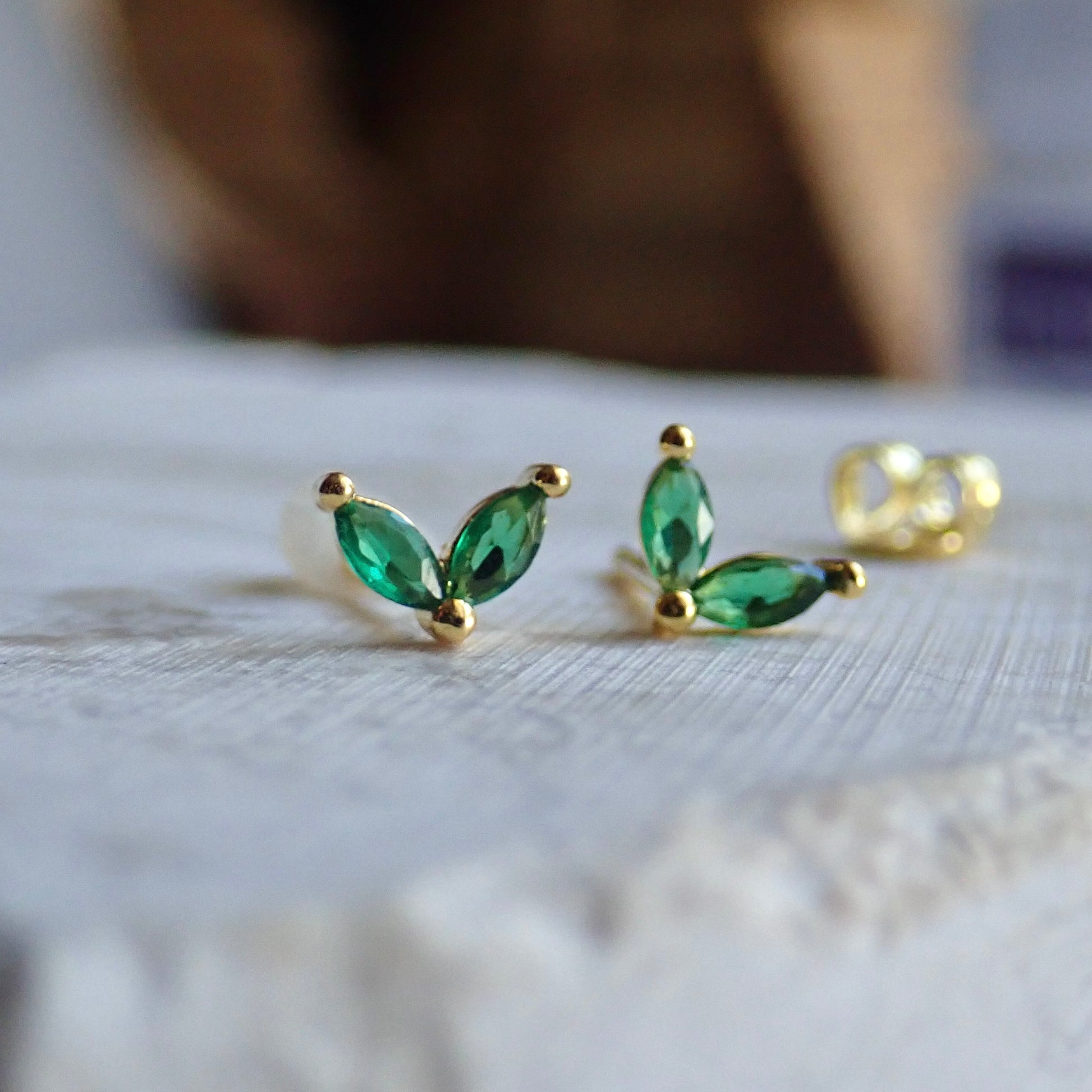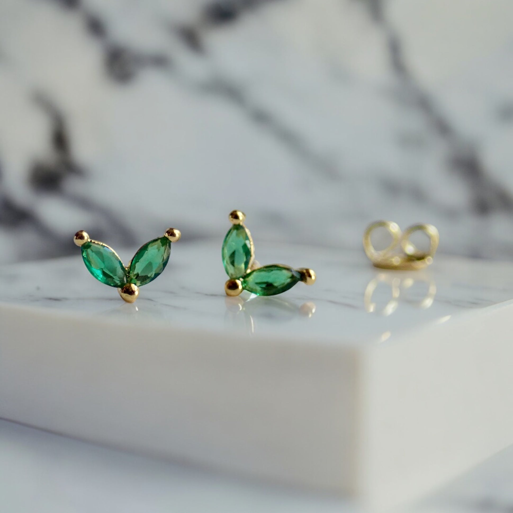 Tiny Emerald Marquise CZ Stud Earrings | 14k Gold Vermeil | Hypo-Allergenic | Cubic Zirconia