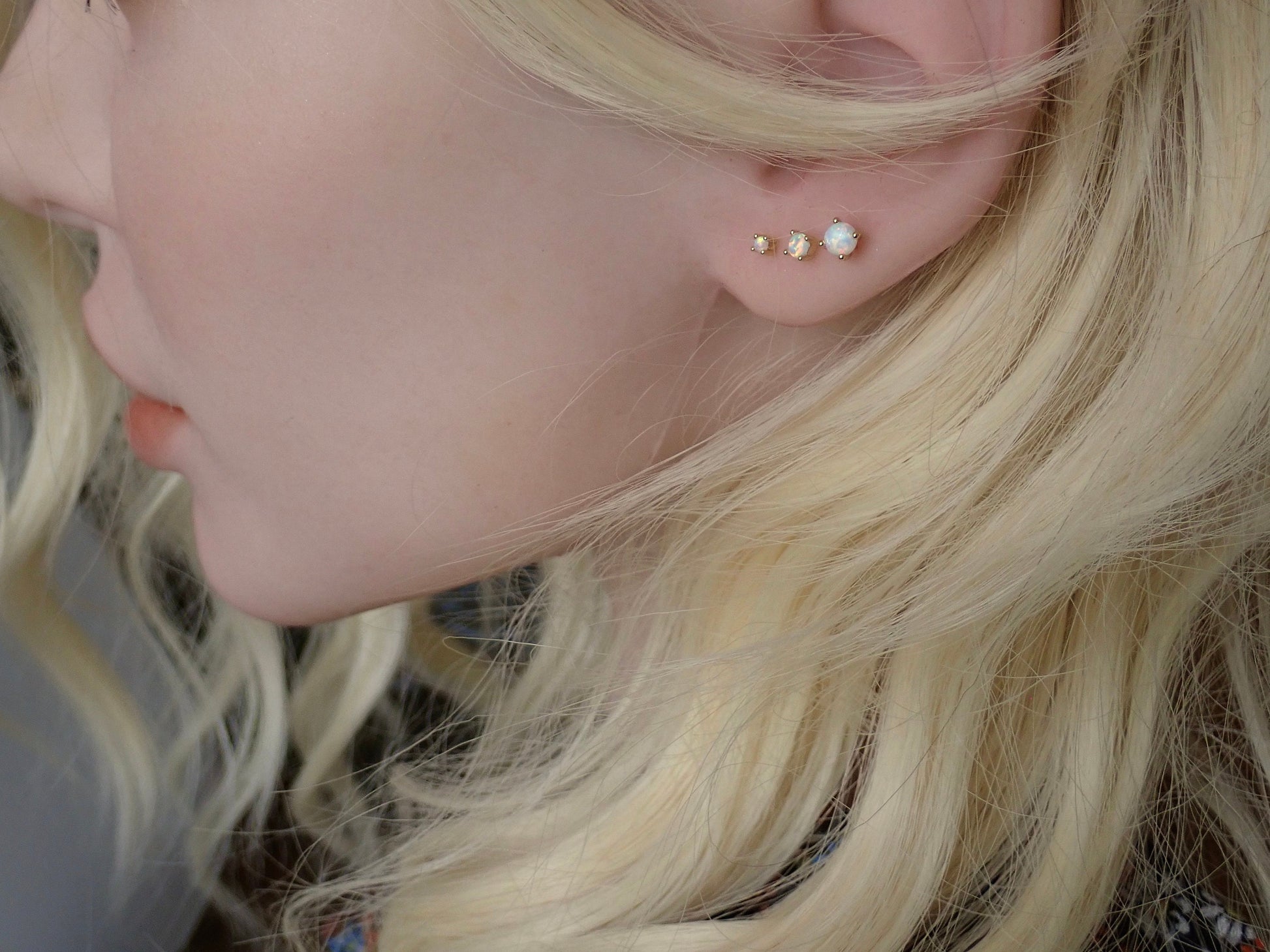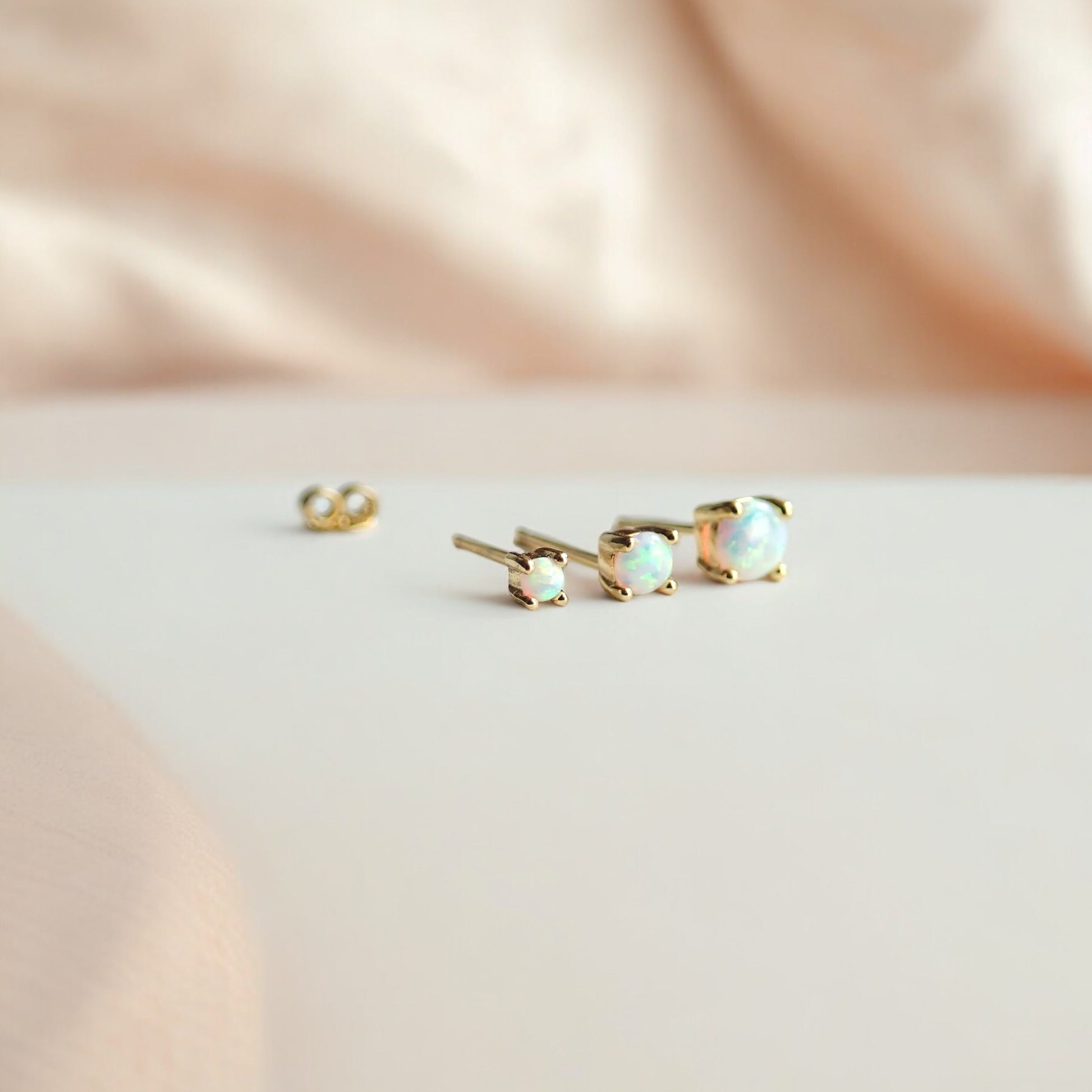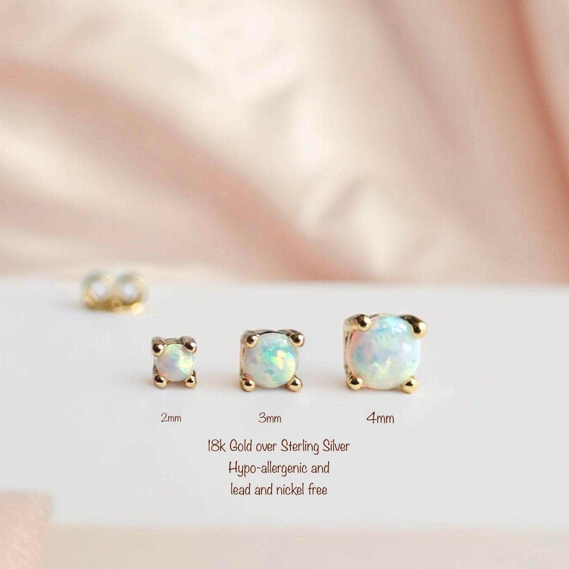 Tiny Genuine Opal Stud Earrings – Prong Set in 18k Gold Vermeil or Sterling Silver, Available in 2mm–4mm Sizes