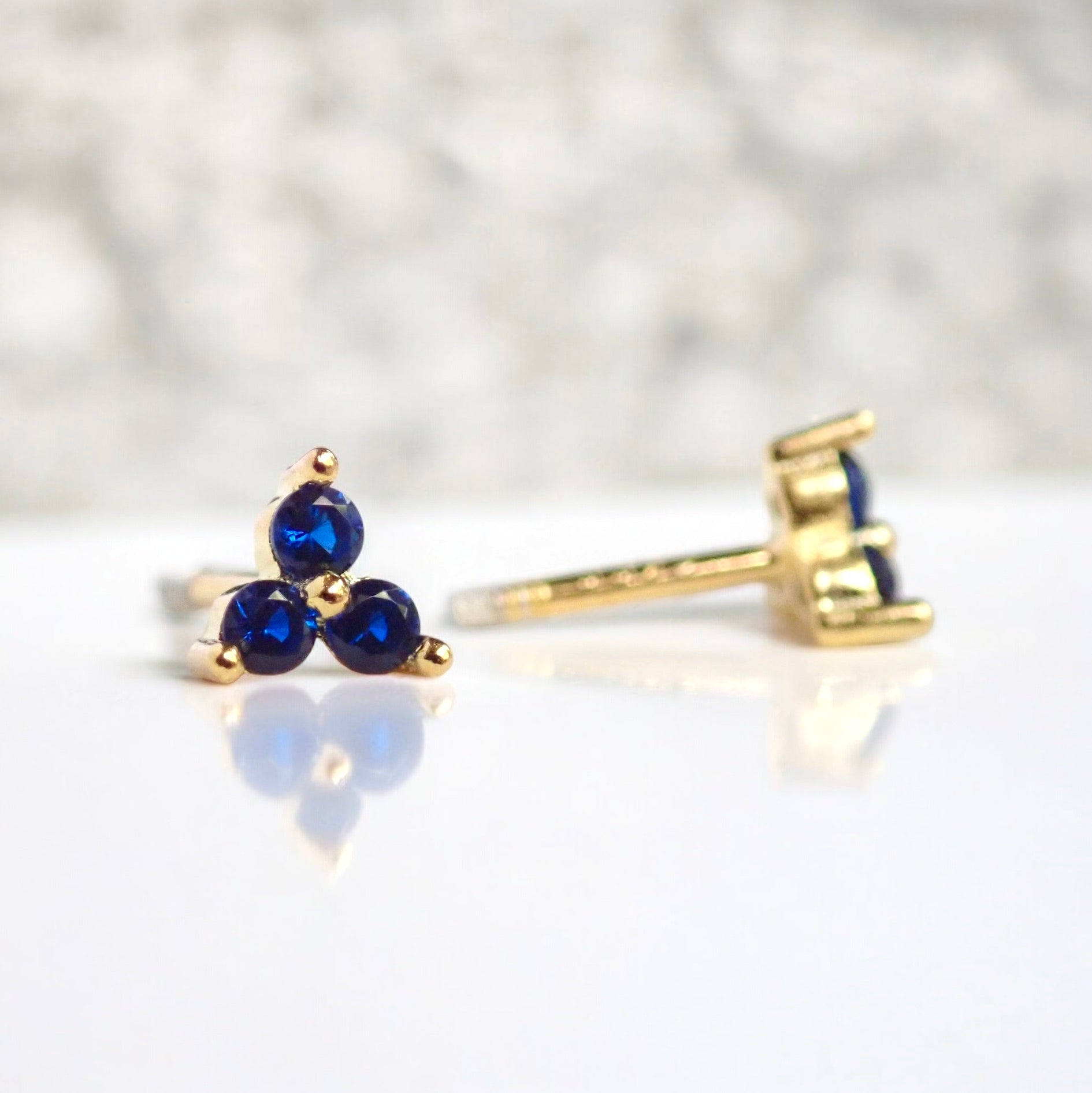 Tiny Trefoil Sapphire Stud Earrings