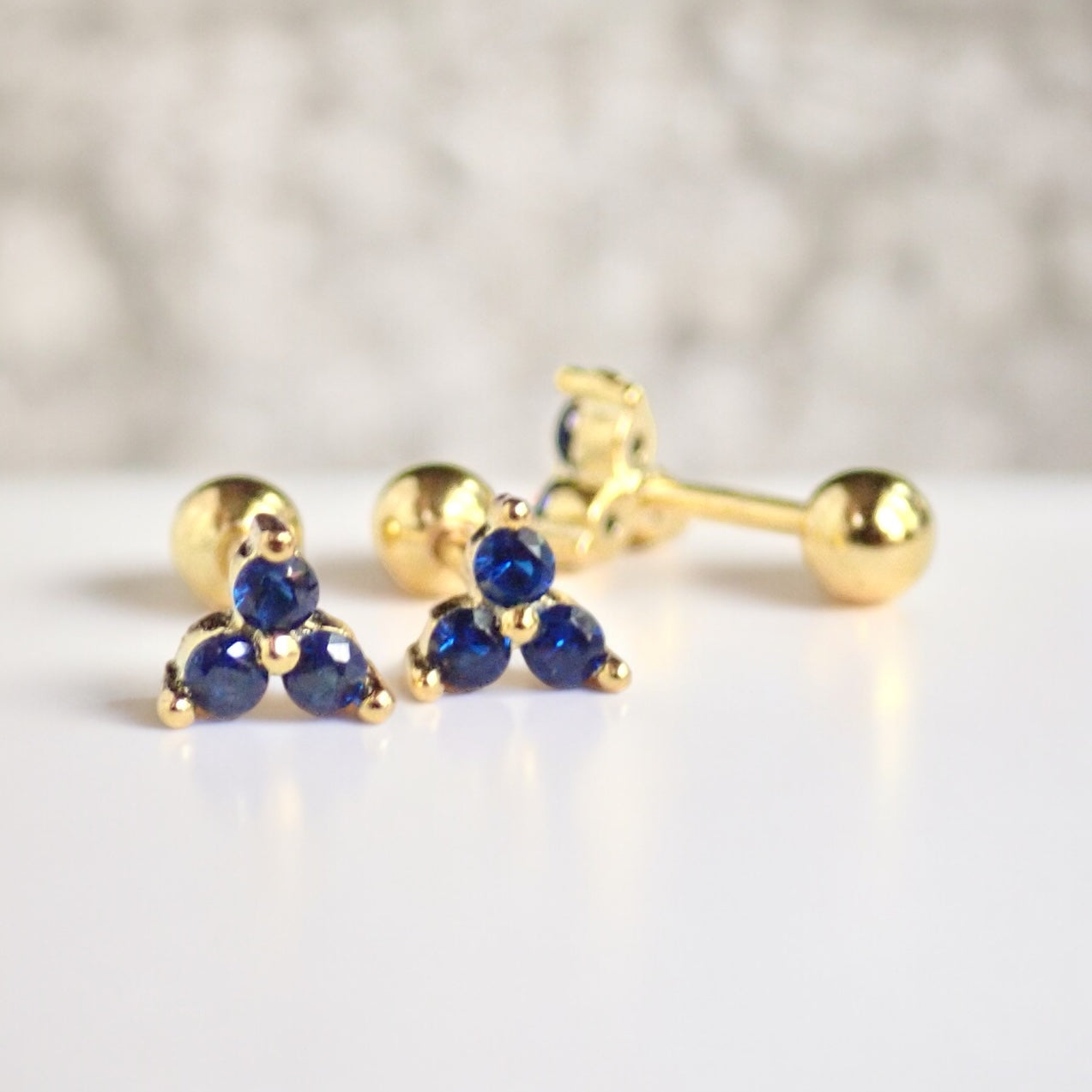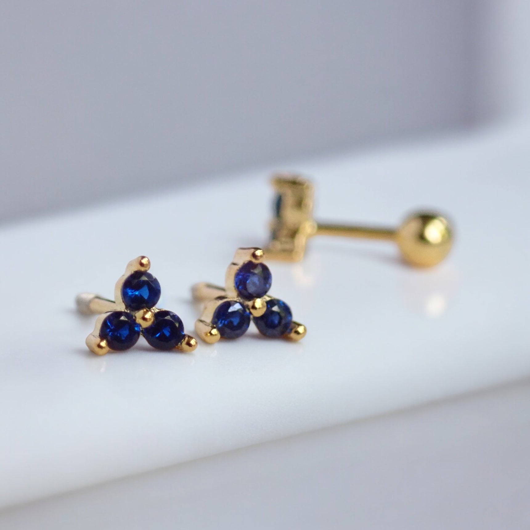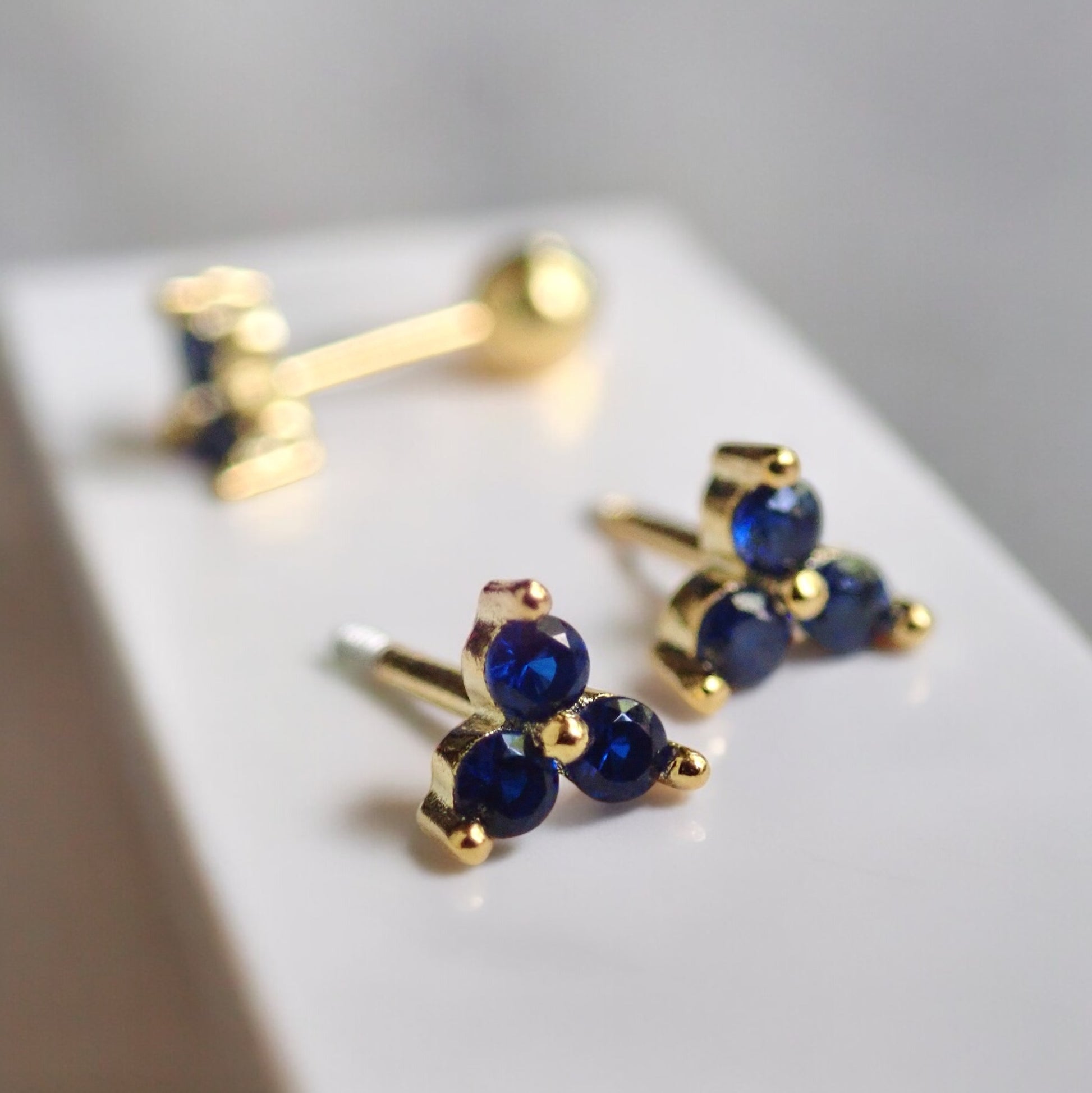 These gold vermeil tiny sapphire stud earrings are perfect for everyday wear and ideal for people with sensitive ears. They're crafted from 925 Sterling Silver and plated with a thick layer of 14k gold making them both beautiful and hypoallergenic. These are sold as individual piercing earrings but pairs are available if you'd like to wear them as traditional everyday earrings. Available in other styles-see photos.