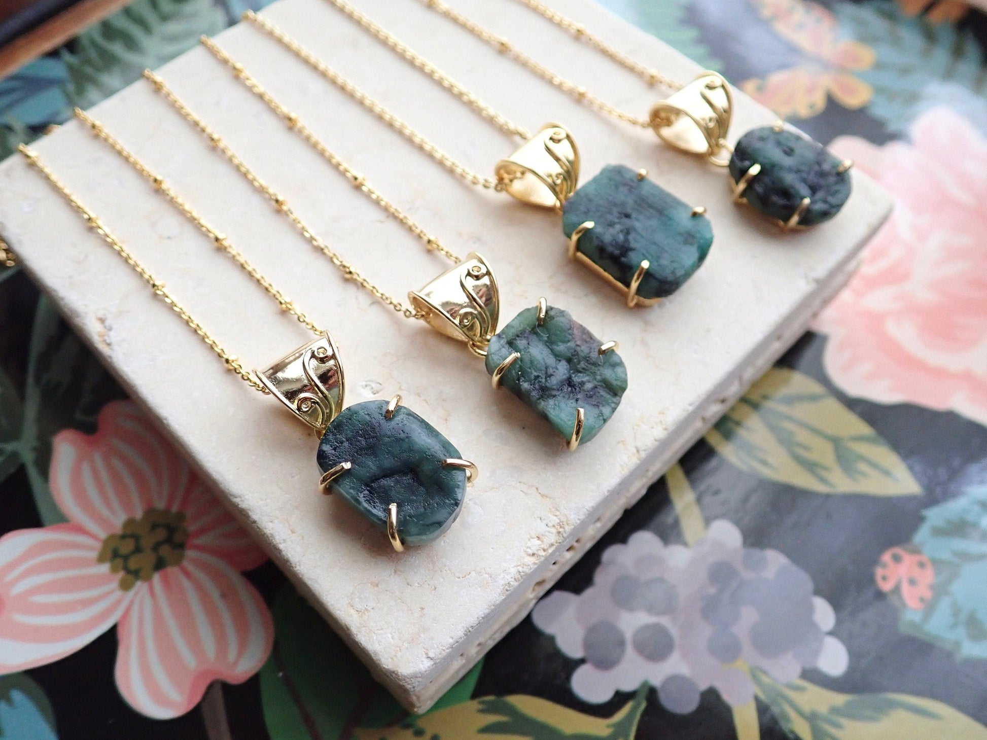 ★Stone-Genuine Raw Emeralds prong-set in 24k gold plated setting. (Emeralds have been dyed to enhance color)
