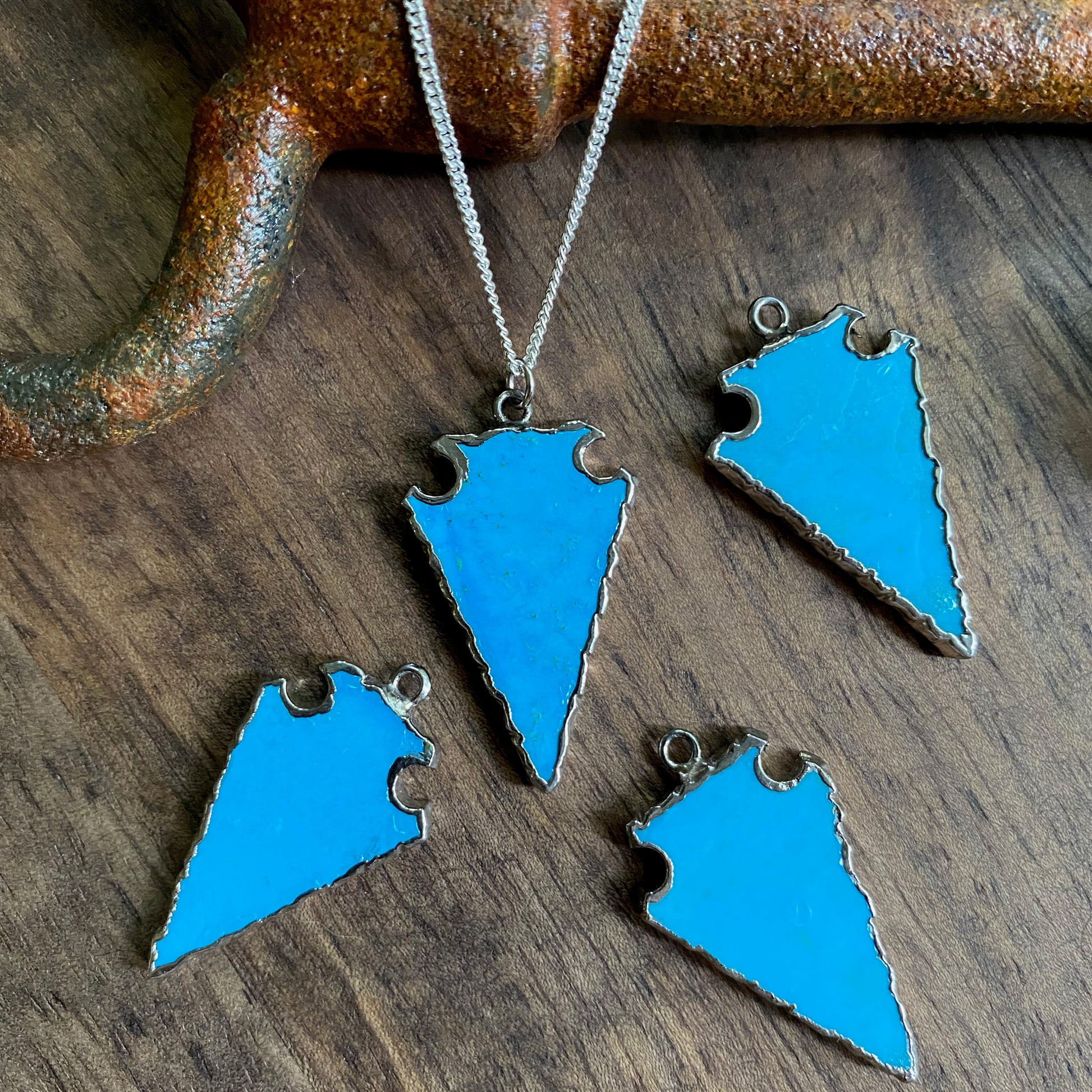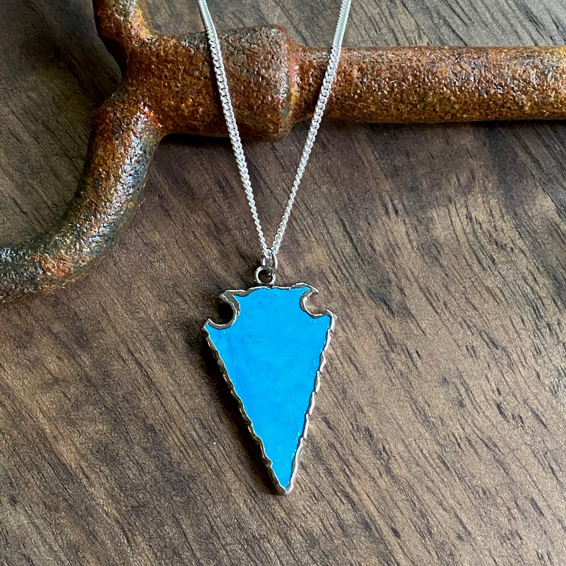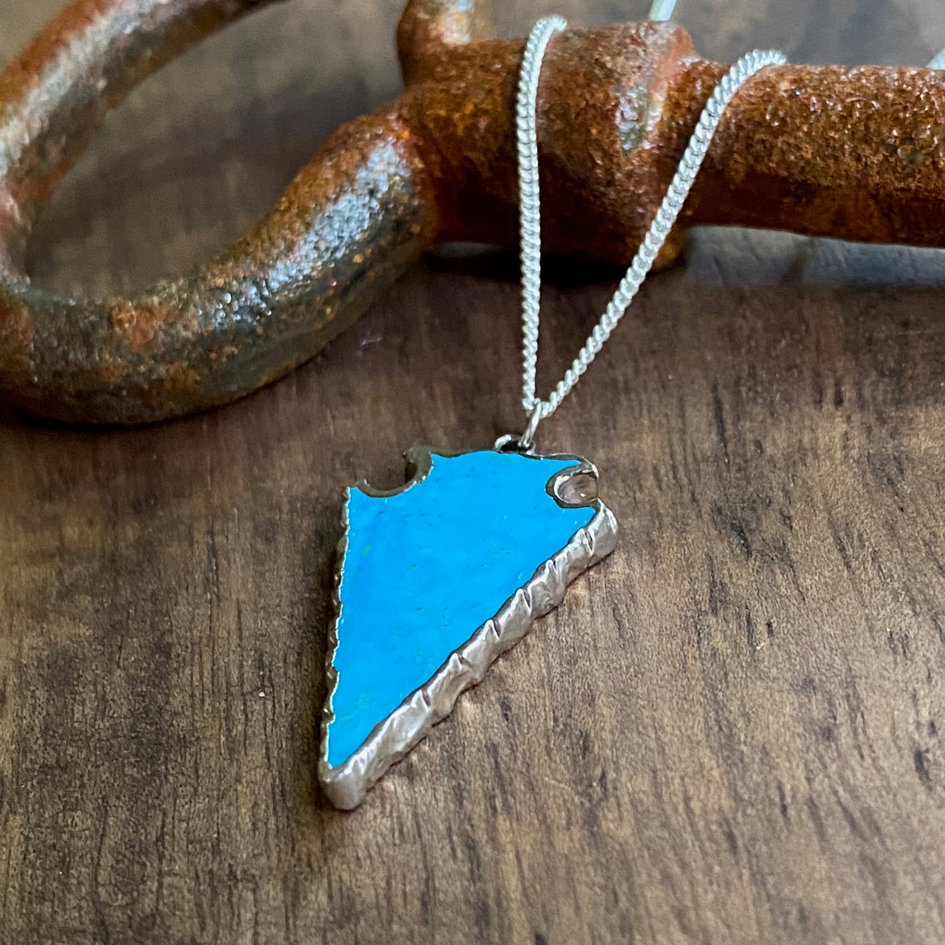 Turquoise Necklace Silver, Arrowhead Necklace,Stone Arrowhead Silver, Blue Stone Necklace,Raw Stone Necklace, Turquoise Pendant Necklace
