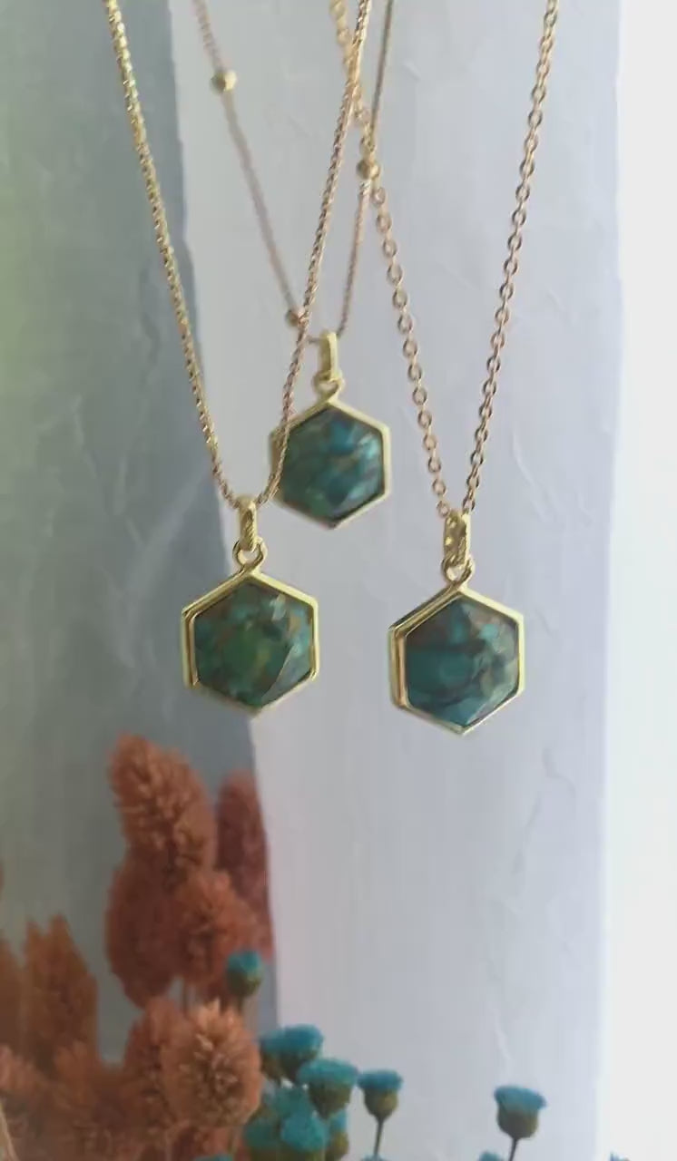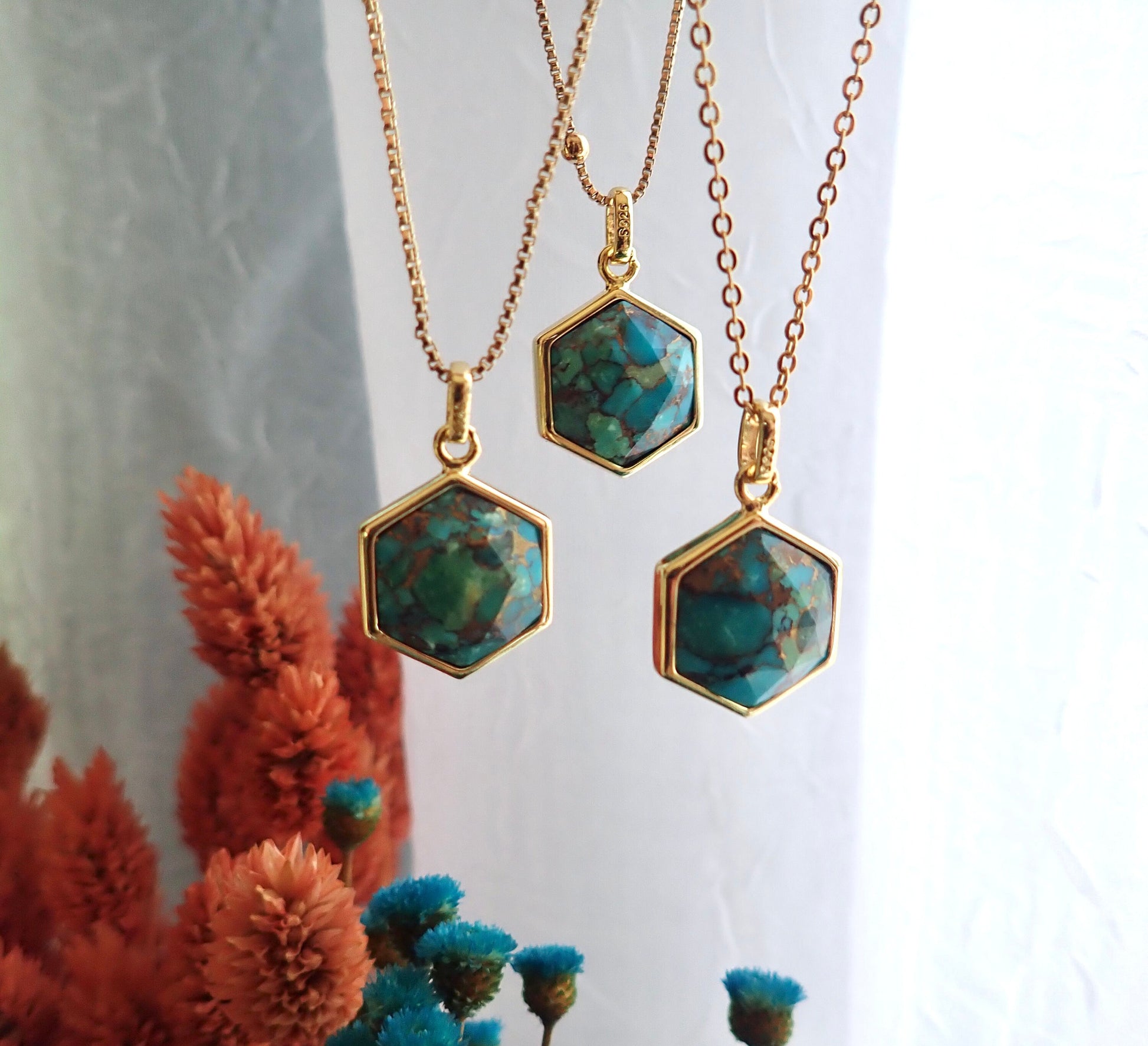 Turquoise Pendant Necklace -14k Gold Vermeil Turquoise Necklace, Hexagon Gemstone Necklace,December Birthstone
