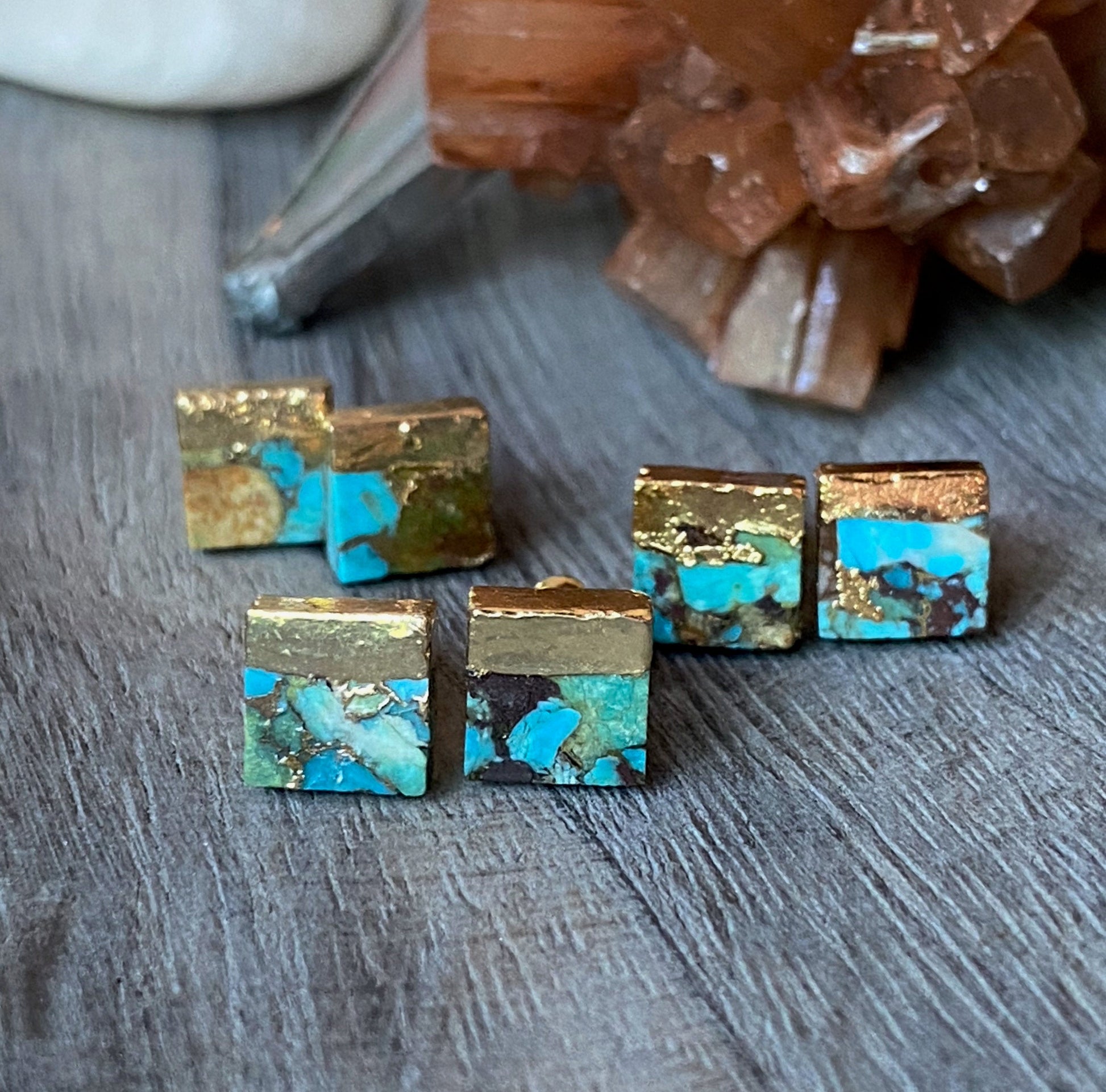 Everyday earrings that pack a punch. Who doesn't love turquoise? With these dainty little beauties you can wear that unmistakable pop of color every day of the week. Super hot right now, turquoise goes with so many looks...beachy, tribal, boho, hippie, whatever style you call your own these will fit right in. Great for every day wear..super light and carefree. The turquoise is electroplated in 18k gold.