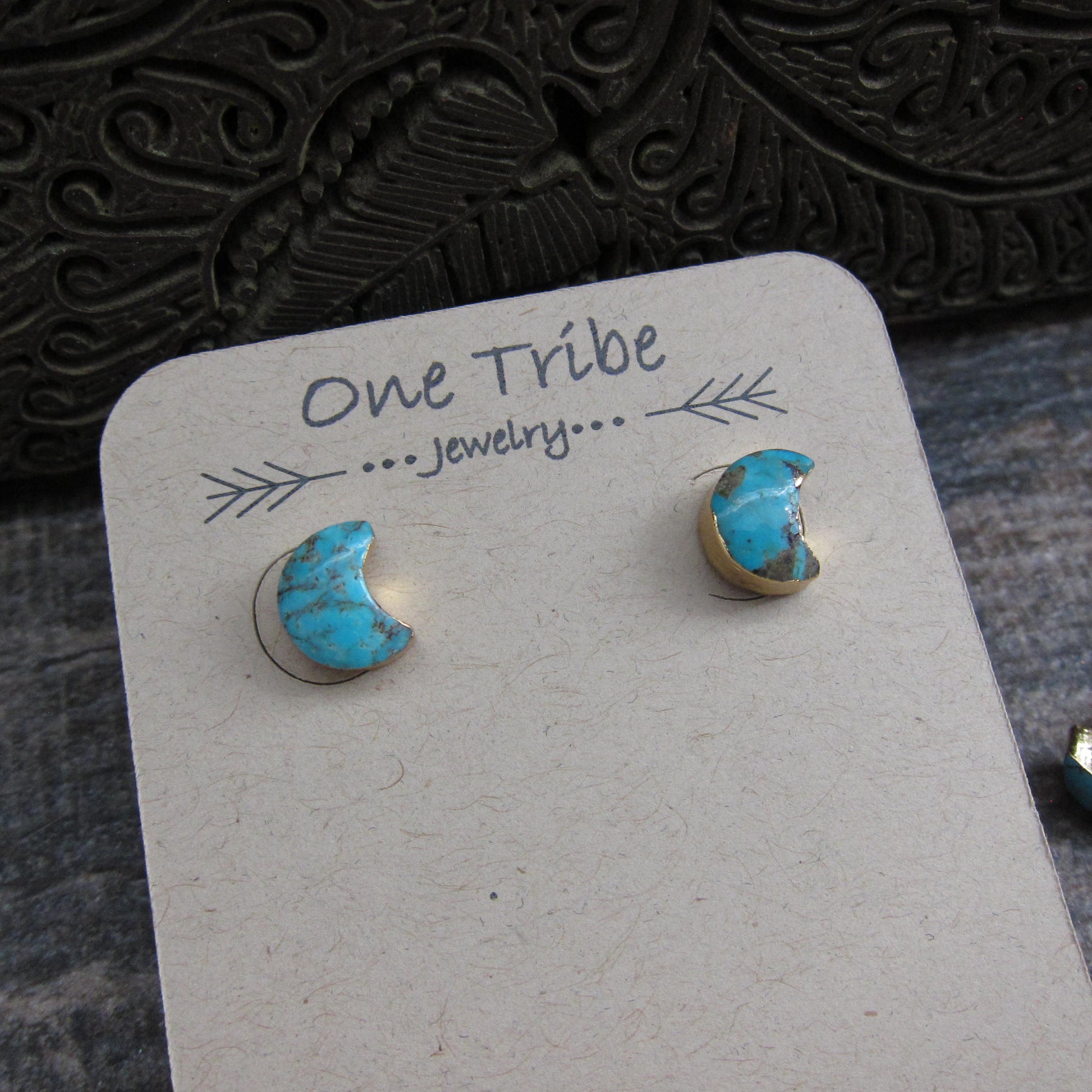 Crescent Moon Turquoise Stud Earrings- December Birthstone Gift for Her