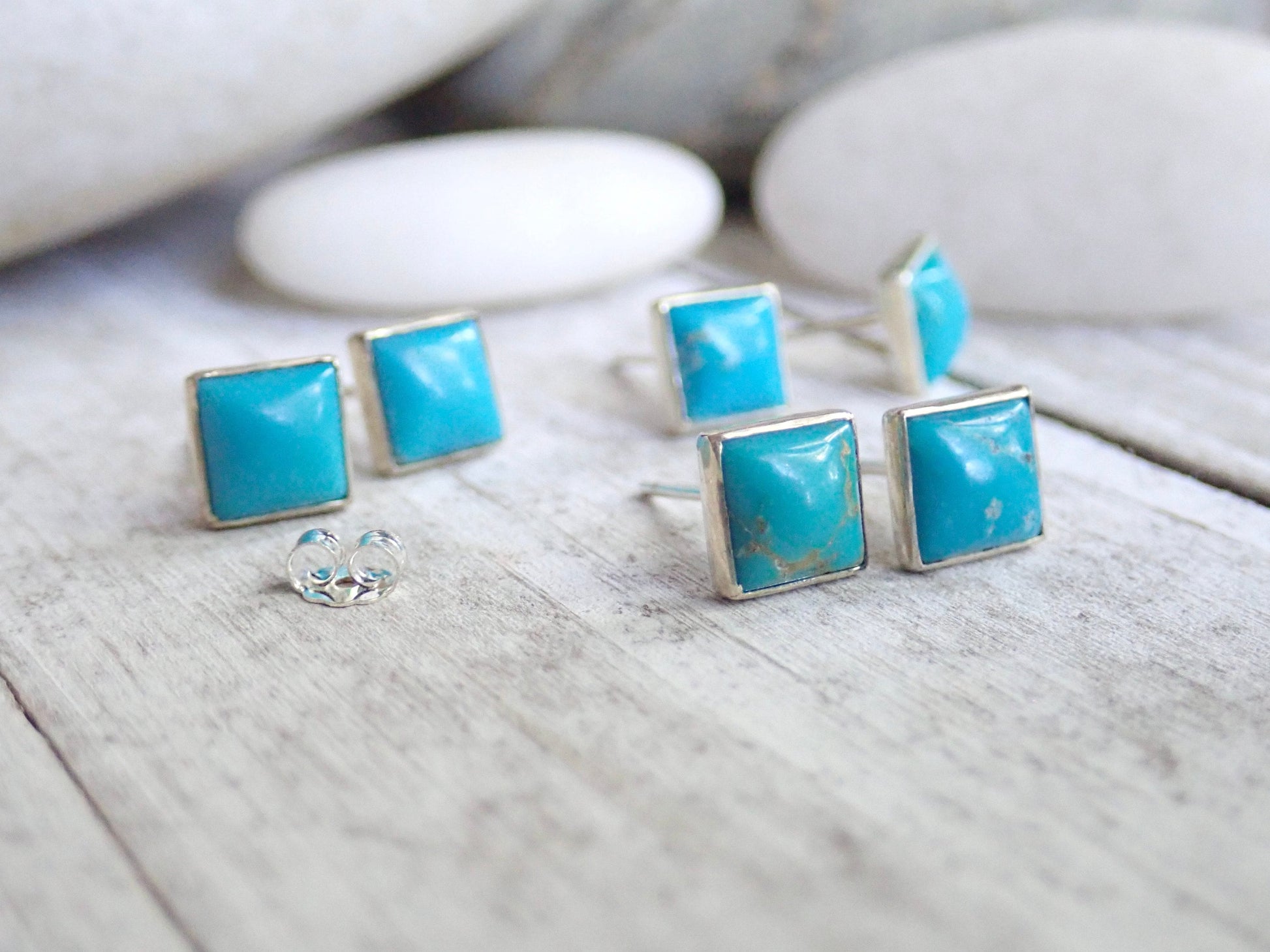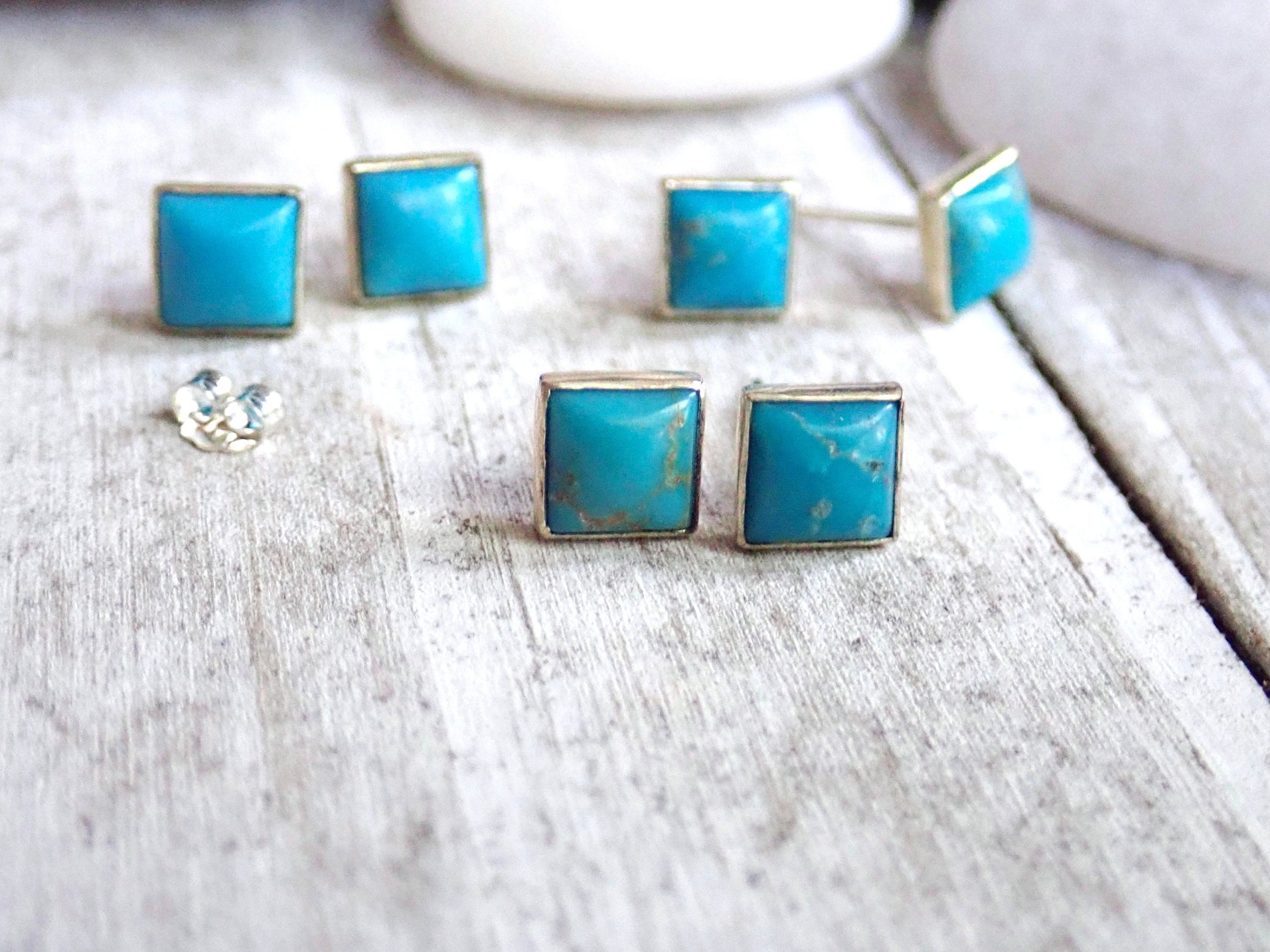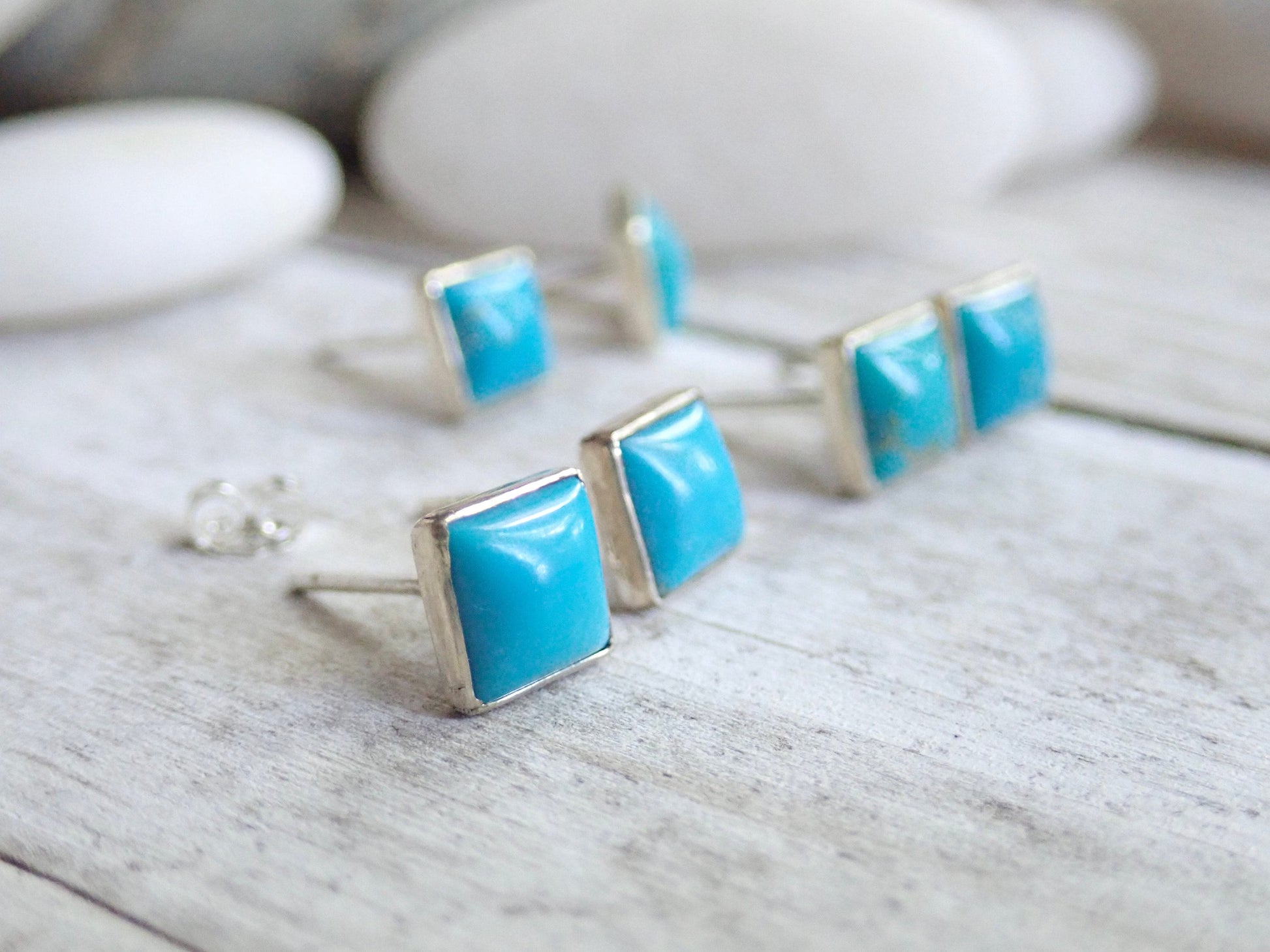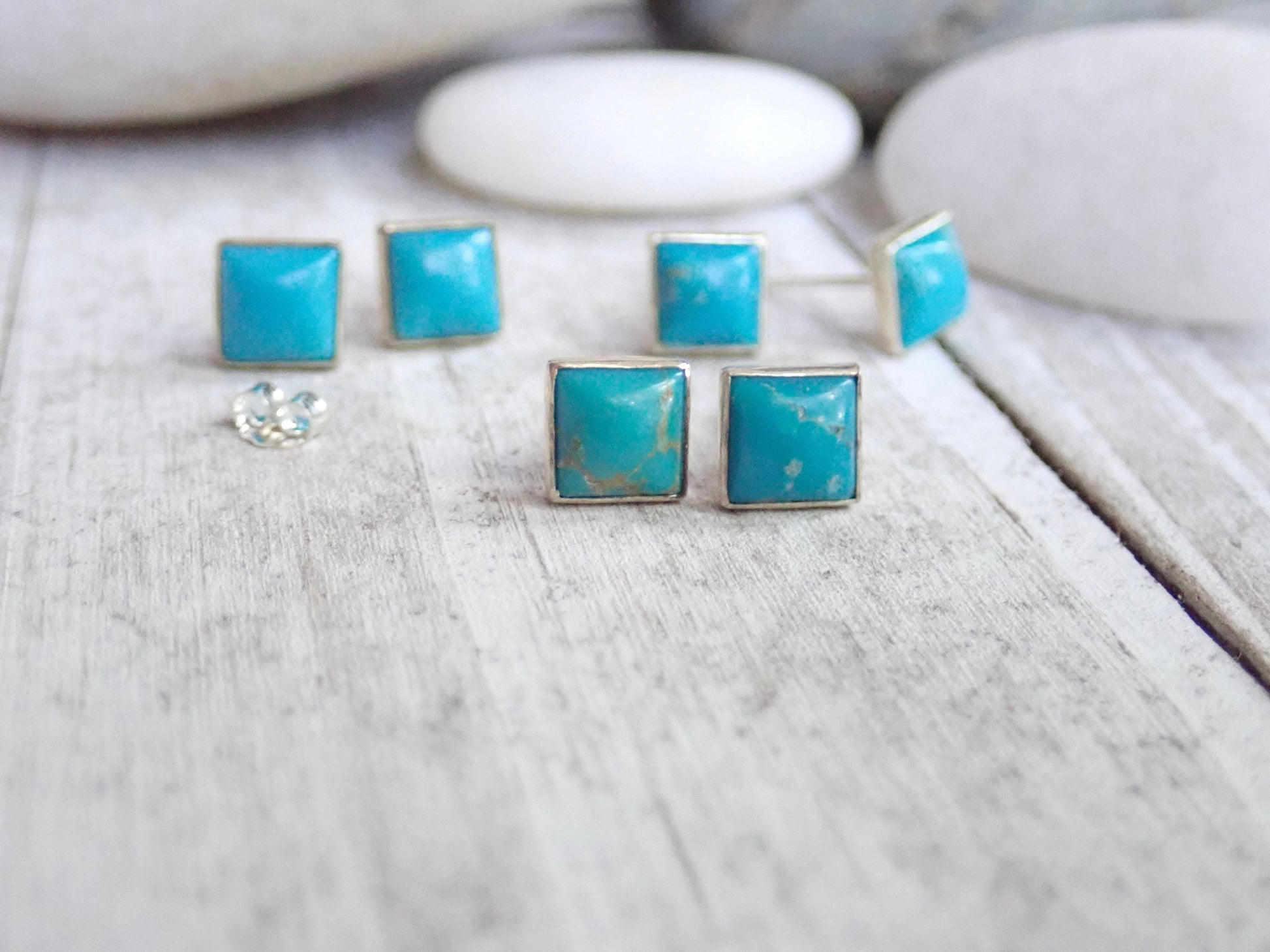 Turquoise Stud Earrings Sterling Silver Post, Turquoise Jewelry, December Birthstone Gift for Her, Hypo-allergenic Silver Gemstone Studs