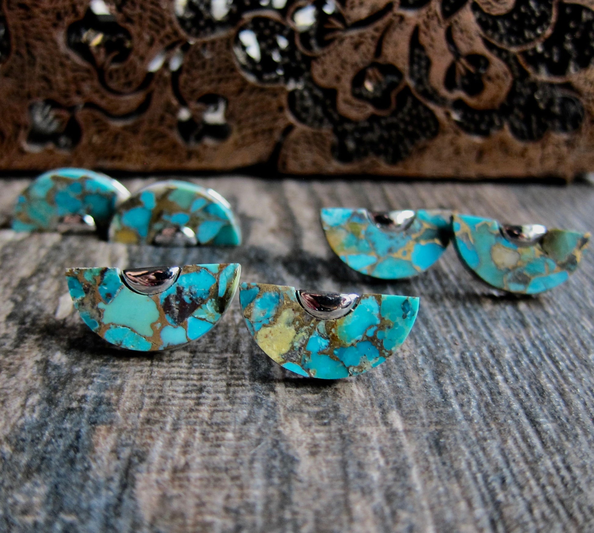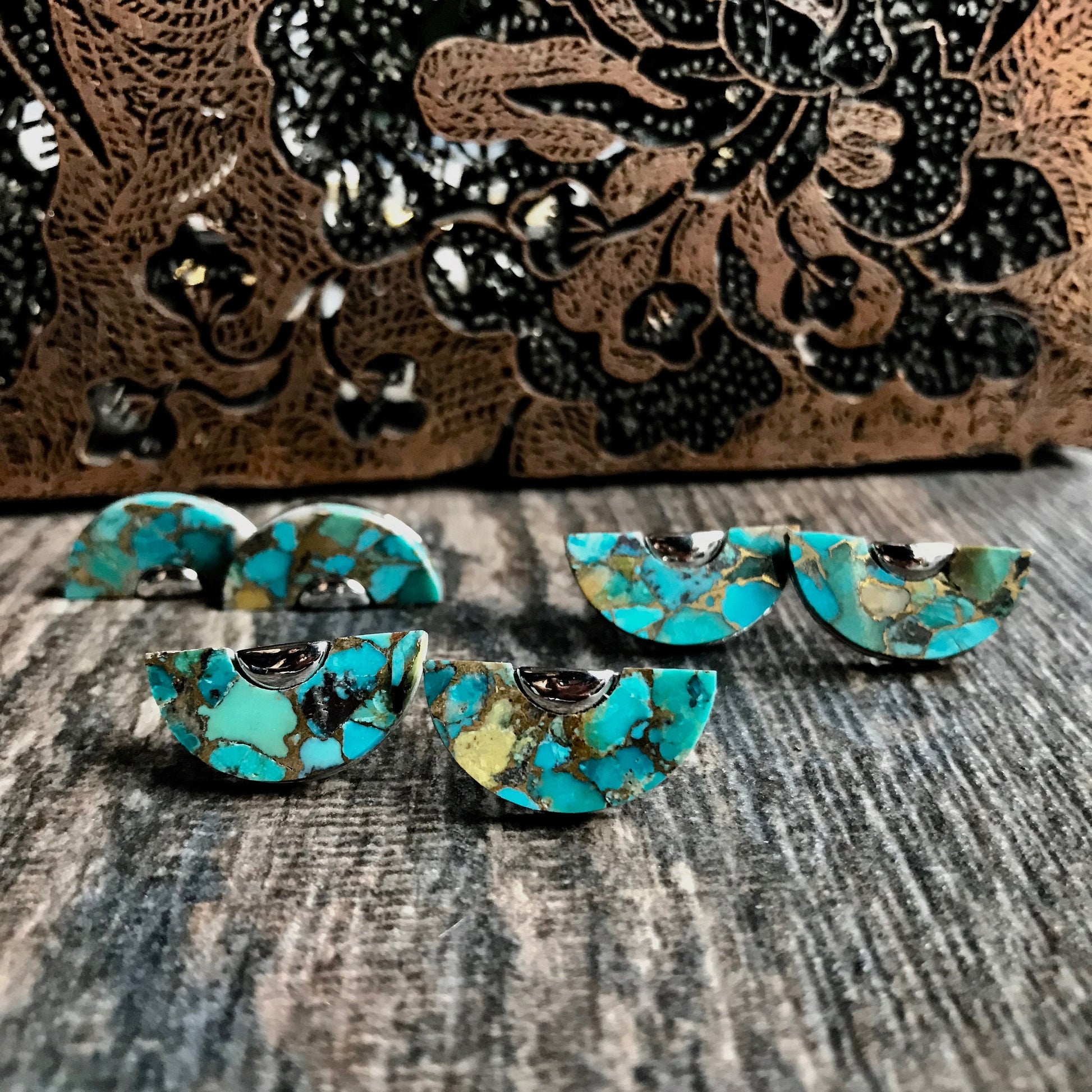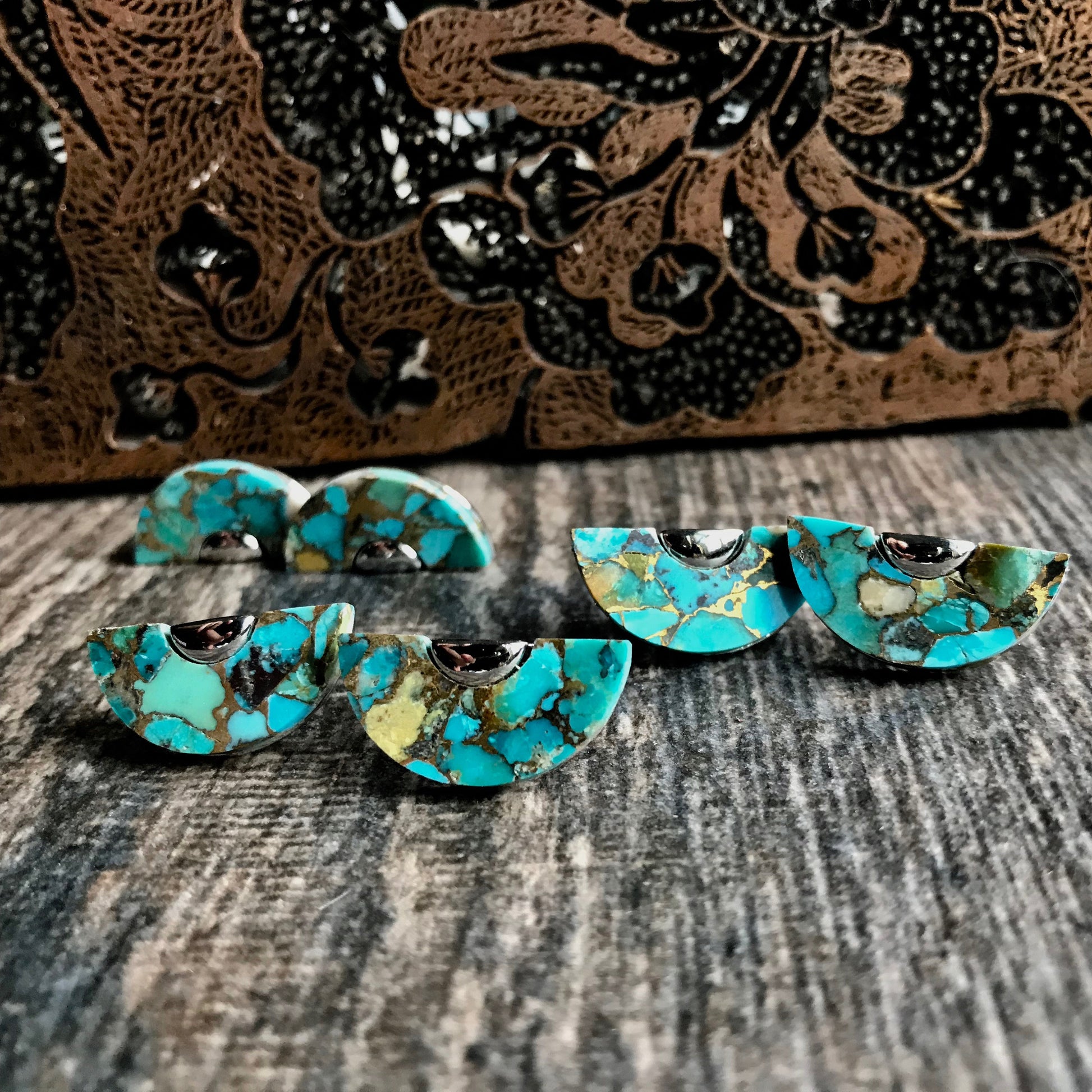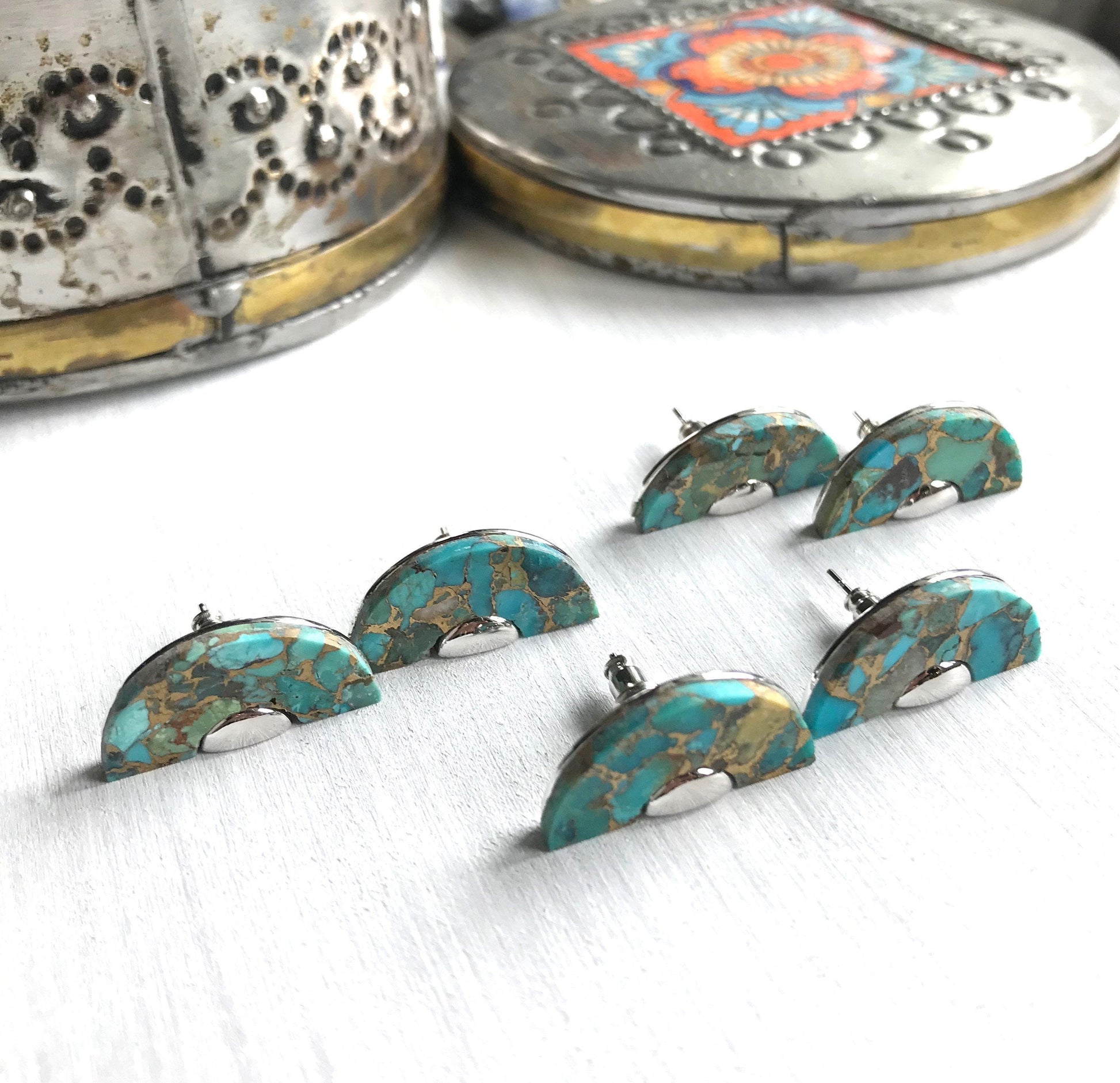 Turquoise Stud Earrings, Turquoise Earrings Silver, Big Stud Earrings, Raw Stone Earrings, Half Moon Earrings, SemiCircle Statement Earrings
