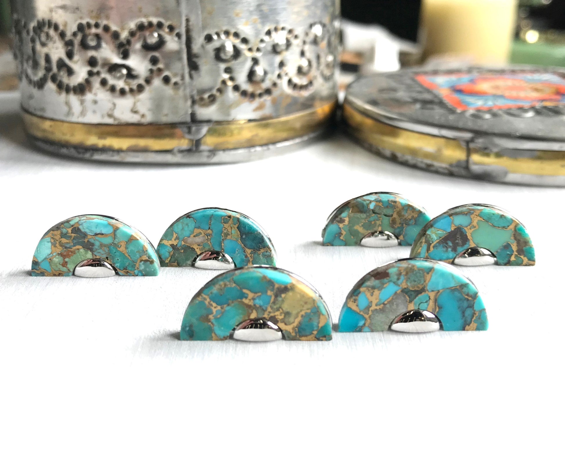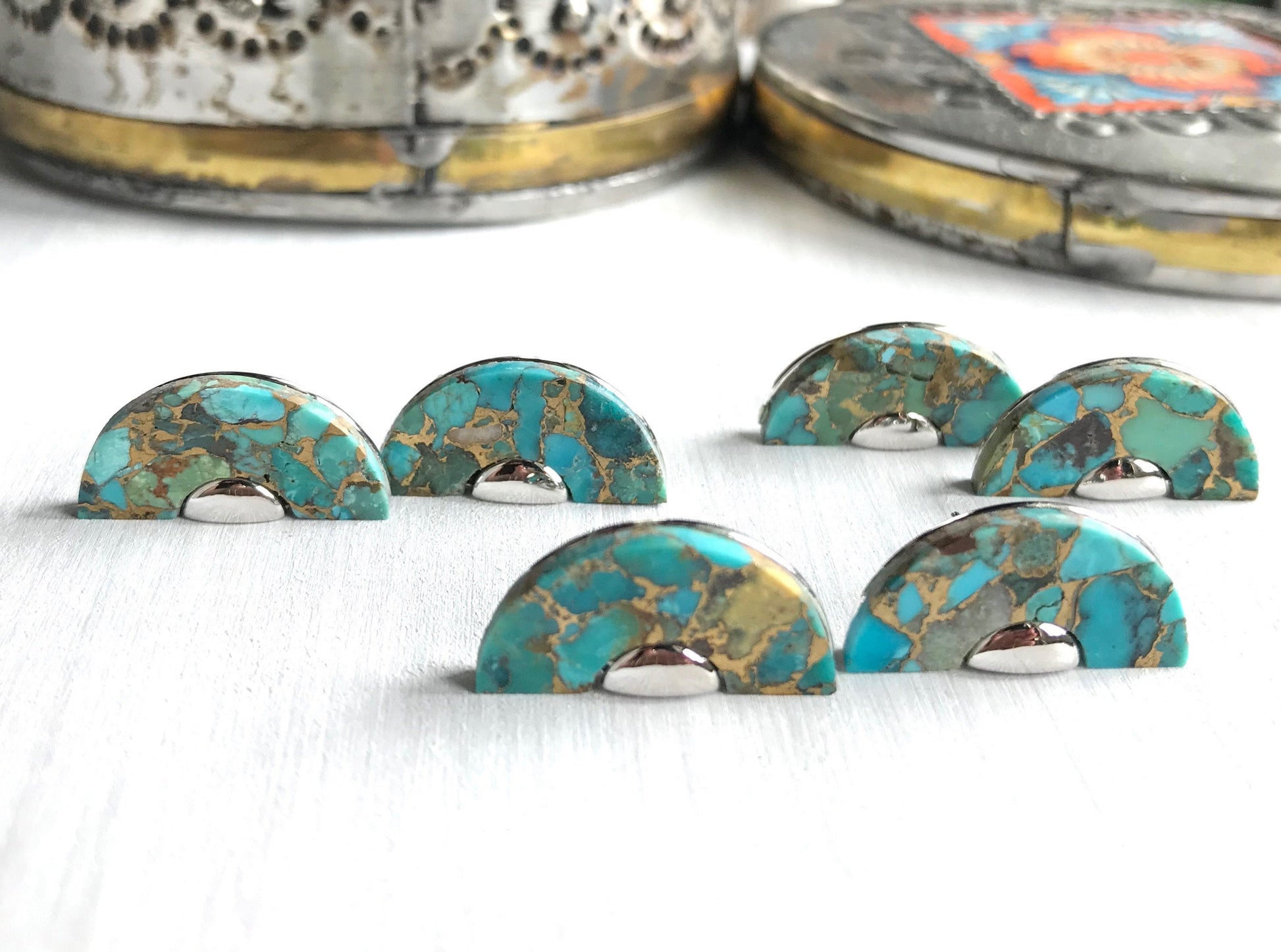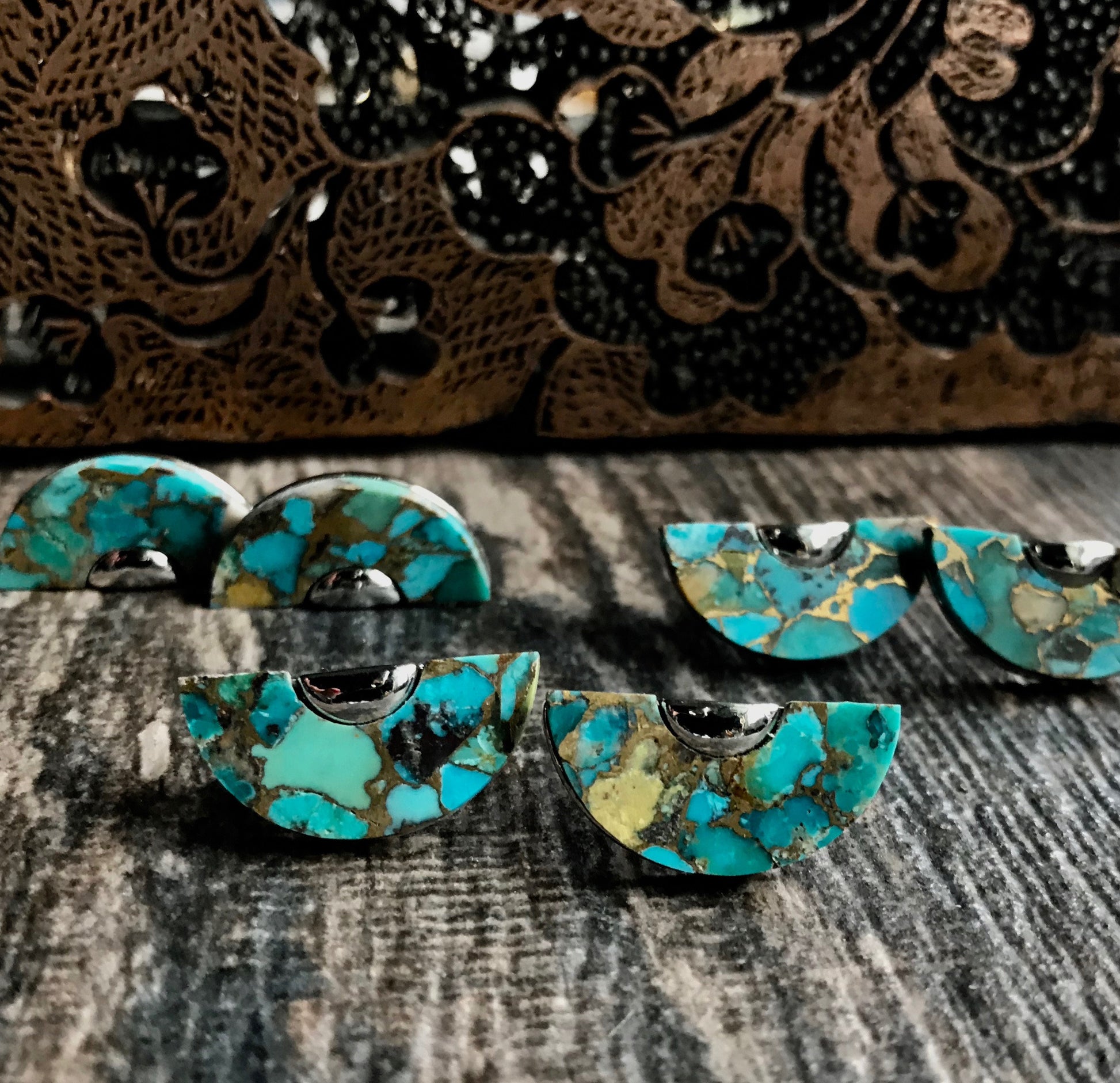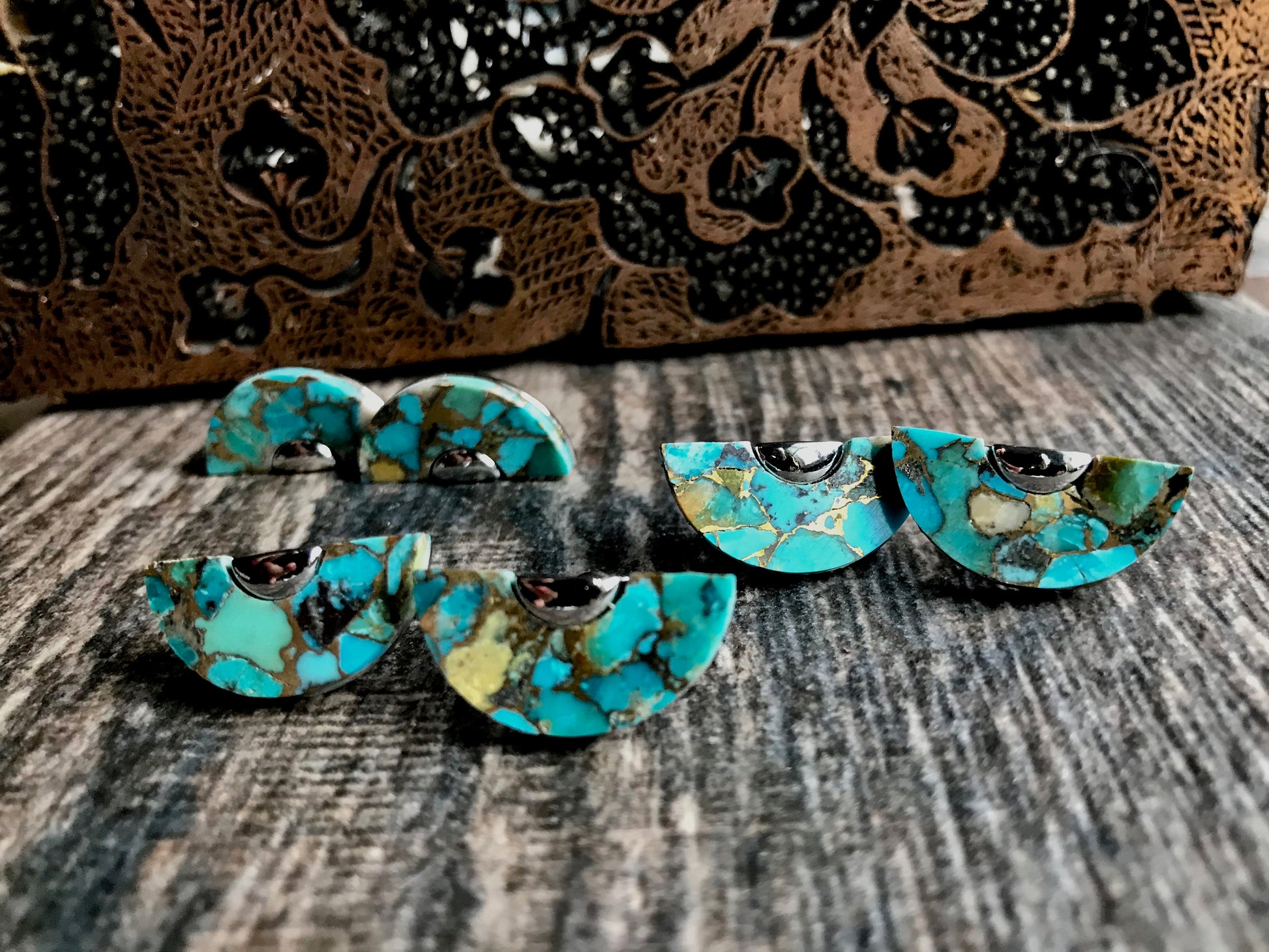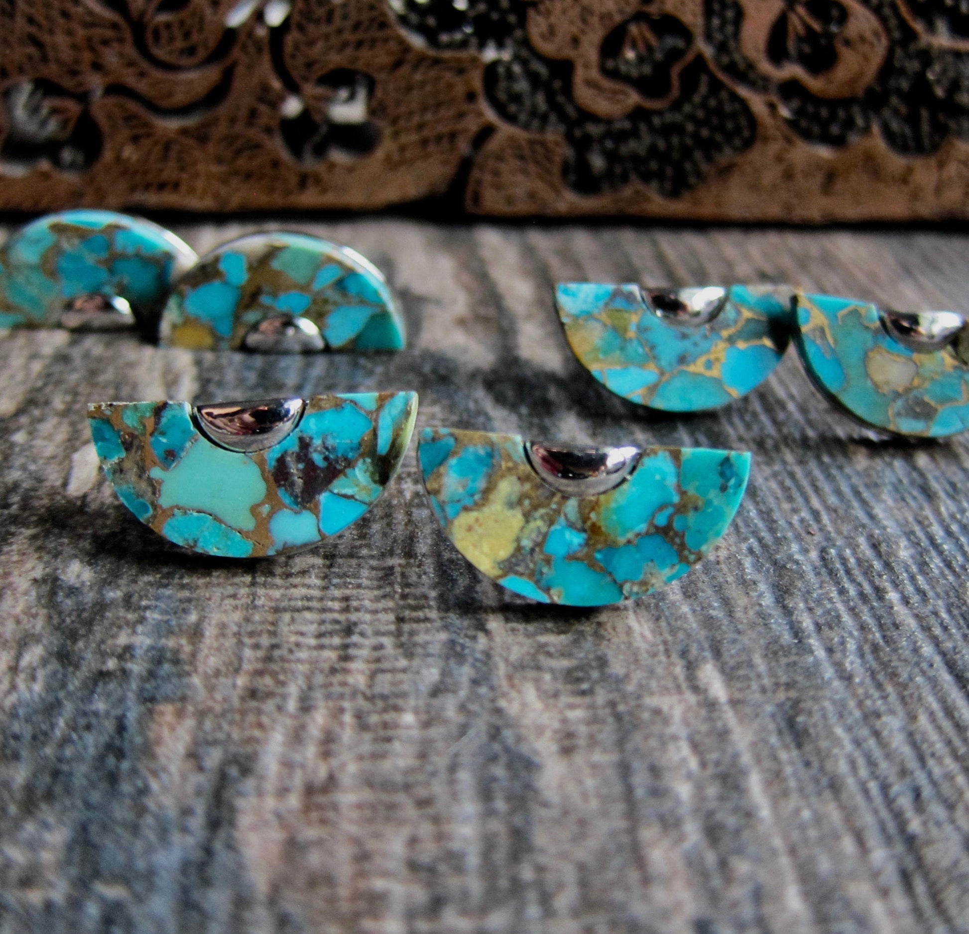 Turquoise Stud Earrings, Turquoise Earrings Silver, Big Stud Earrings, Raw Stone Earrings, Half Moon Earrings, SemiCircle Statement Earrings