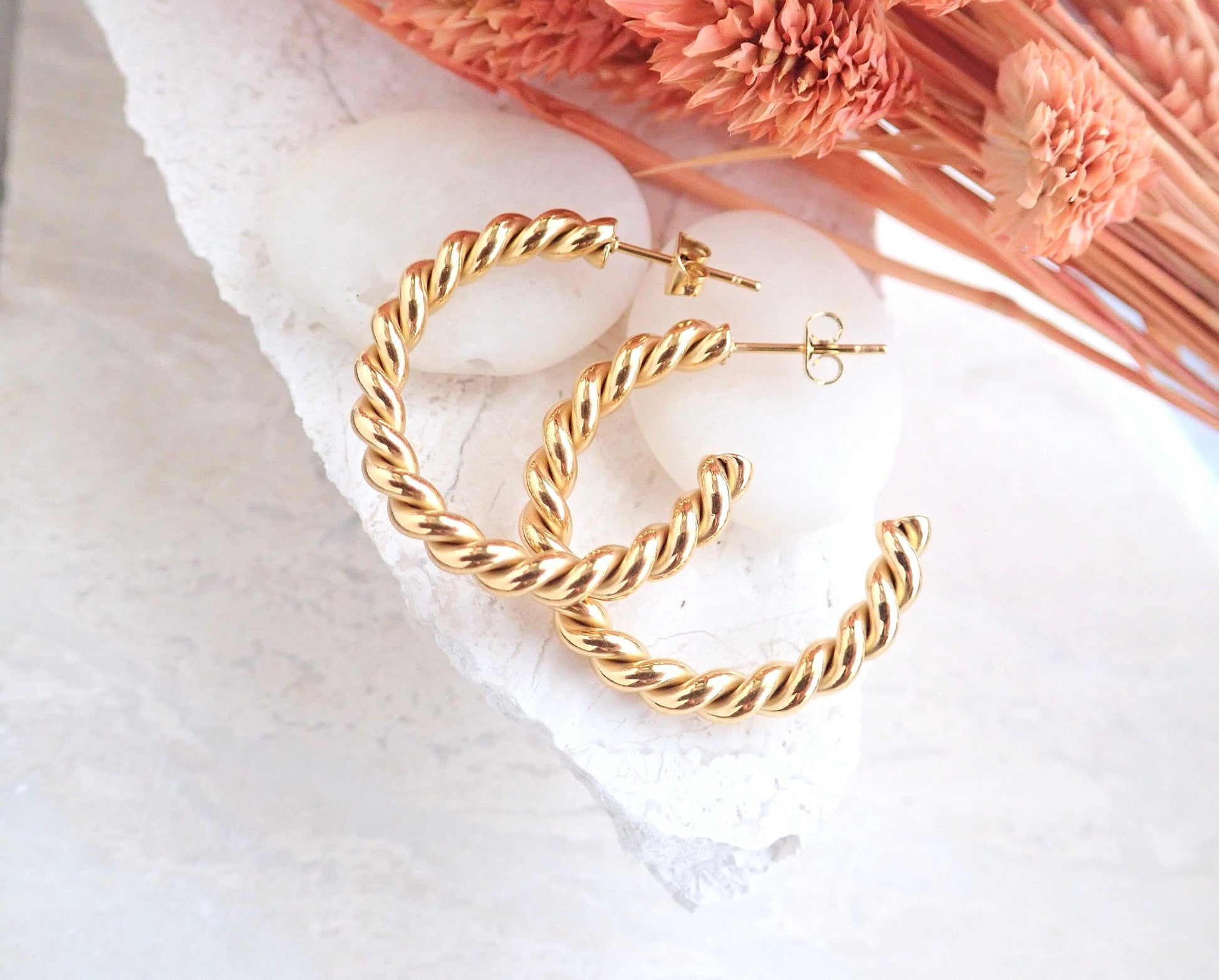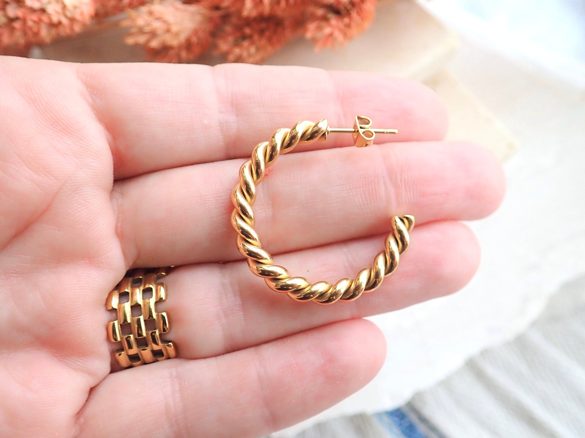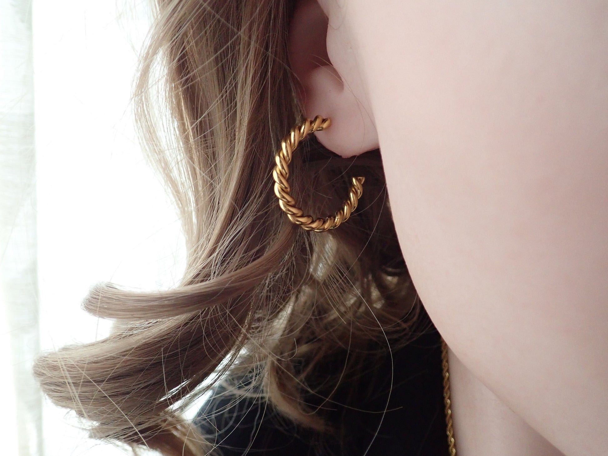 Thanks to our special plating technique, these gorgeous 18k gold plated twisted hoops are waterproof, allowing you to confidently swim, shower, and enjoy water activities without fear of tarnishing. Crafted with hypoallergenic 18k gold stainless steel, our hoops are safe and comfortable for sensitive ears. Wear these anytime, anywhere, and any how! The perfect accessories for anyone who doesn't like to take their jewelry off...ever!