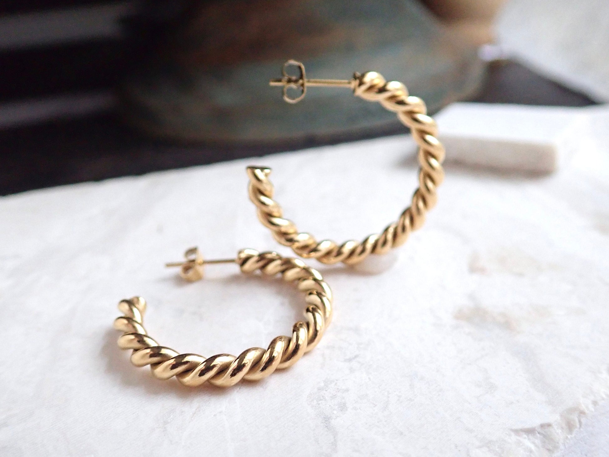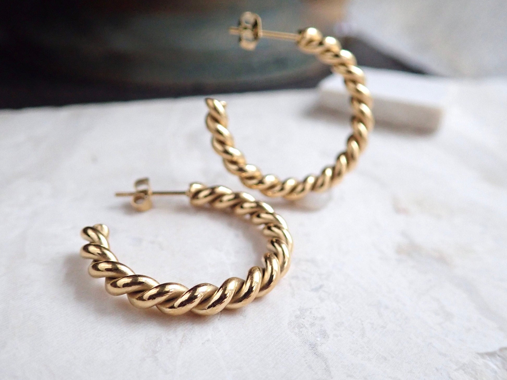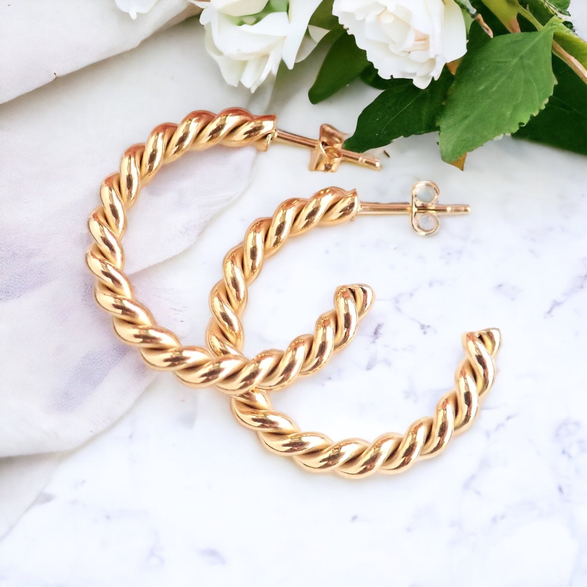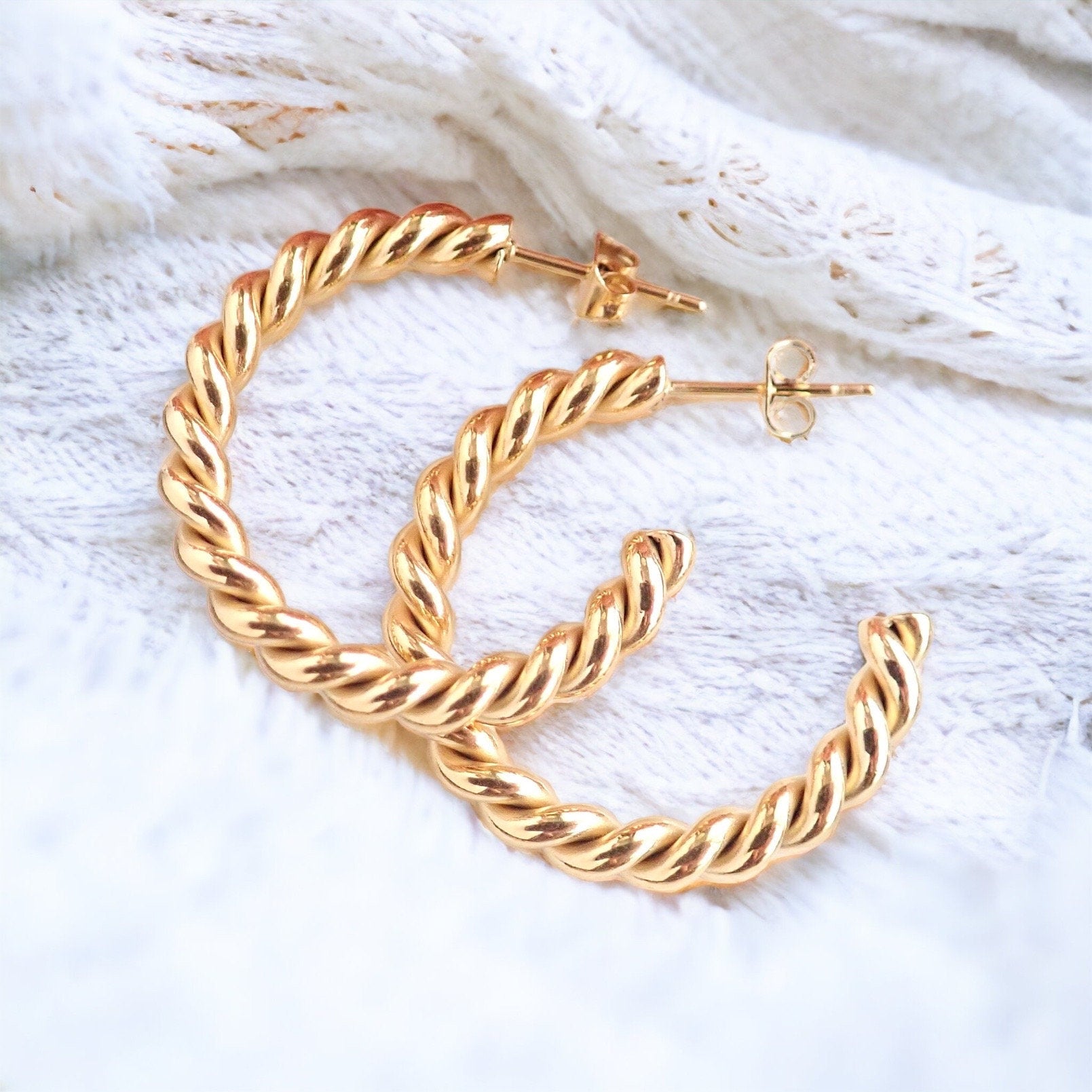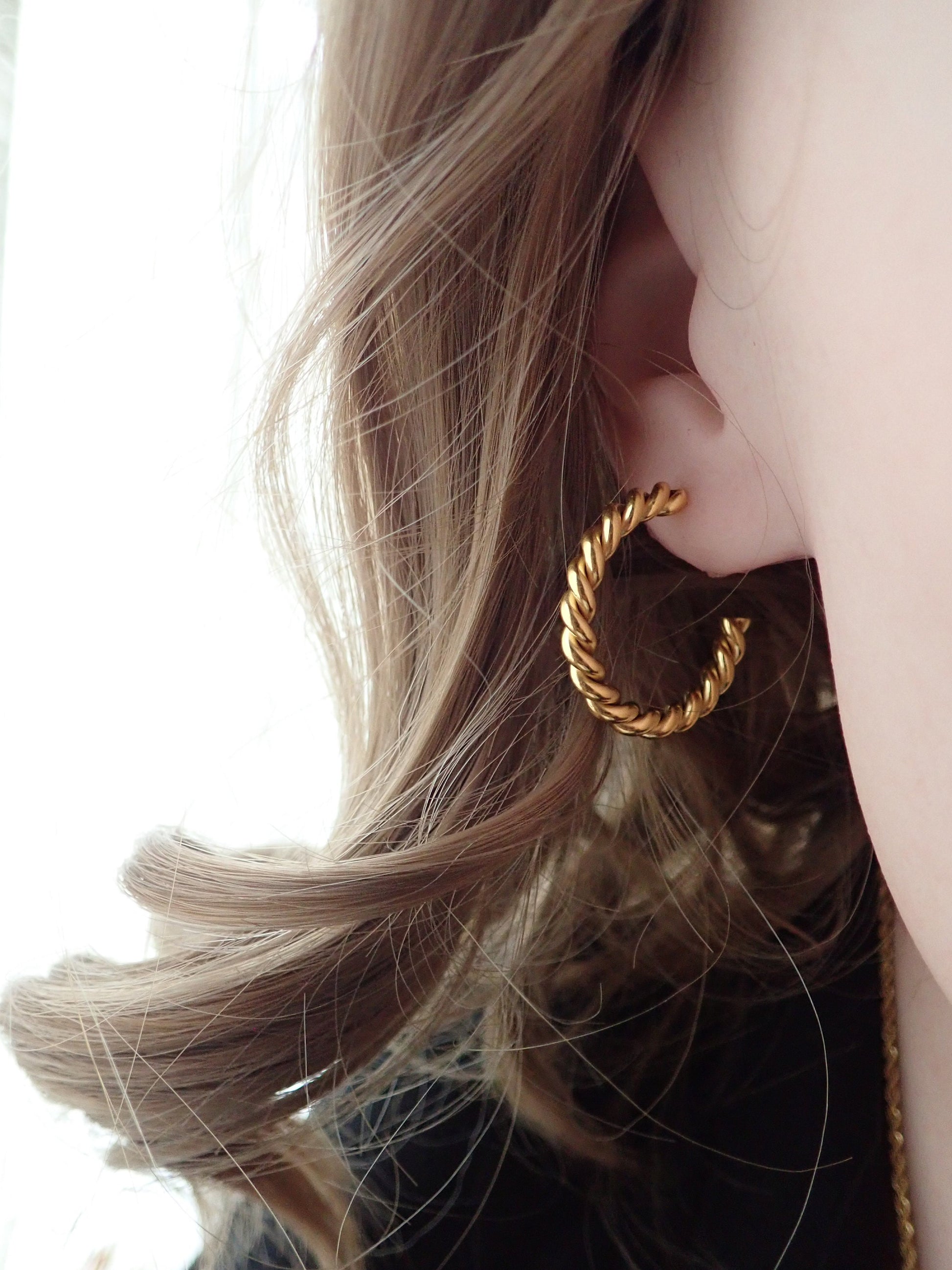 Twisted Gold Waterproof Hoops, Medium Rope Chain Hoops, No Tarnish Earrings, Everyday Minimal Jewelry,Simple Gold Hoop Earring,Gift for Her