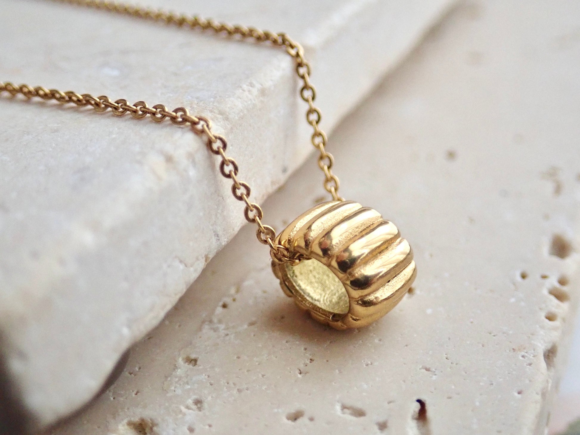 Waterproof Gold Bead Necklace, Ridged Tube Pendant on No Tarnish 18k Gold Chain, Minimalist Fidget Necklace, Everyday Jewelry